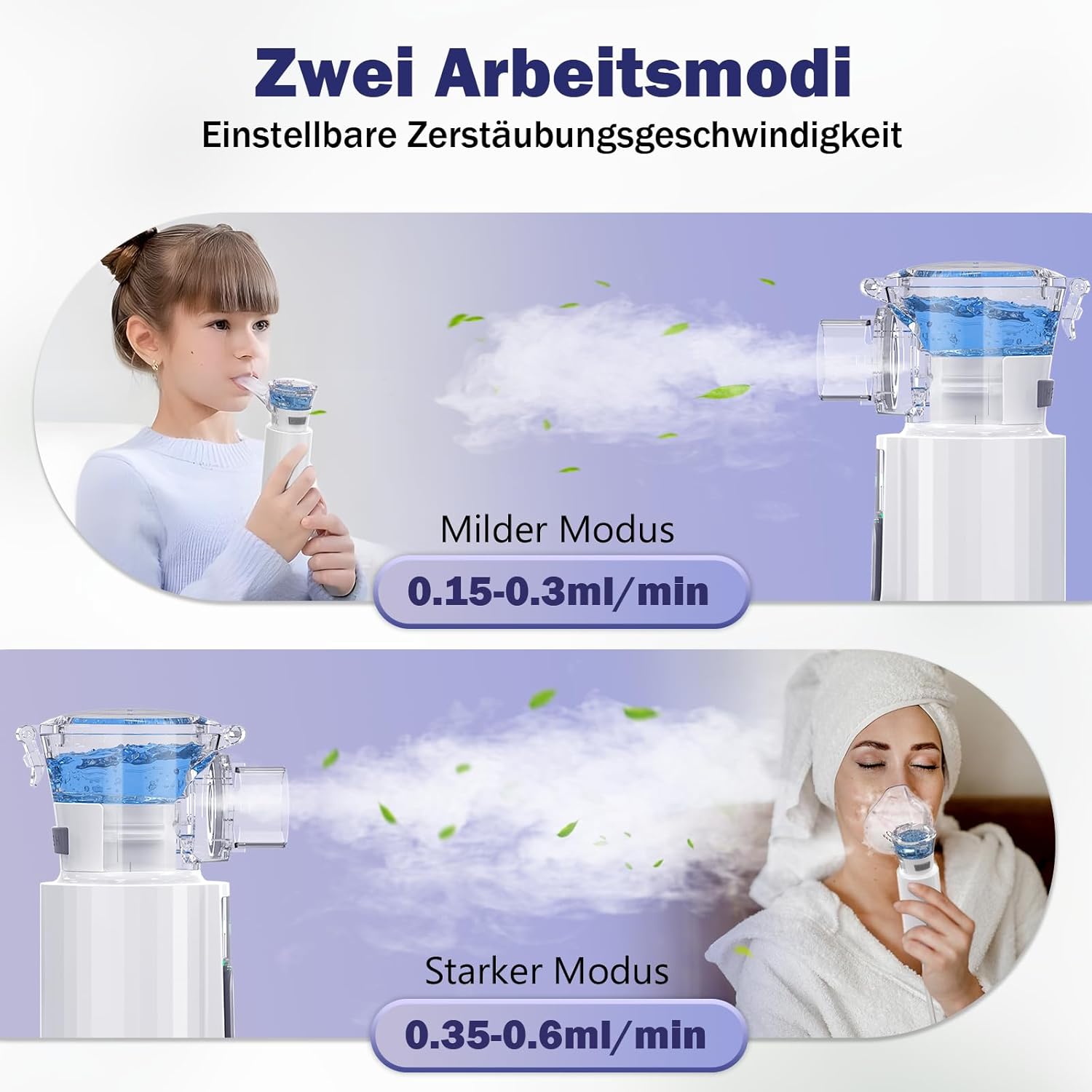 - Einfach zu bedienen: AU YAT inhaliergerät kinder es ist einfach zu bedienen, drücken Sie einfach und halten Sie die "Power"-Taste für ca. 3 Sekunden, um Ihre Vernebelung Reise zu starten, und es hat 2 Level einstellbare Vernebelung Rate für Option, je nach erforderlichen Intensität der Nebel auf Ihre Bedürfnisse. Sie können die "M"-Taste drücken, um die Vernebelungsrate von hoch bis niedrig einzustellen. Die Stufe 1 vernebelt stärker, mit 0,35ml/min, die Stufe 2 mit nur 0,15ml/min.