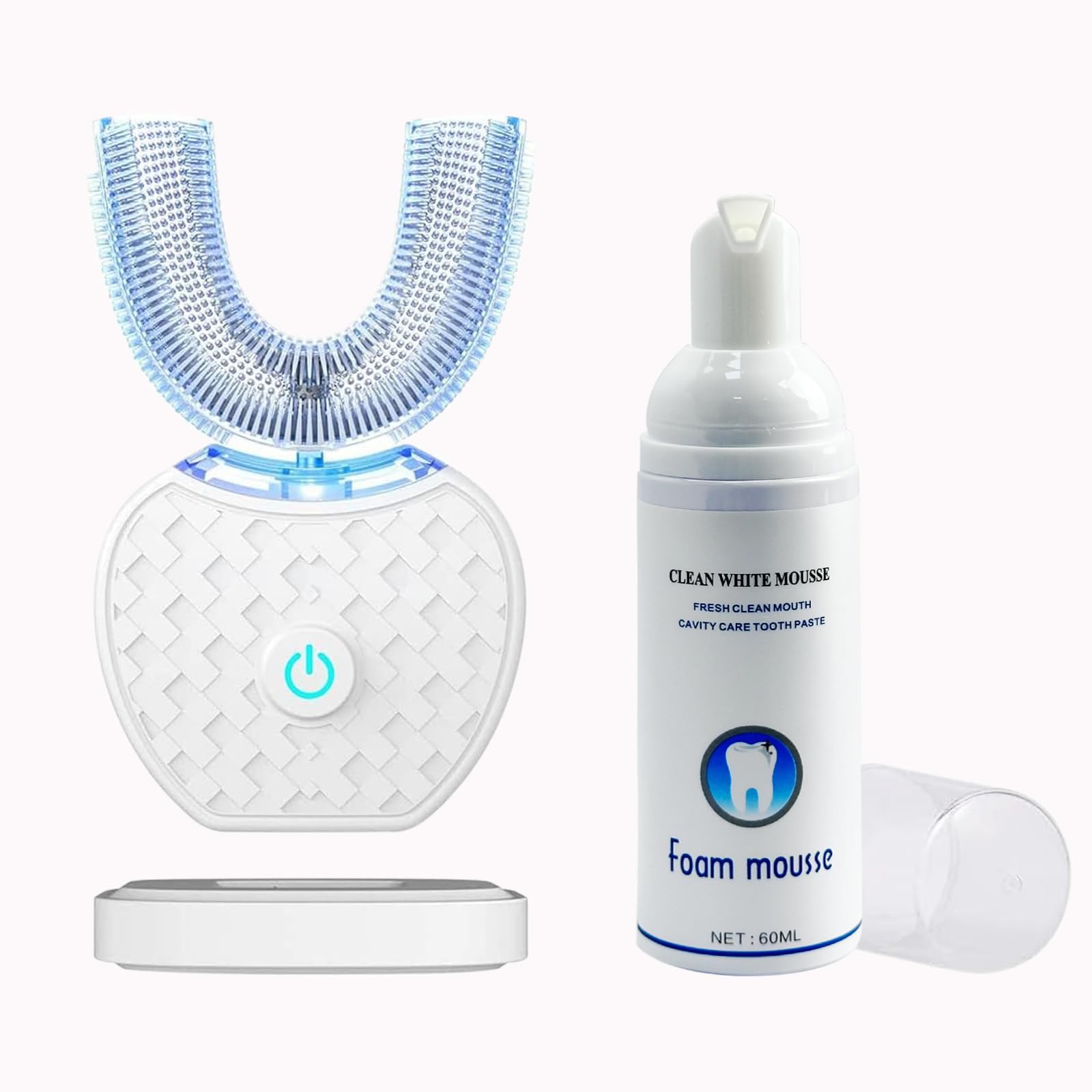 - [Unique U-Shaped] - This teeth whitening kit is designed in unique U shape, which is in contour with the shape of the tooth bite and can reach deeper areas than conventional toothbrush. Suitable for high frequency sound wave vibration, it can quickly and deeply clean the surface and interior of the tooth in all directions and provide dental health protection.