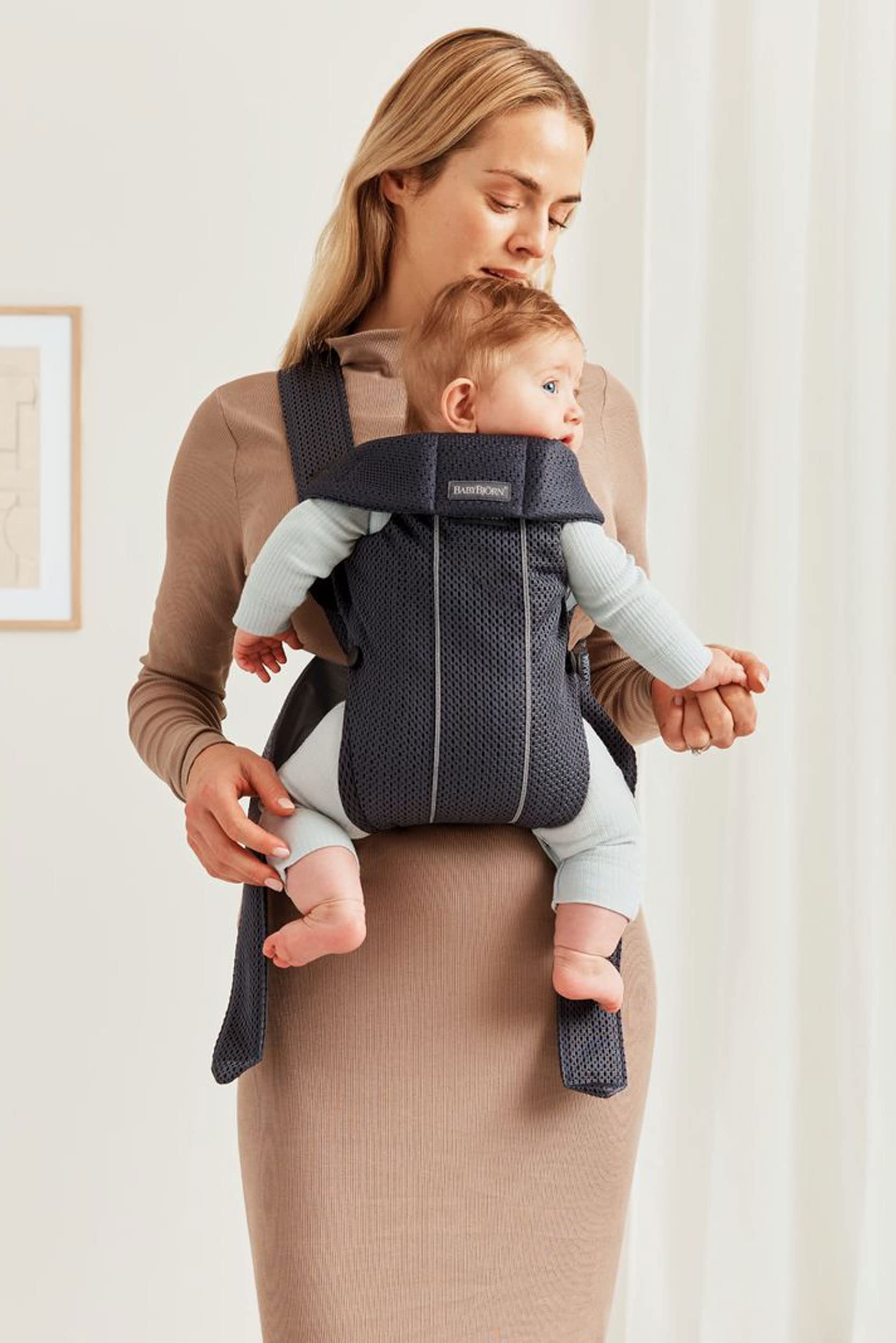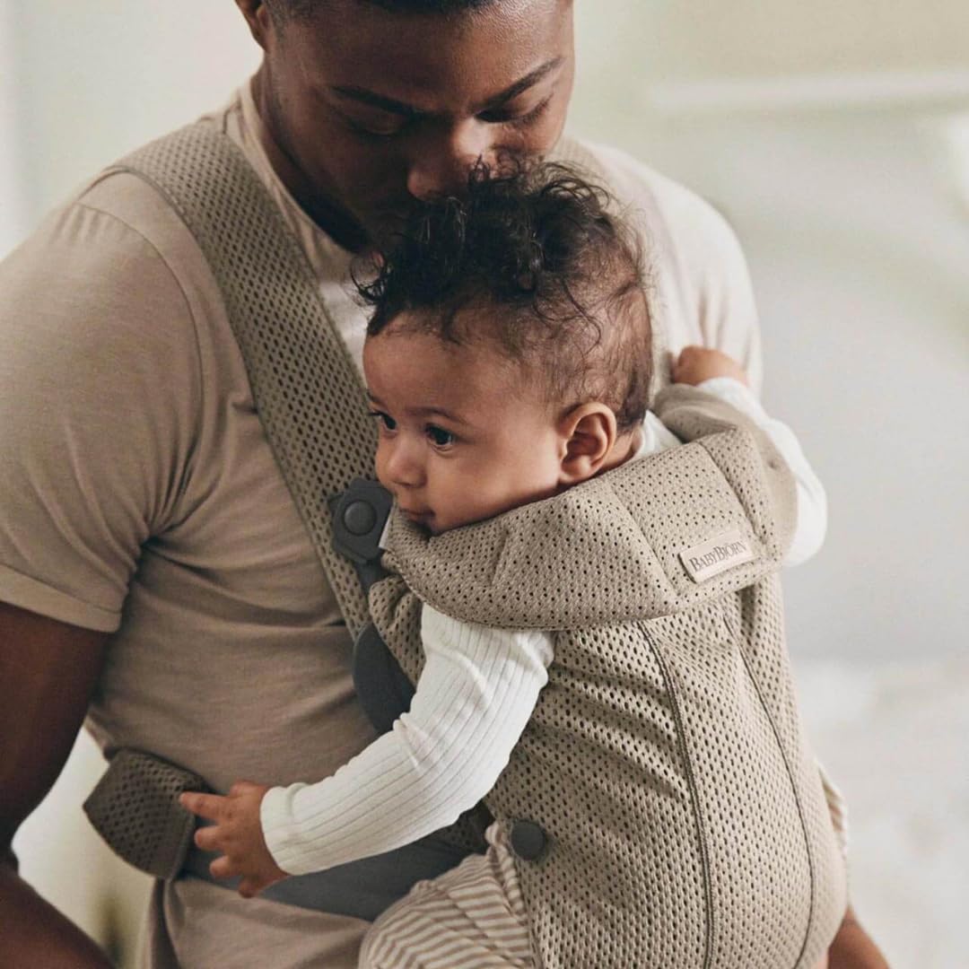 BabyBjörn Babytrage Mini, 3D-Netzstoff, Grau-Beige