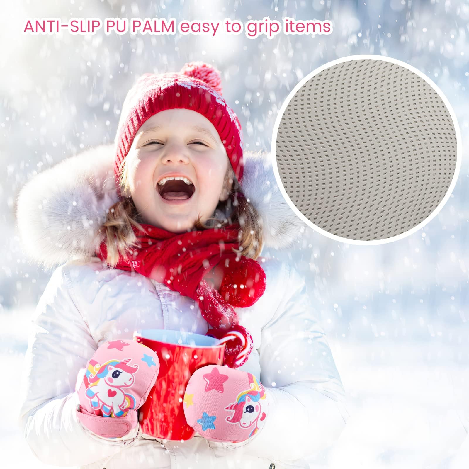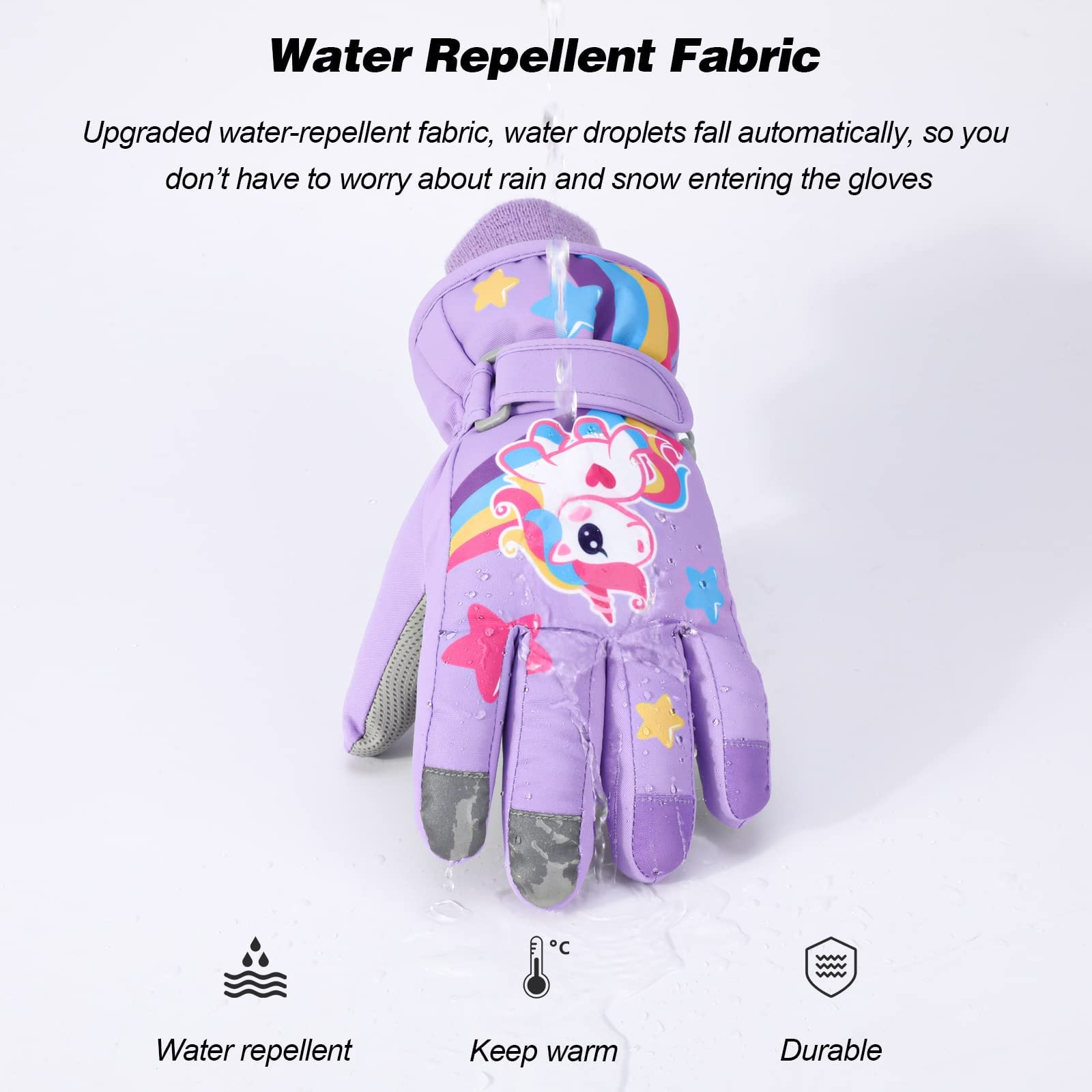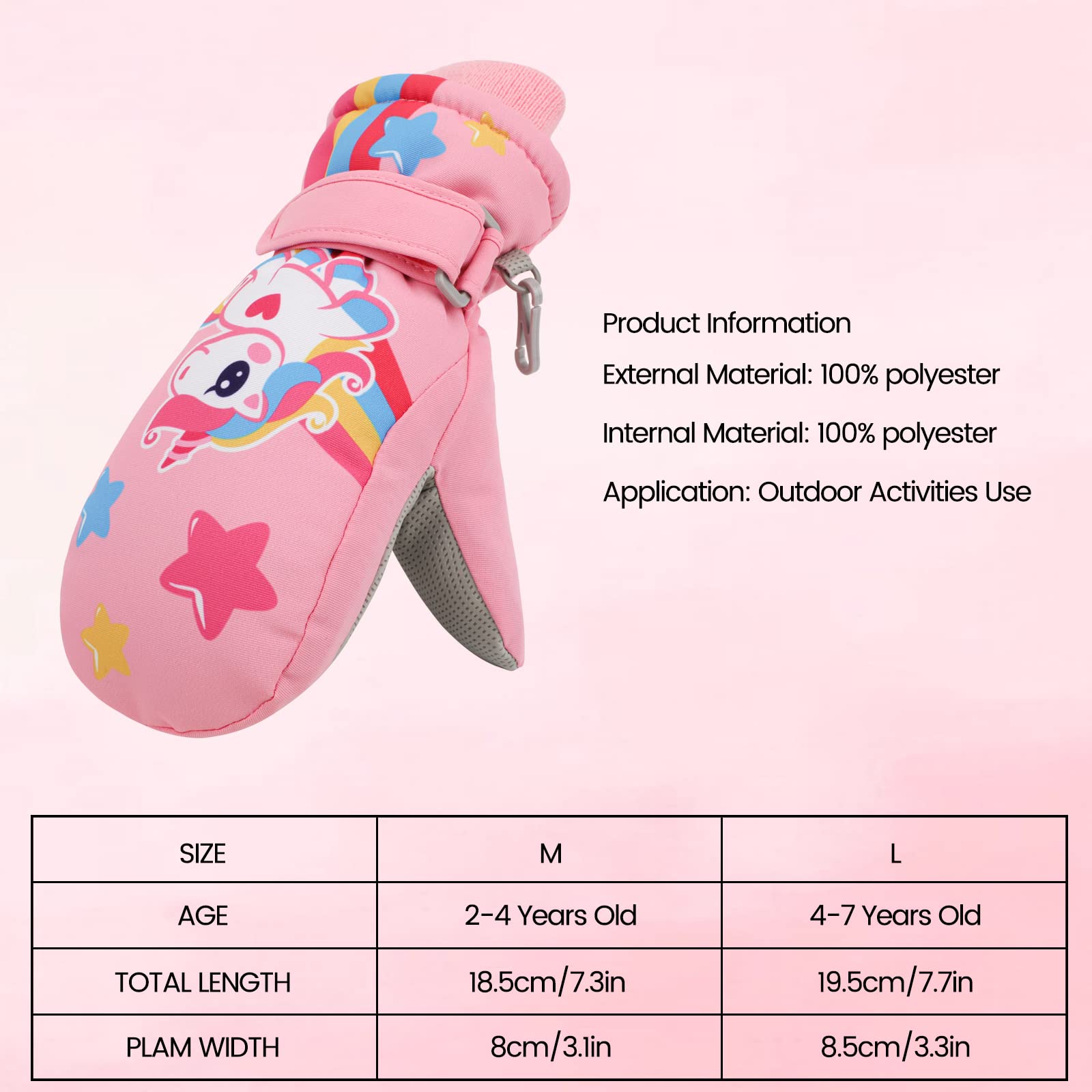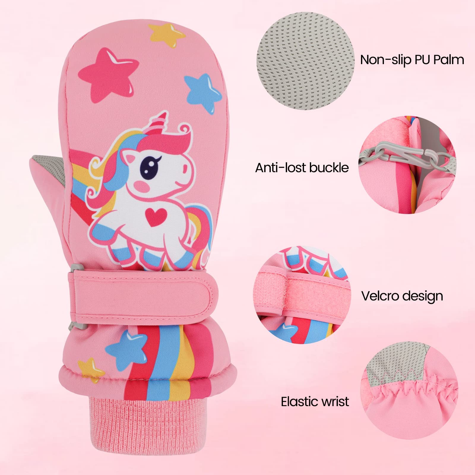 Children's Winter Ski Gloves Waterproof Snowboard Gloves Non-Slip Plush Lined Warm Unicorn Gloves for Girls Boys 2-9 Years Old