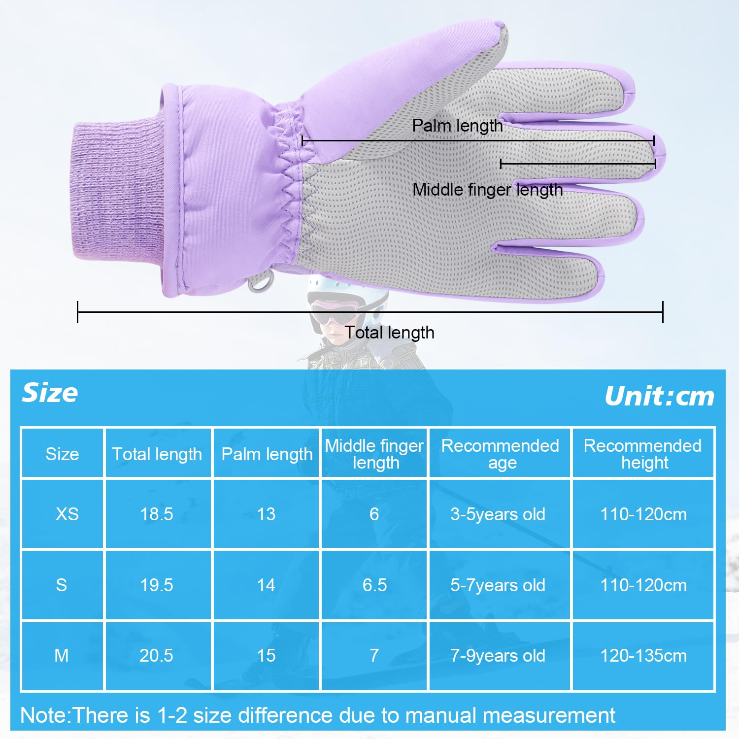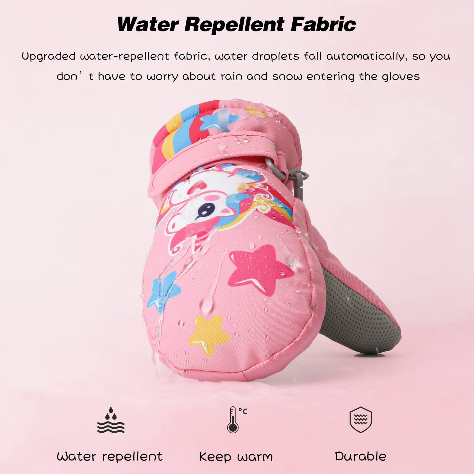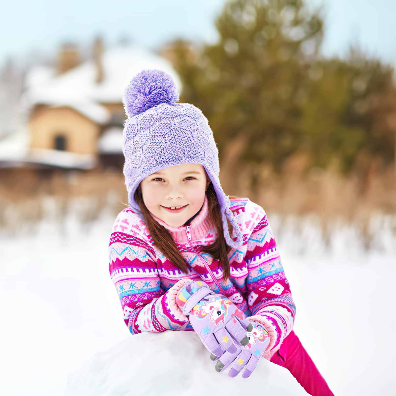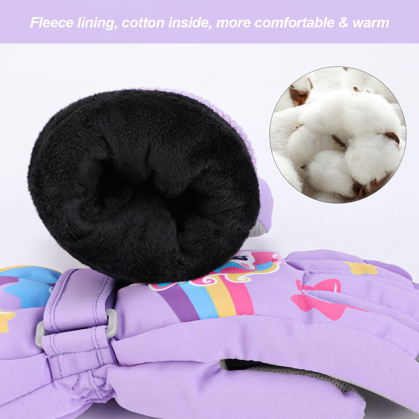 Children's Winter Ski Gloves Waterproof Snowboard Gloves Non-Slip Plush Lined Warm Unicorn Gloves for Girls Boys 2-9 Years Old