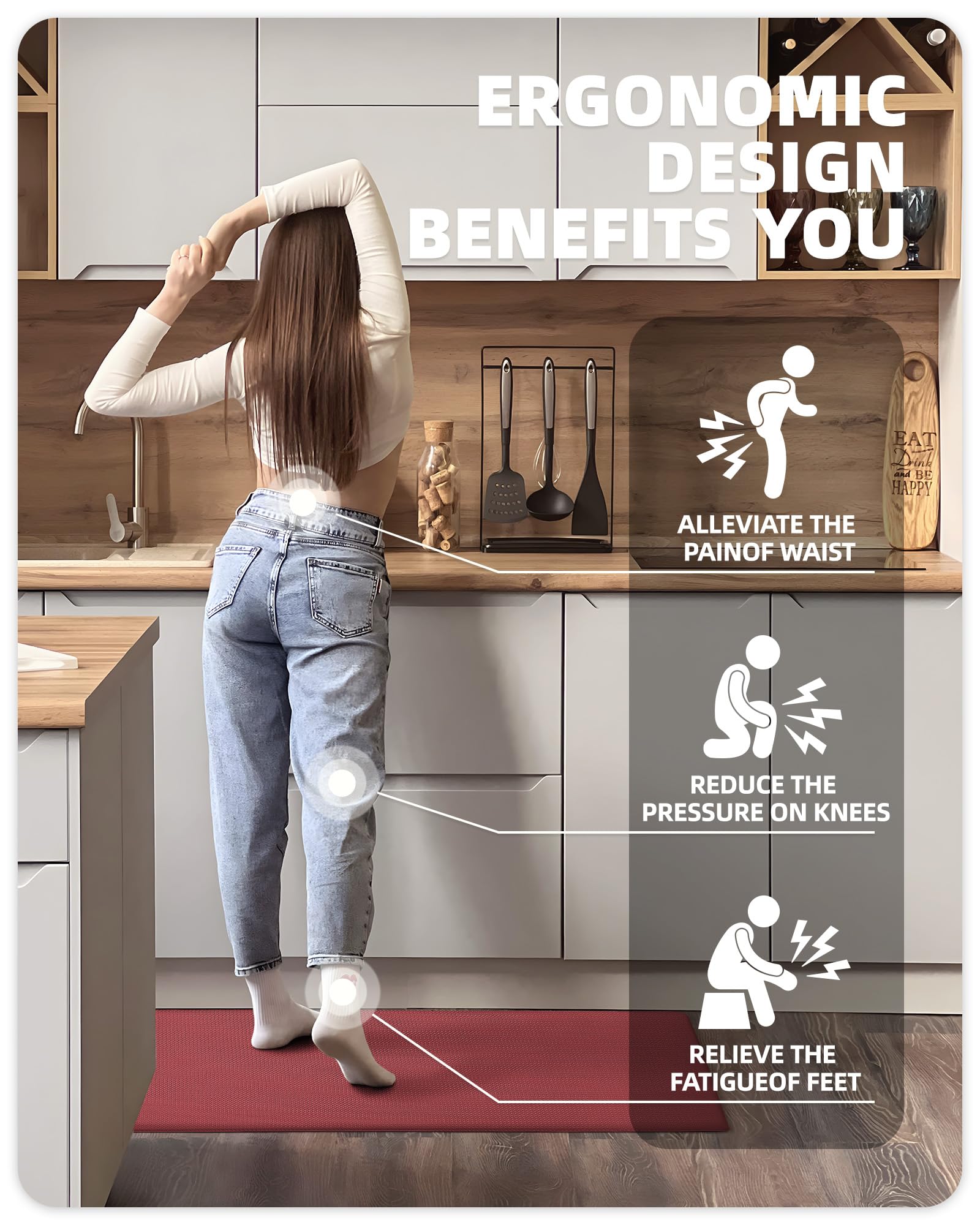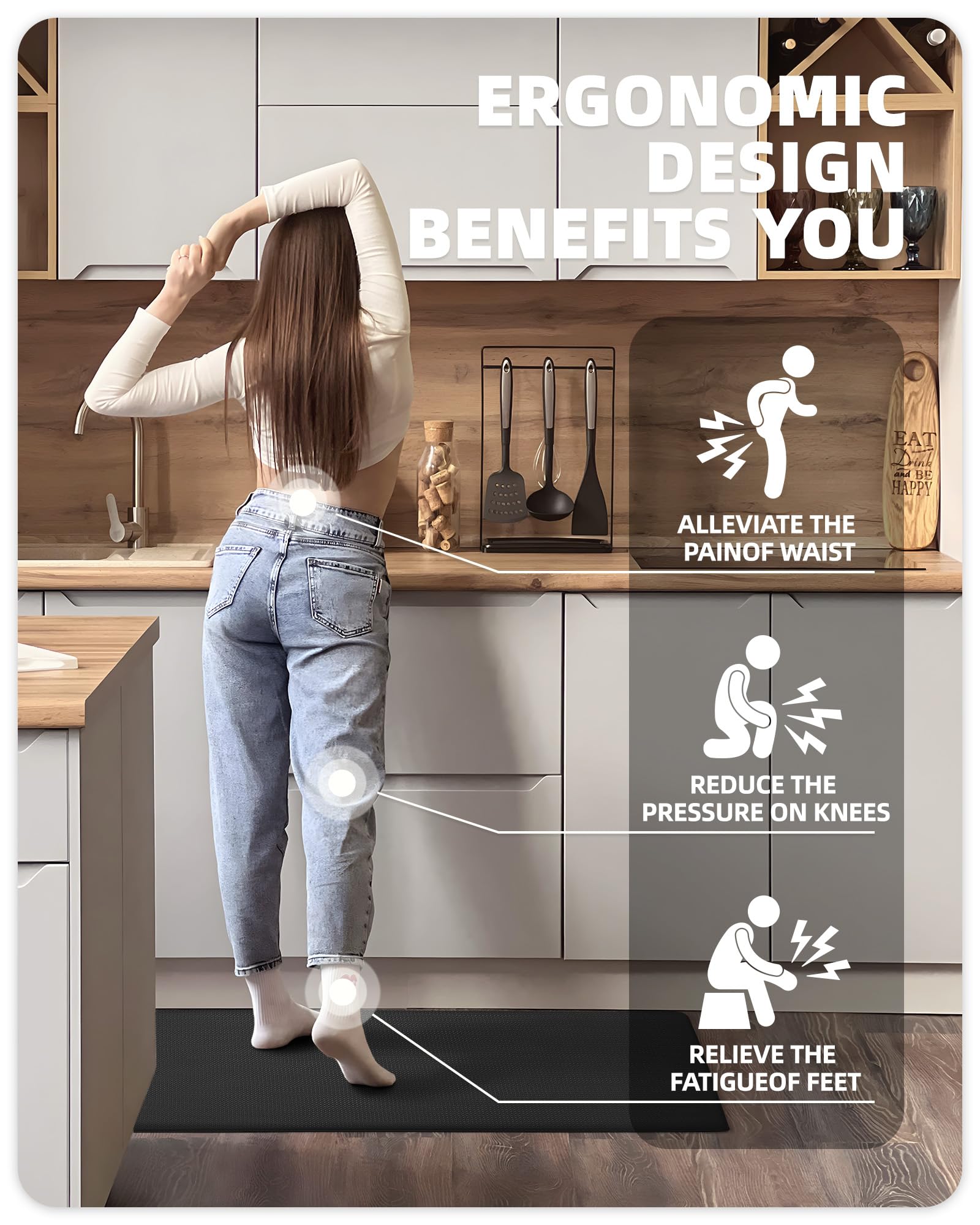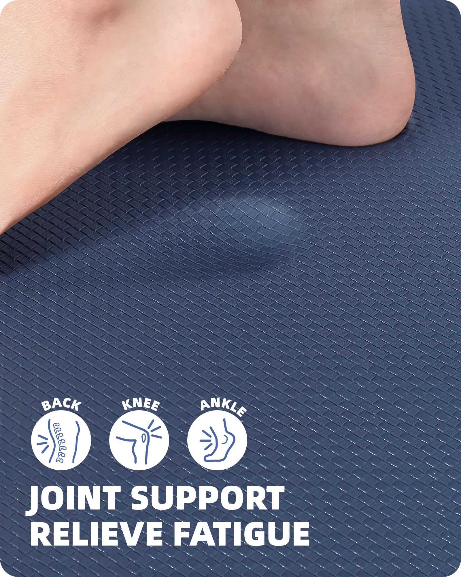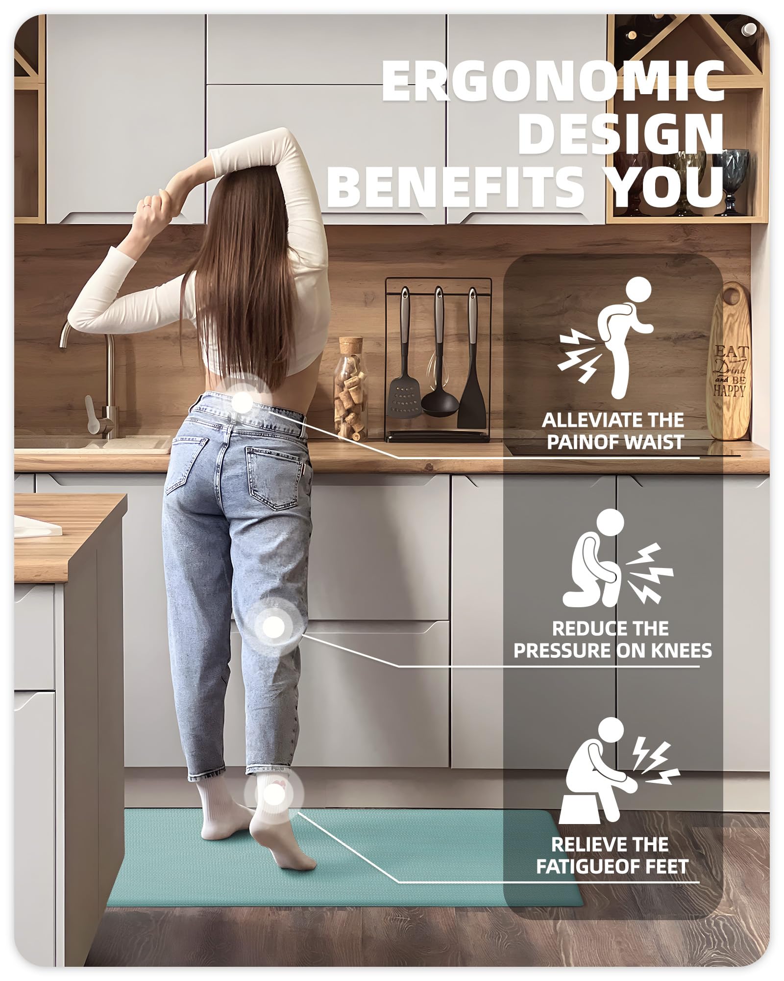 - [Hochwertige und bequeme Konstruktion]: Die Küchenmatte besteht aus umweltfreundlichem PVC-Schaumstoff, der sich langsam zusammenzieht und den Eindruck erweckt, auf einer Wolke zu sein. So können Sie Ihre Kochzeit genießen, ohne Fußschmerzen zu verspüren, auch wenn Sie längere Zeit stehen, während Sie kochen.