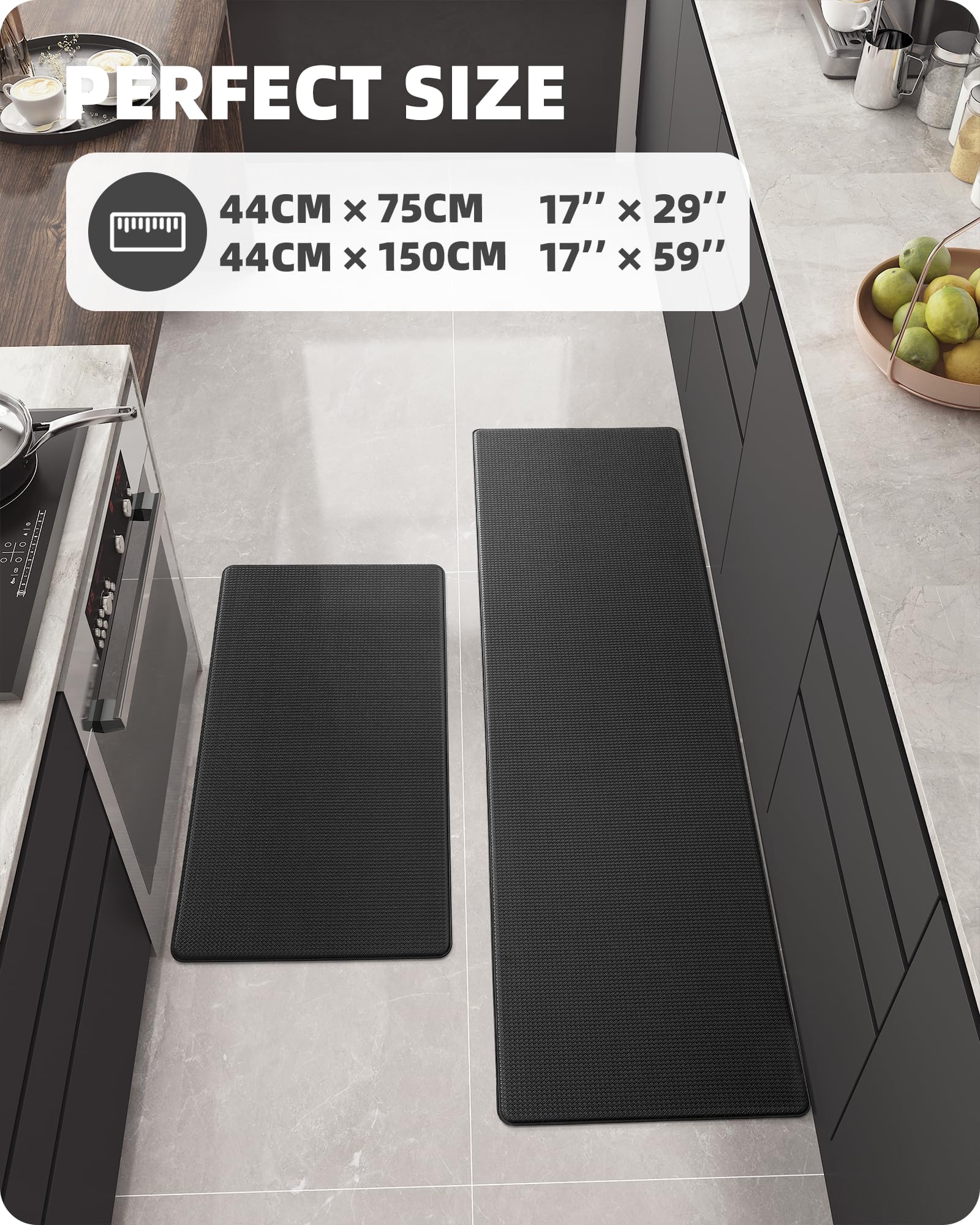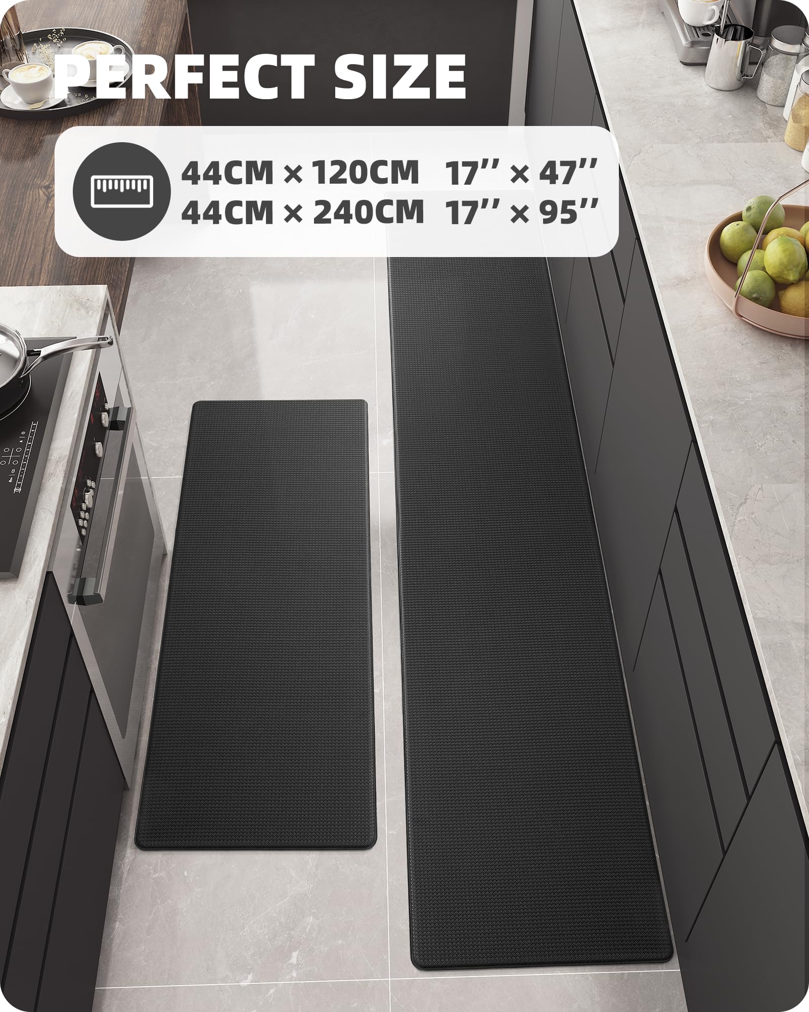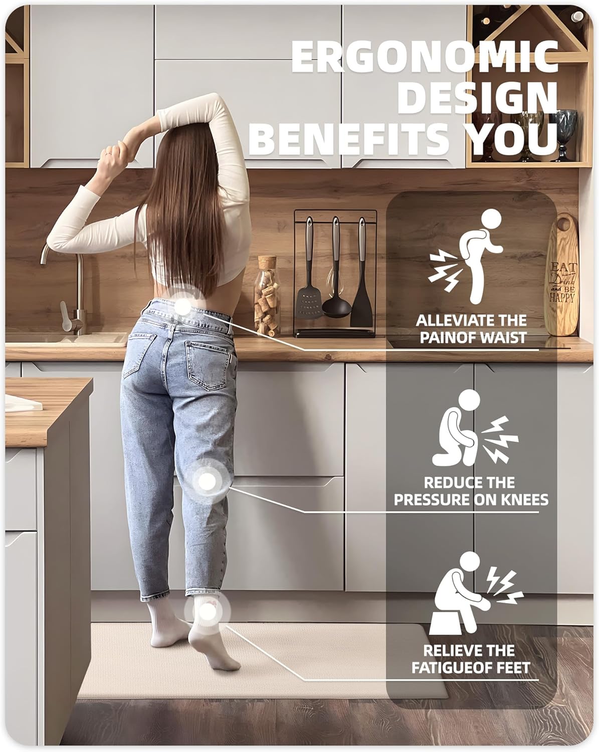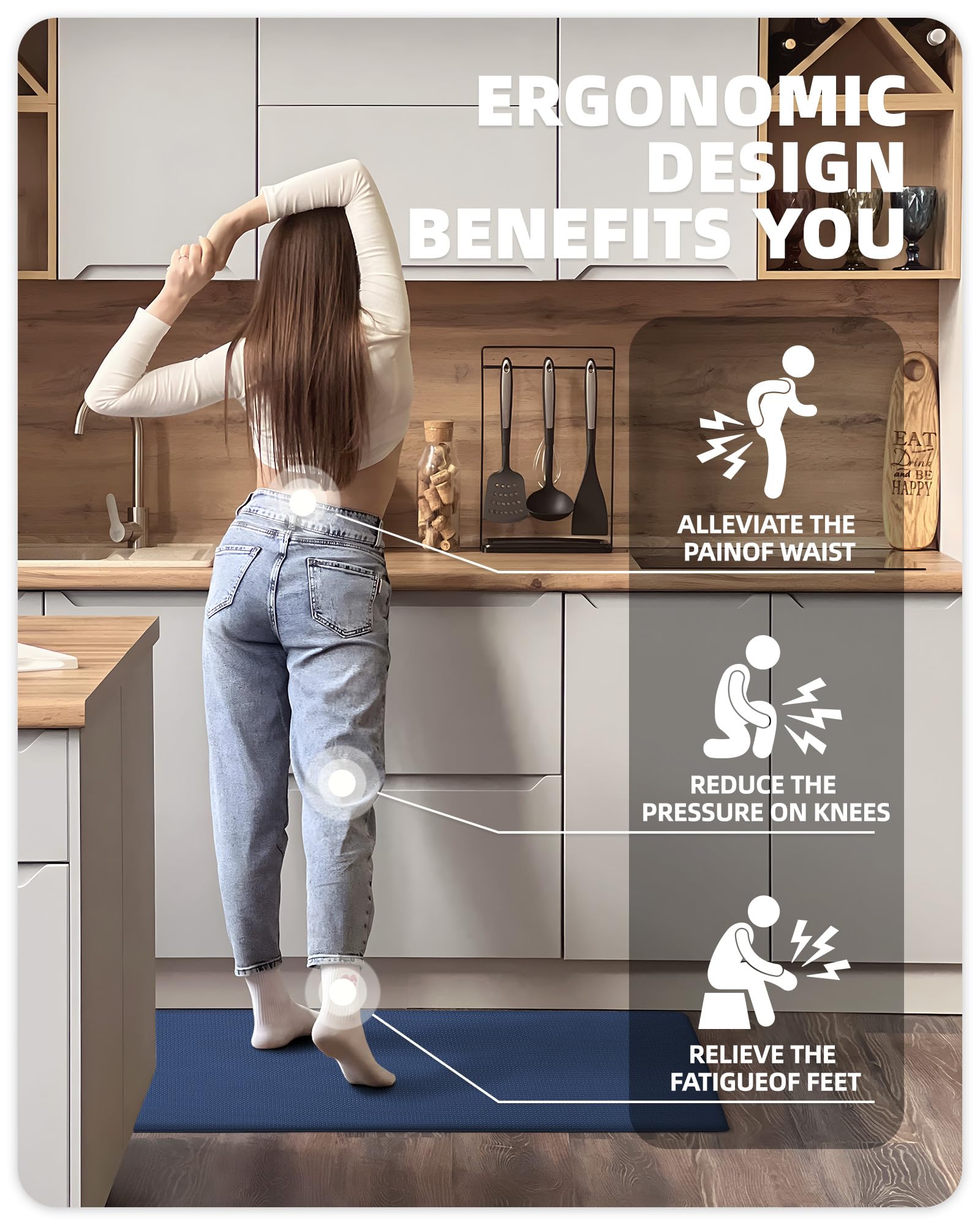- [Hochwertige und bequeme Konstruktion]: Die Küchenmatte besteht aus umweltfreundlichem PVC-Schaumstoff, der sich langsam zusammenzieht und den Eindruck erweckt, auf einer Wolke zu sein. So können Sie Ihre Kochzeit genießen, ohne Fußschmerzen zu verspüren, auch wenn Sie längere Zeit stehen, während Sie kochen.