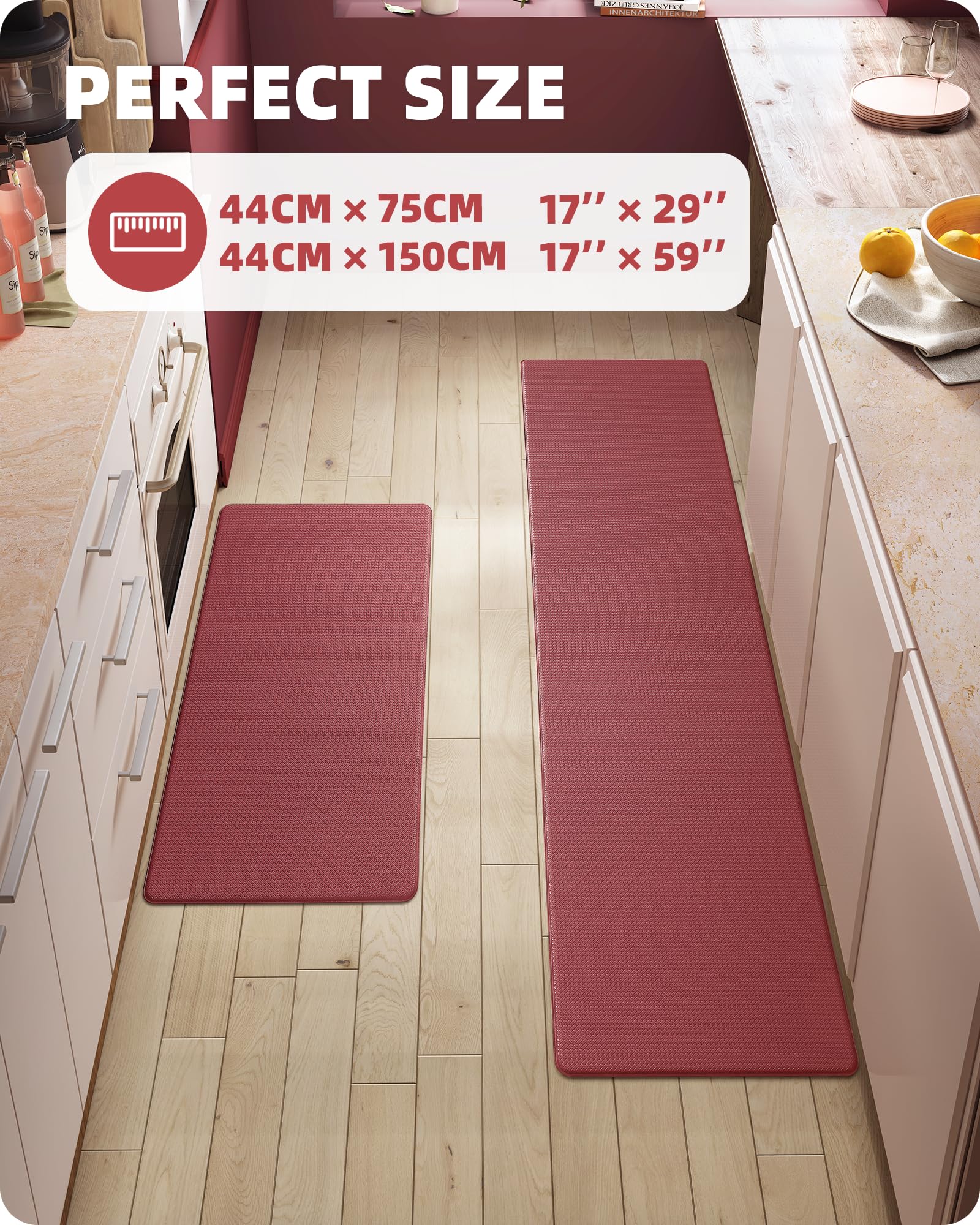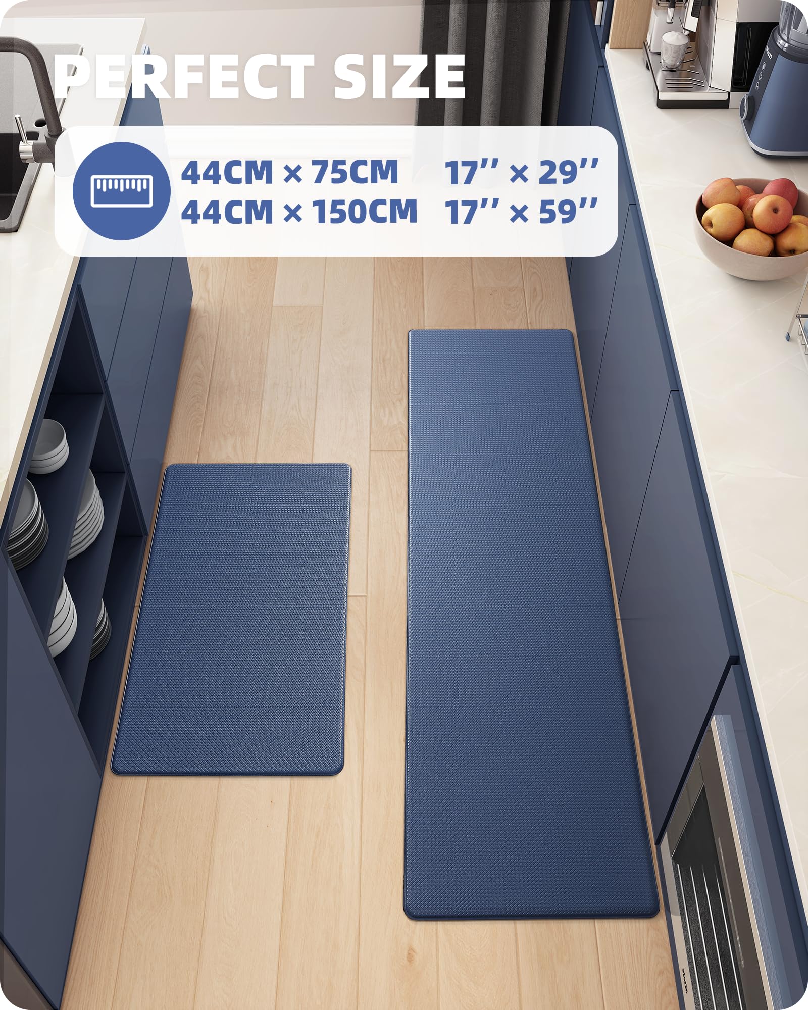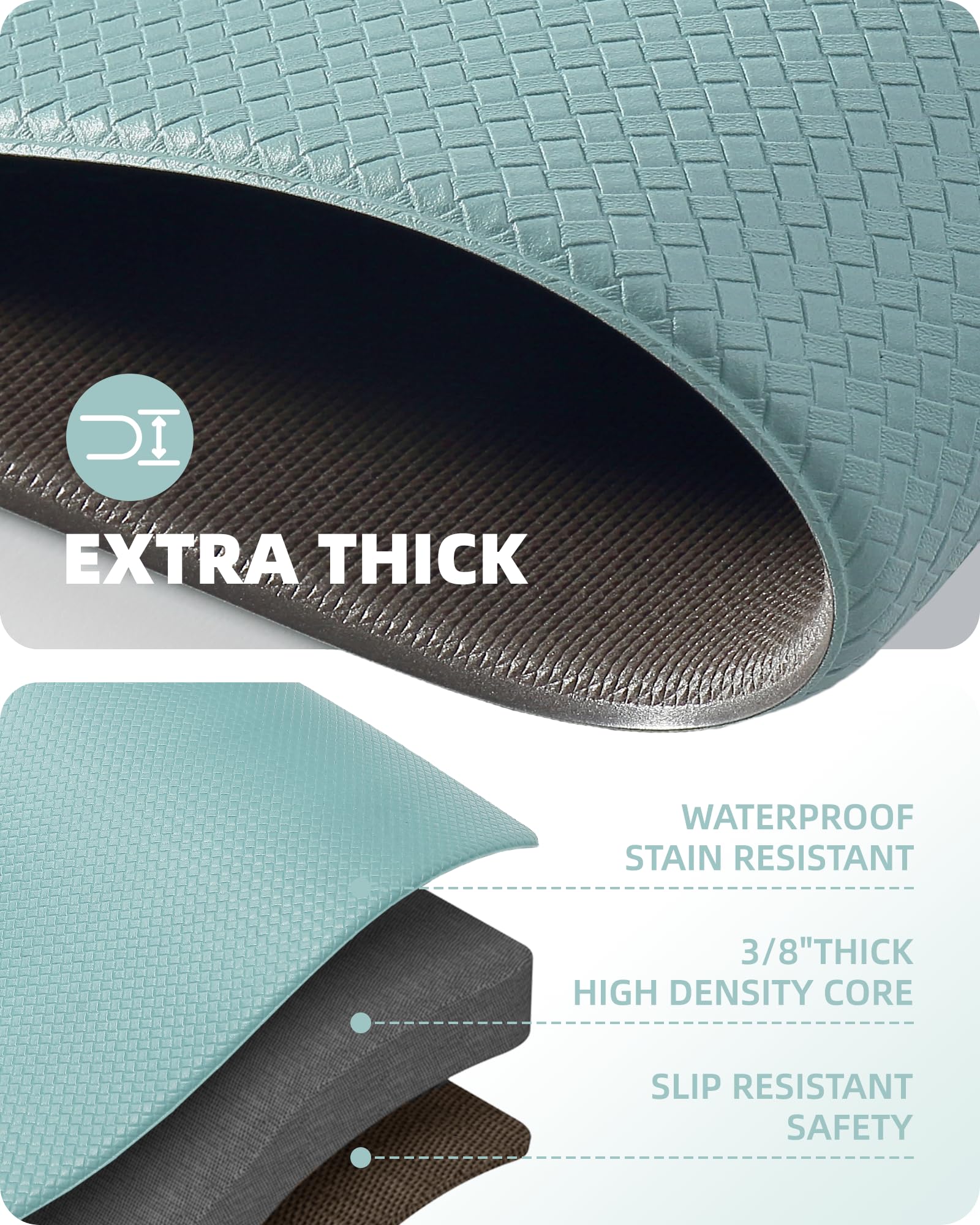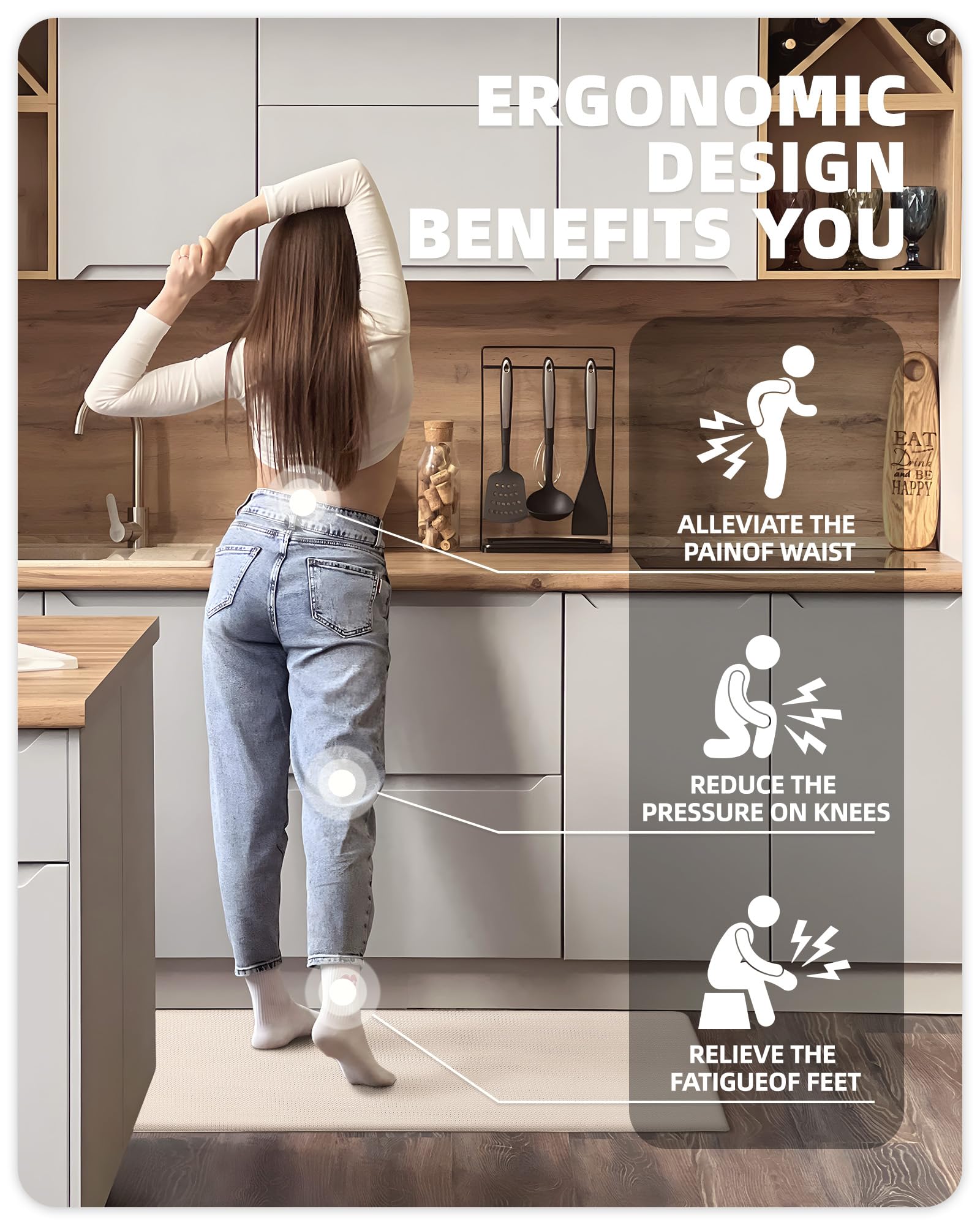 - [Hochwertige und bequeme Konstruktion]: Die Küchenmatte besteht aus umweltfreundlichem PVC-Schaumstoff, der sich langsam zusammenzieht und den Eindruck erweckt, auf einer Wolke zu sein. So können Sie Ihre Kochzeit genießen, ohne Fußschmerzen zu verspüren, auch wenn Sie längere Zeit stehen, während Sie kochen.
