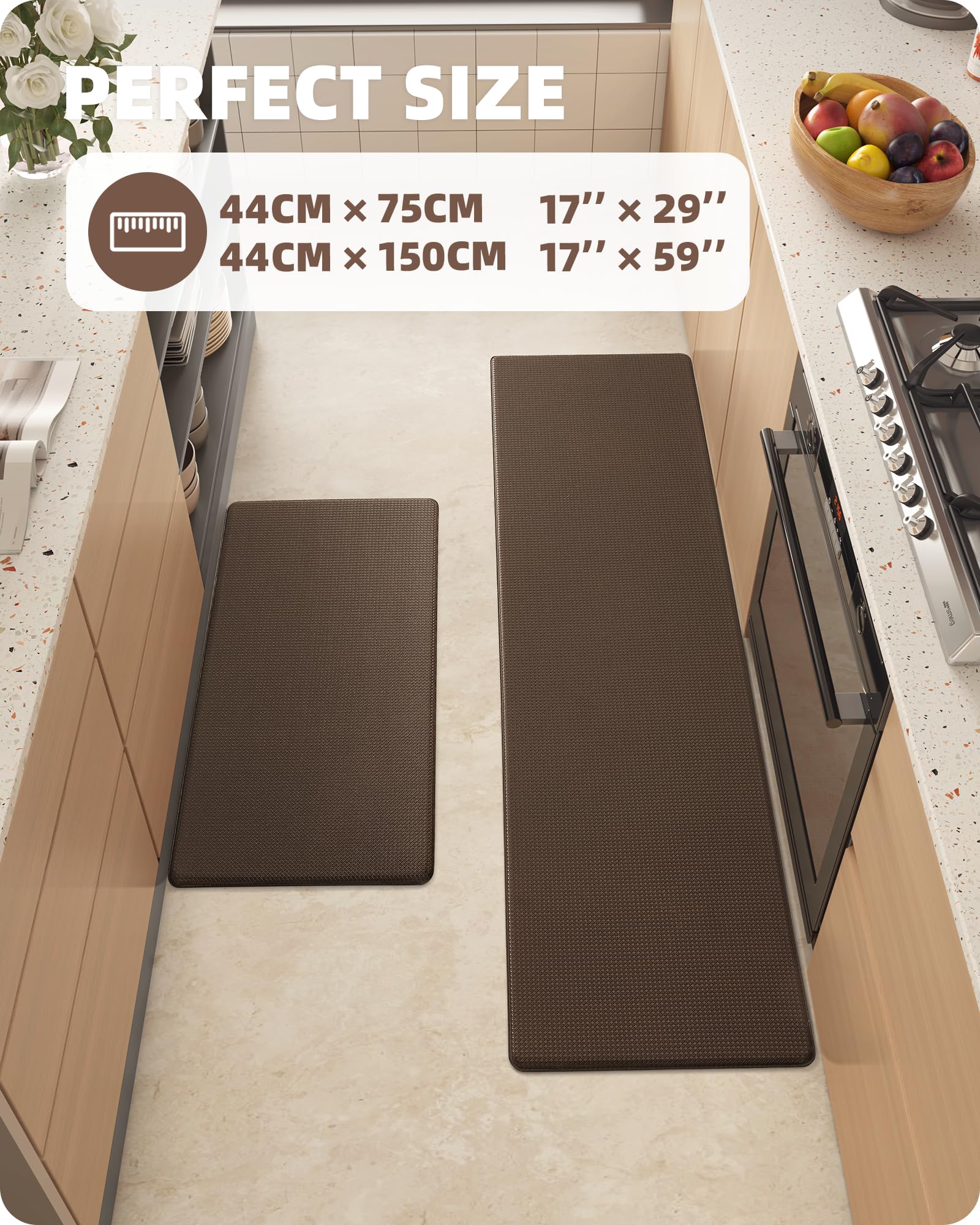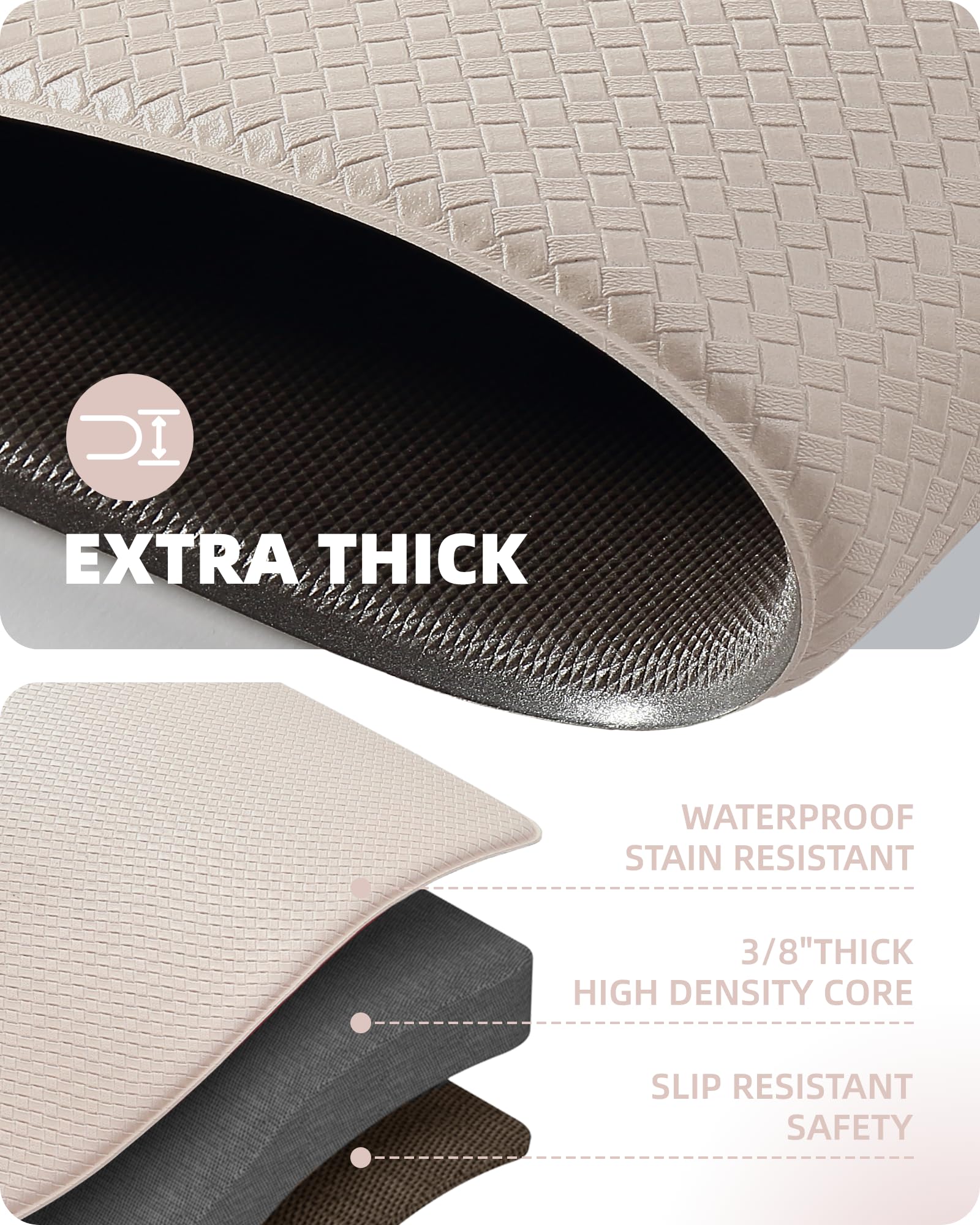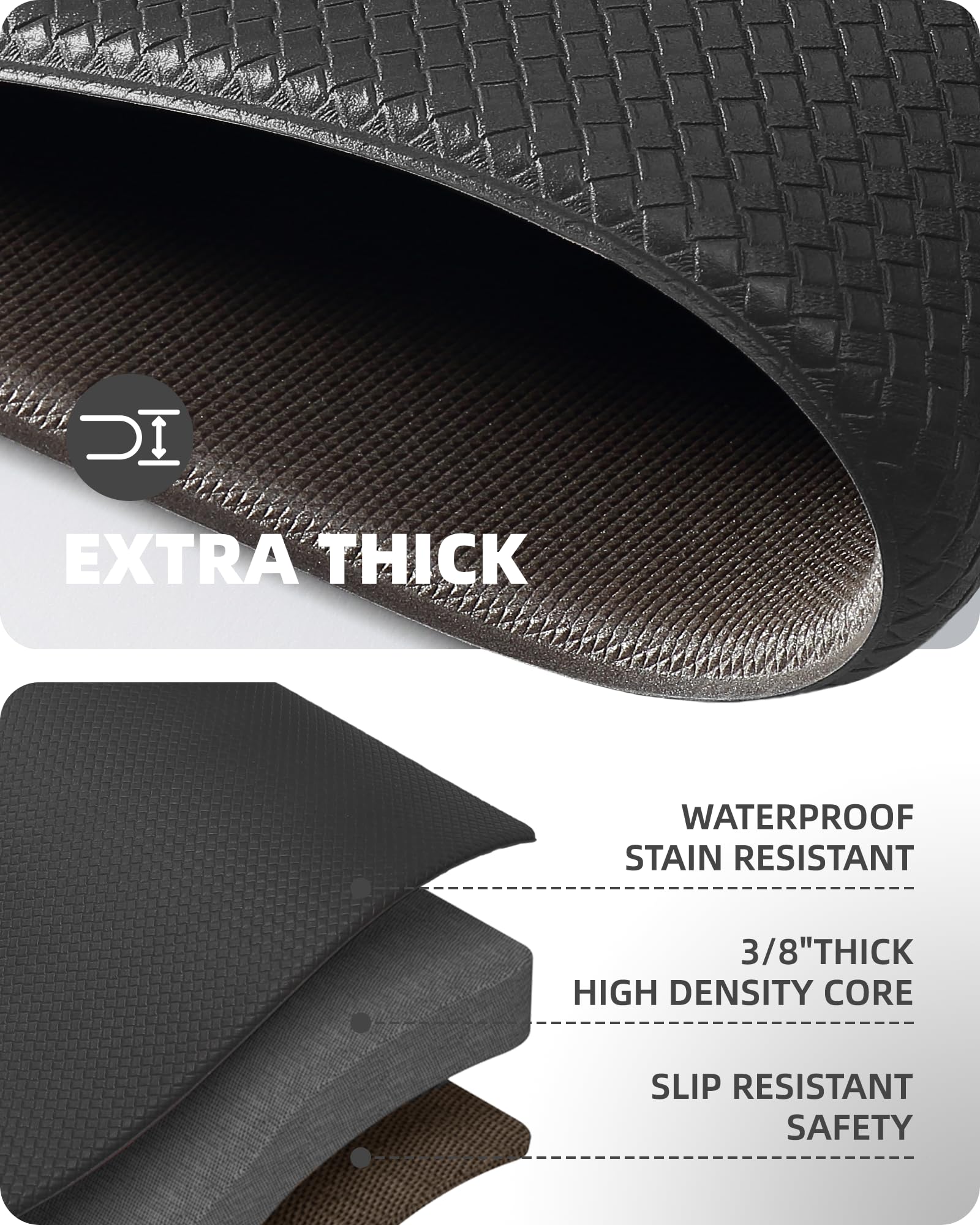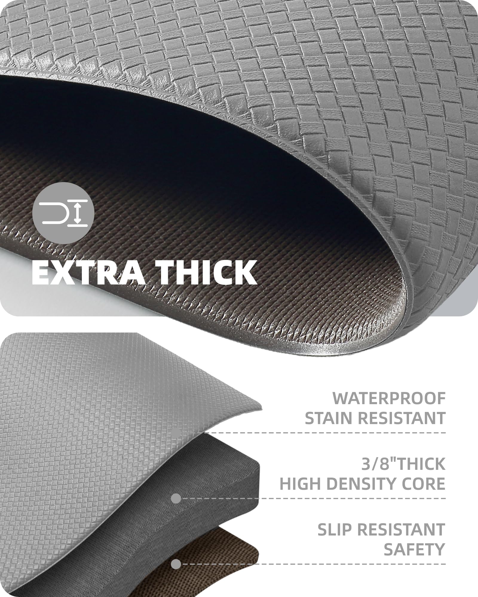 - [Hochwertige und bequeme Konstruktion]: Die Küchenmatte besteht aus umweltfreundlichem PVC-Schaumstoff, der sich langsam zusammenzieht und den Eindruck erweckt, auf einer Wolke zu sein. So können Sie Ihre Kochzeit genießen, ohne Fußschmerzen zu verspüren, auch wenn Sie längere Zeit stehen, während Sie kochen.