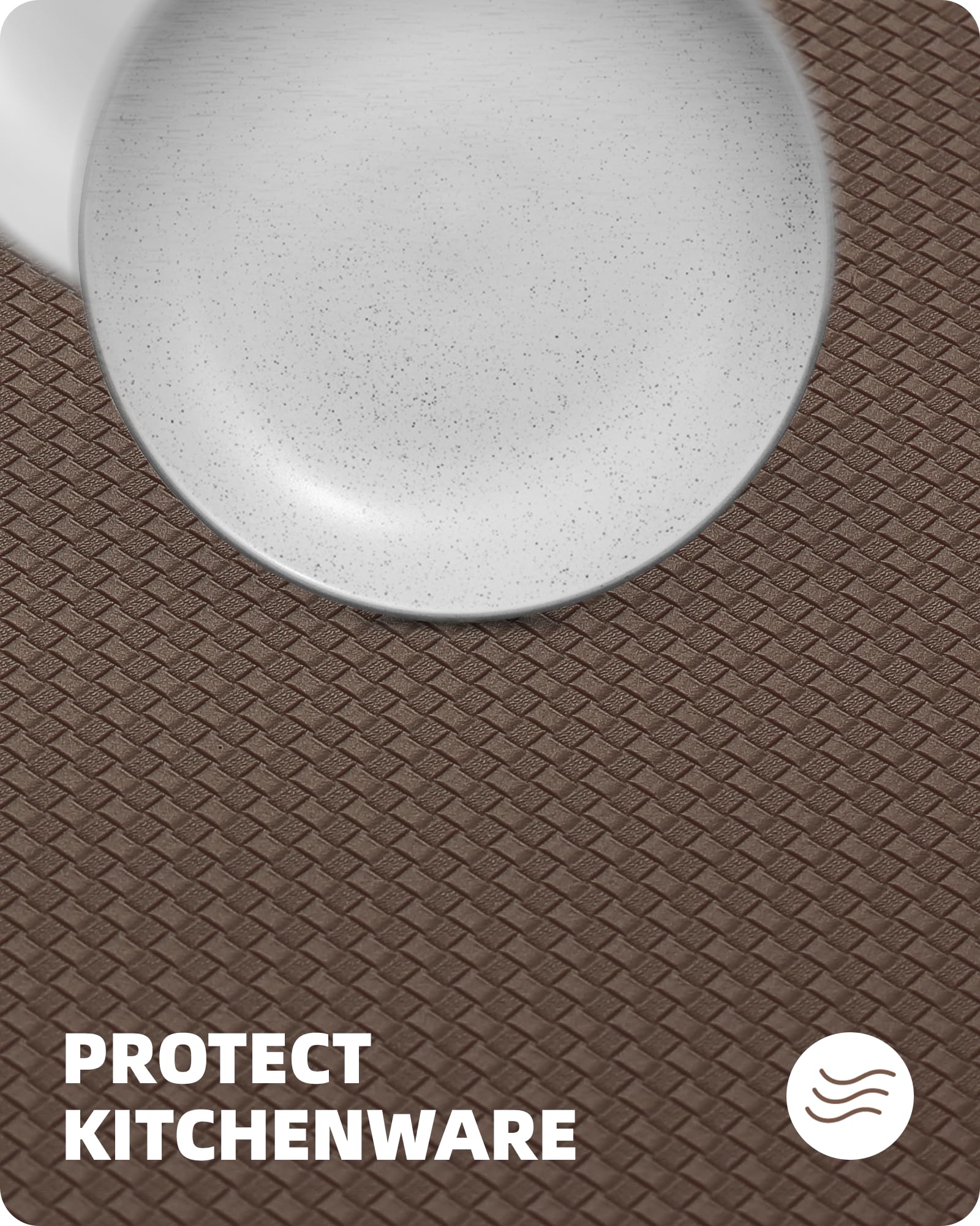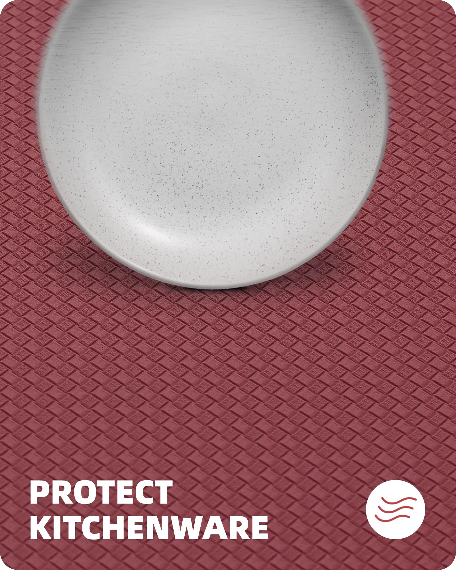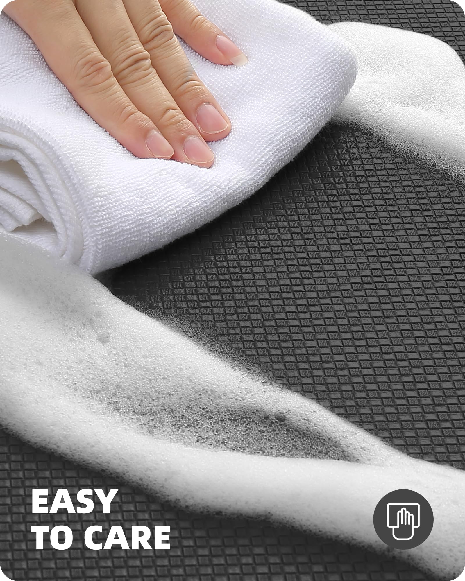 - [Rutschfest & Schutz]: Die Halterung dieser Küchenmatte besteht aus strapazierfähigem PVC mit einer diamantförmigen Anti-Rutsch-Textur, die eine hervorragende Rutschfestigkeit auf Holz-, Fliesen- und Betonböden bietet. Der 8 mm dicke Schwammkern bietet hervorragenden Schutz vor versehentlichem Herunterfallen von Geschirr.