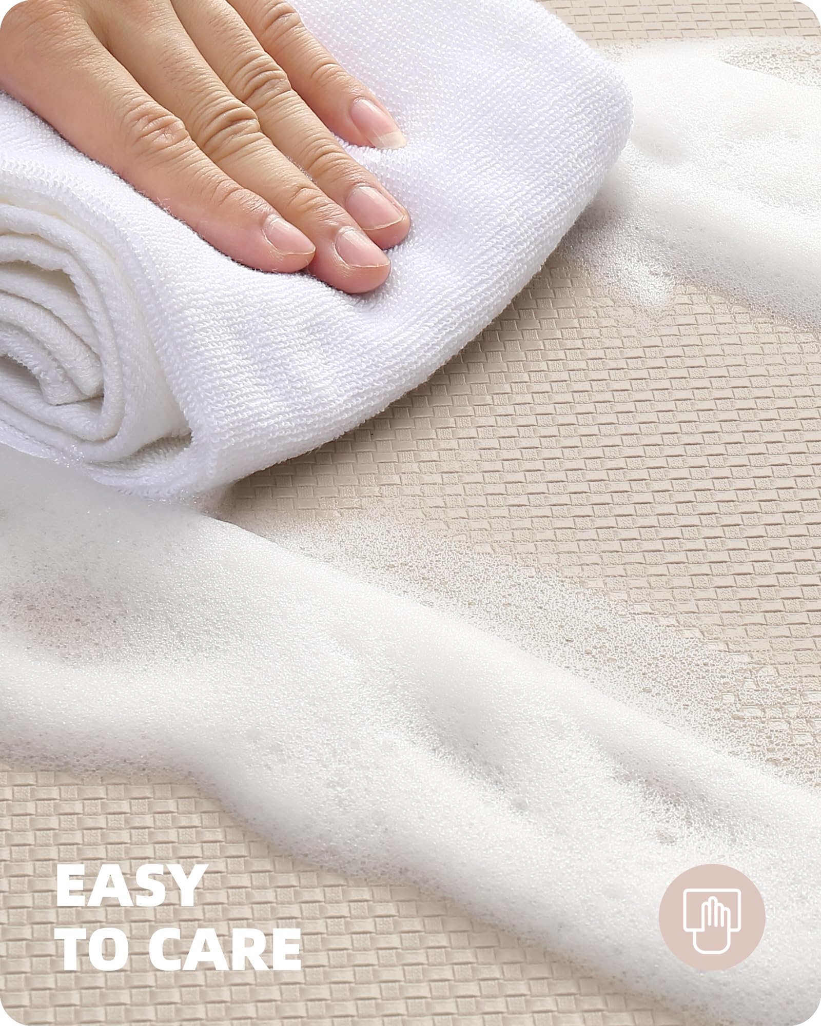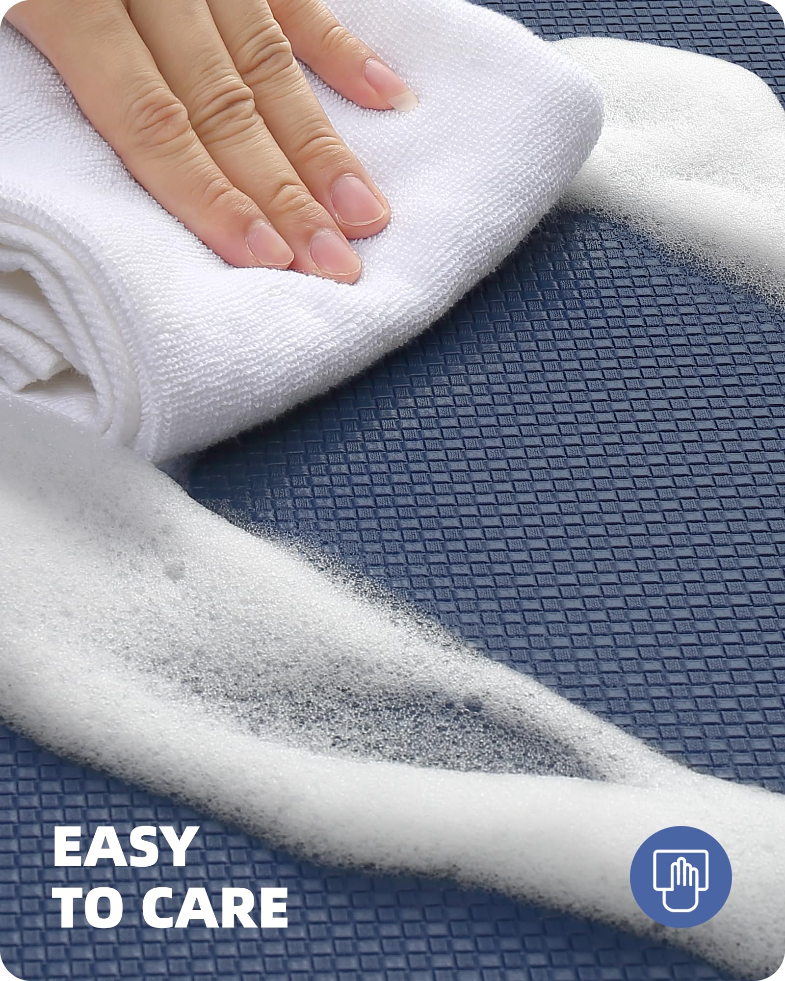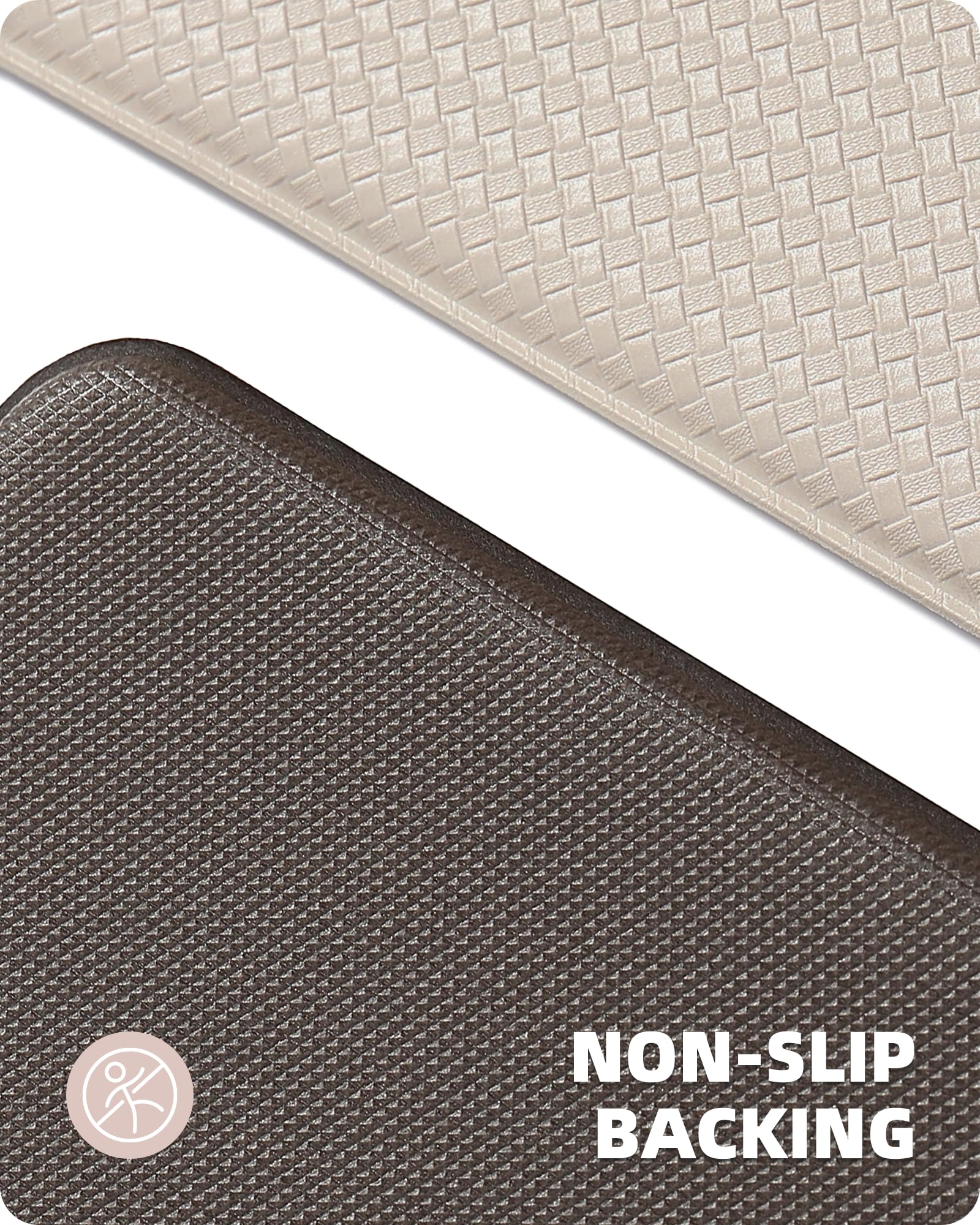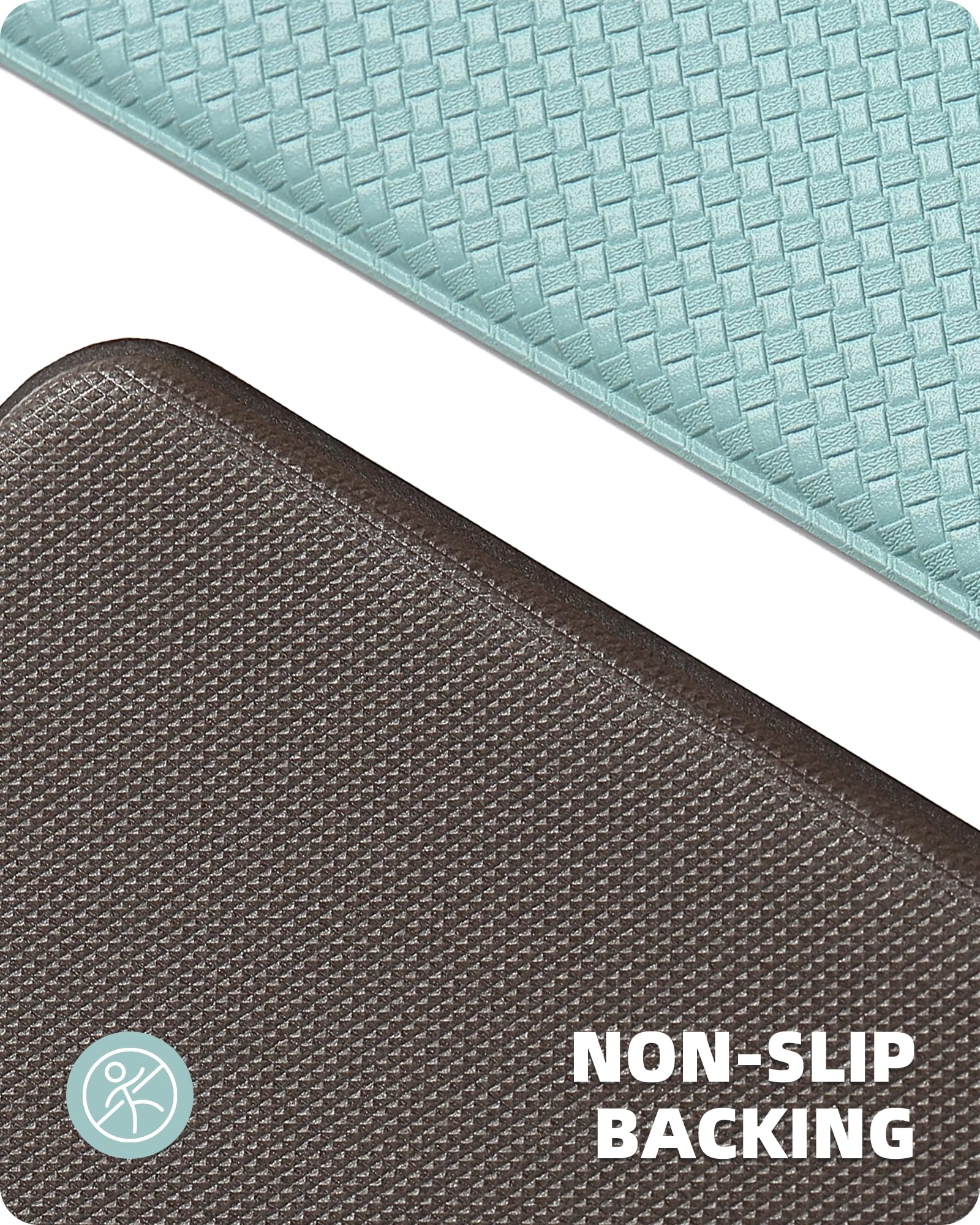 - [Rutschfest & Schutz]: Die Halterung dieser Küchenmatte besteht aus strapazierfähigem PVC mit einer diamantförmigen Anti-Rutsch-Textur, die eine hervorragende Rutschfestigkeit auf Holz-, Fliesen- und Betonböden bietet. Der 8 mm dicke Schwammkern bietet hervorragenden Schutz vor versehentlichem Herunterfallen von Geschirr.