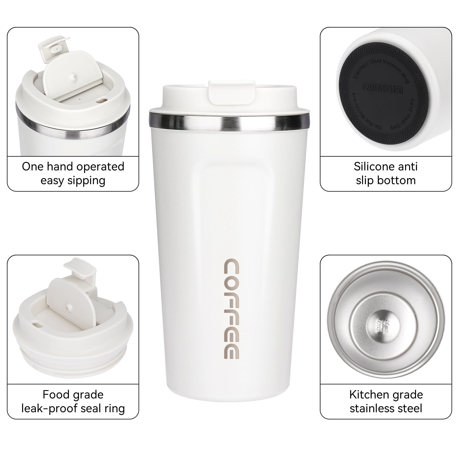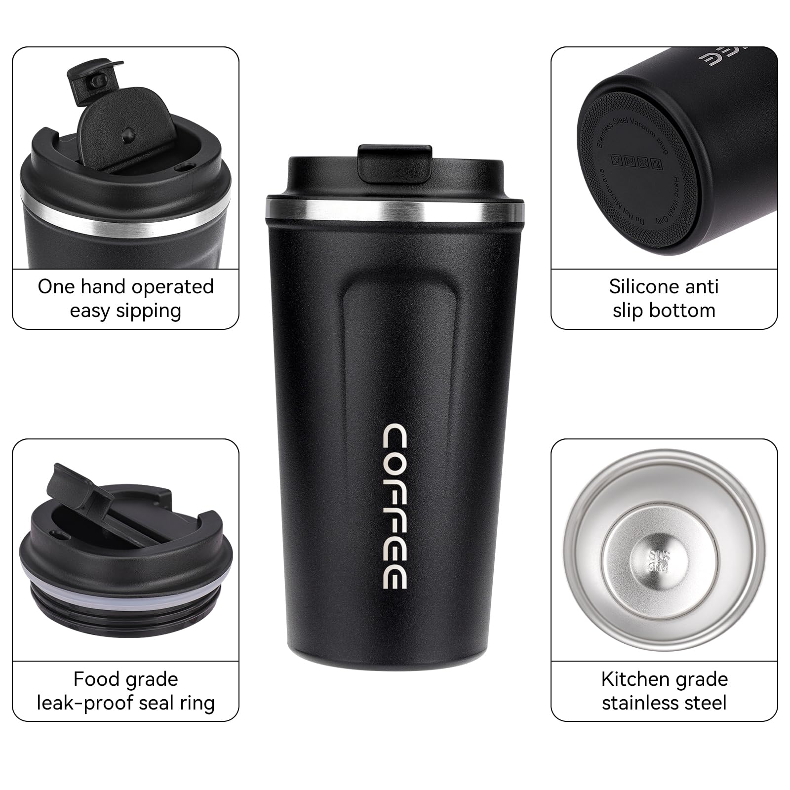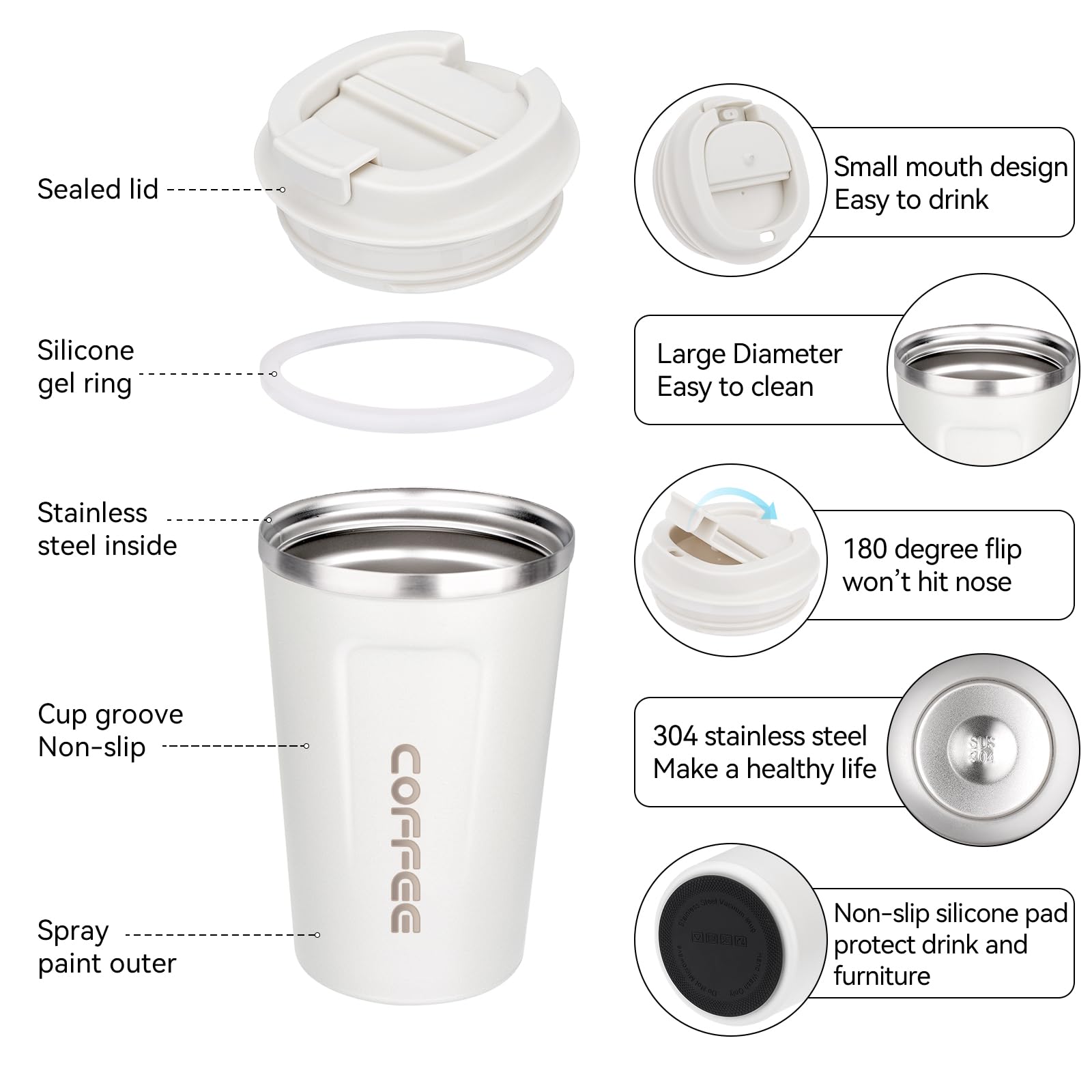 - ☕【Kaffeebecher to go】 Kaffeetasse der BPA-freie schraubdeckel verhindert zusammen mit dem silikondichtring das austreten von wasser. Die doppelwandige Vakuumisolierung besteht aus hochwertigem 304 doppellagigem Edelstahl, langlebig und verhindert die Zunahme von Bakterien, hält Getränke geruchsfrei.