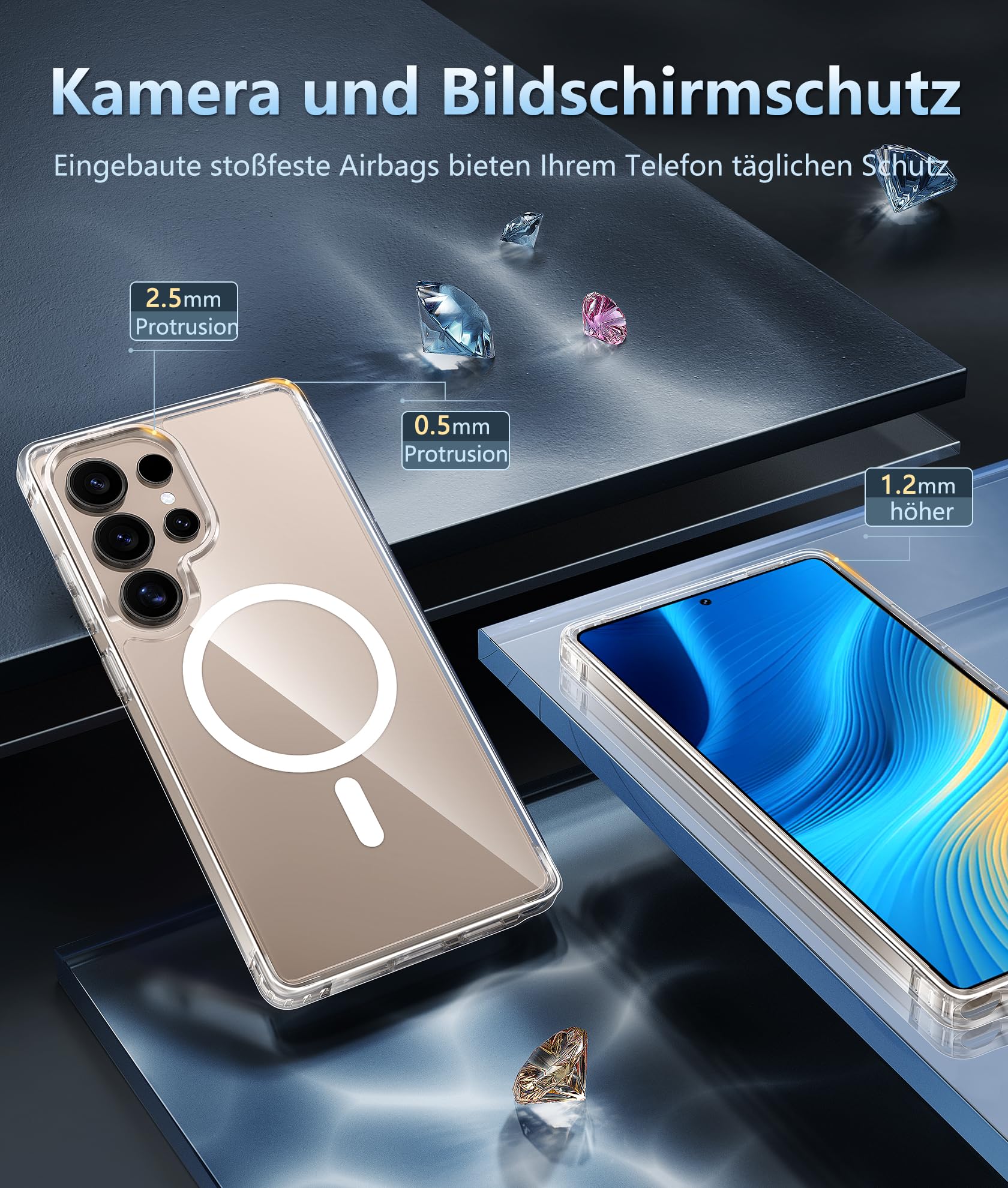 - Crystal clear and never yellows: The premium, ultra clear thermoplastic polyurethane (TPU) and (PC) materials from Bayer allow you to admire the original, sublime beauty of your Samsung Galaxy S25 Ultra while ensuring that the phone does not get oily when used.