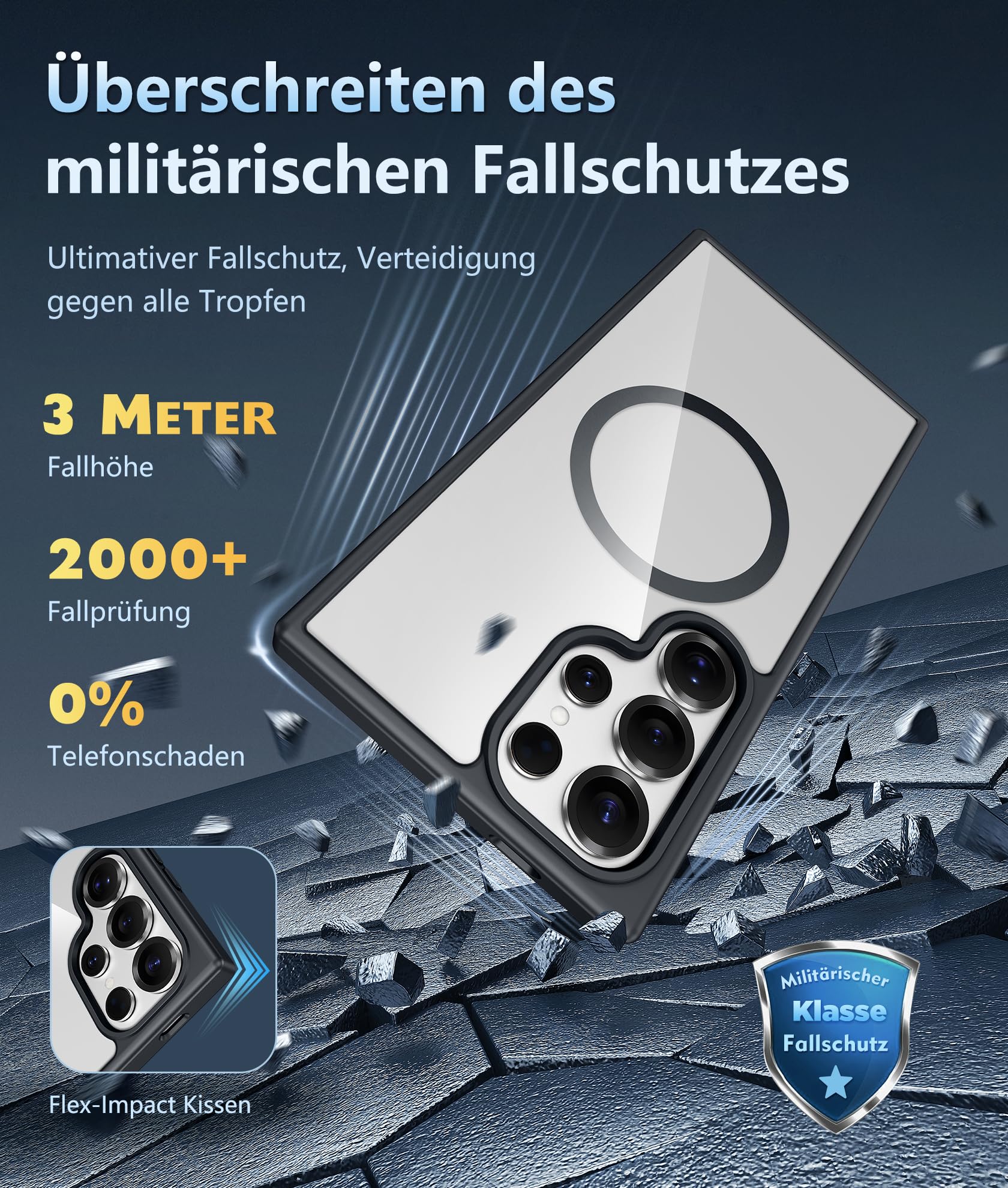 - Military-grade, 3-metre drop protection: Military drop tested at heights up to 3 metres. This Samsung Galaxy S25 Ultra clear case is made of rigid polycarbonate and features flexible, shockproof thermoplastic polyurethane (TPU) bumpers on the edges, as well as 4 built-in shock-absorbing corner airbags.