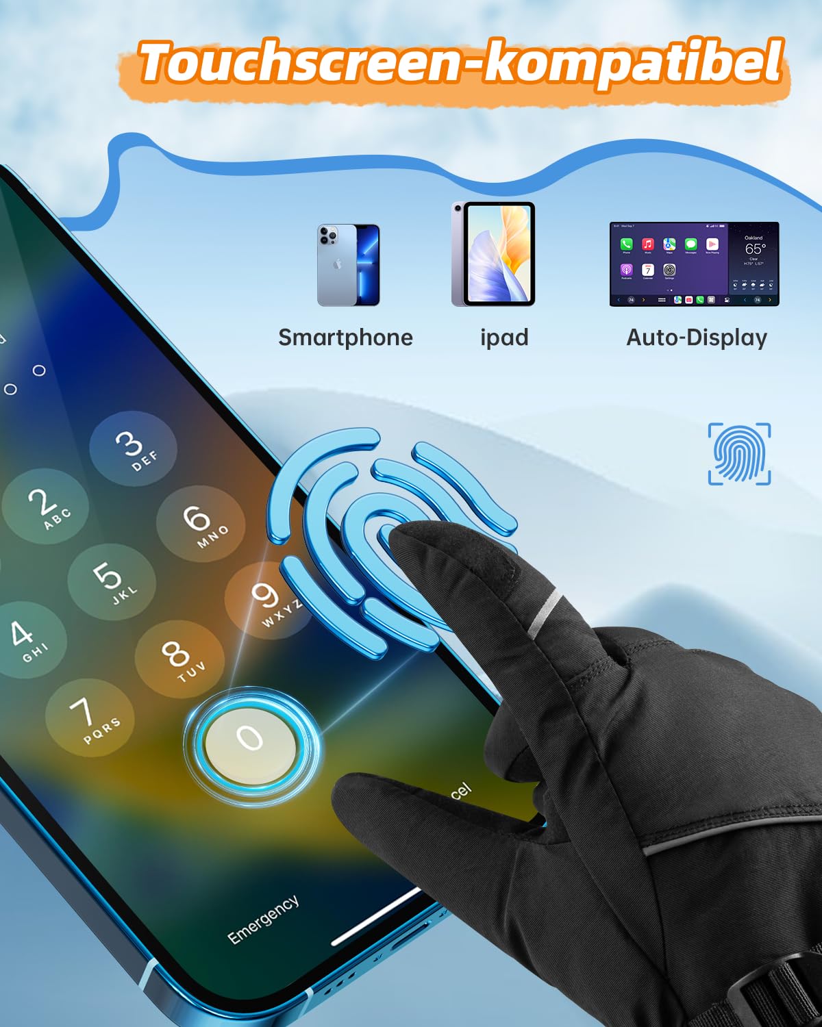 des Telefons ohne Ausziehen der Handschuhe.