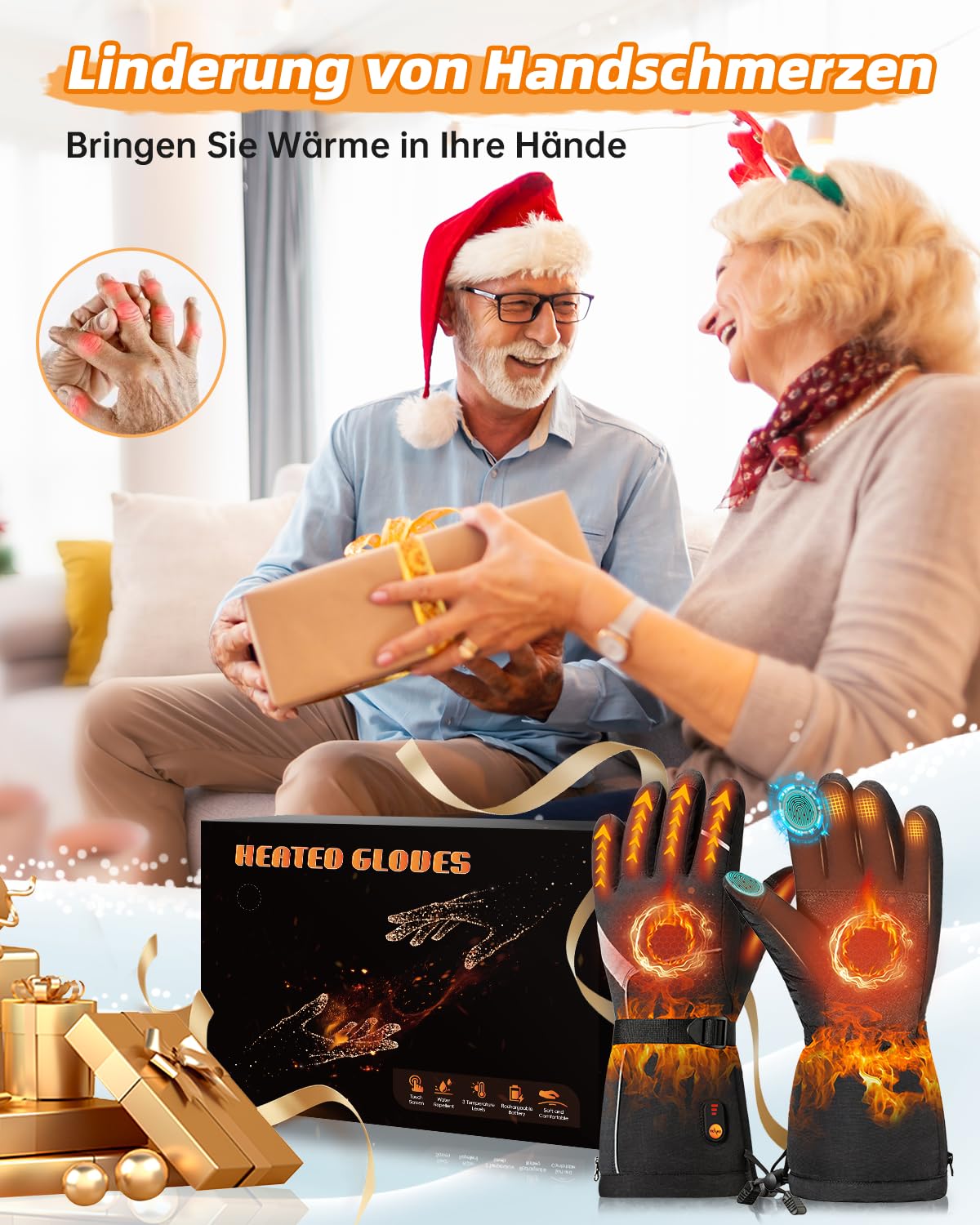 - Best winter gift with comprehensive package content: Heated gloves women's battery are the perfect winter gift for people with arthritis, Raynaud syndrome, poor blood circulation or stiff joints. They allow you and your loved ones to finally say goodbye to cold hands. The package includes the following components: 1 pair of heated gloves for men and women, 2 x 3000 mAh rechargeable batteries, 1 x double charging cable and 1 x user manual (English language not guaranteed).