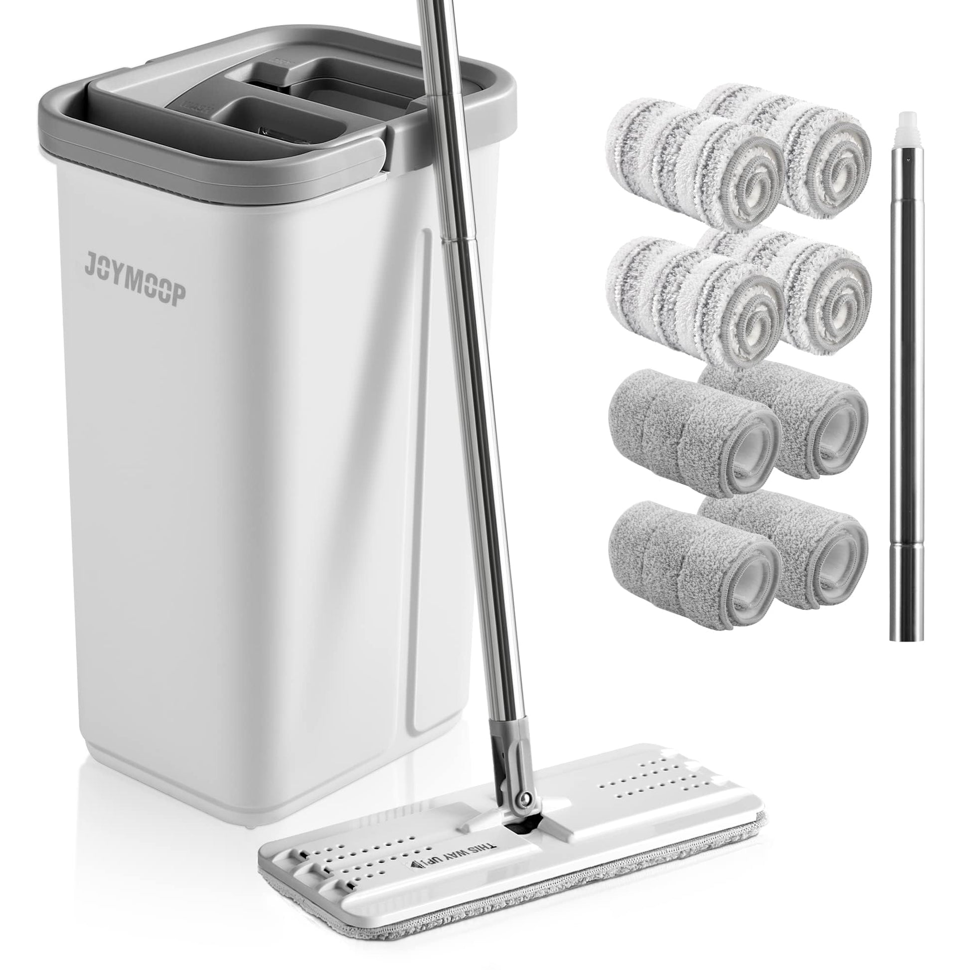 JOYMOOP Mop und Eimer mit Wringer Set, Hands Free Flat Floor Mop und Eimer, mit 5 waschbaren Mikrofaserpads, Nass- und Trockeneinsatz, Bodenreinigungssystem