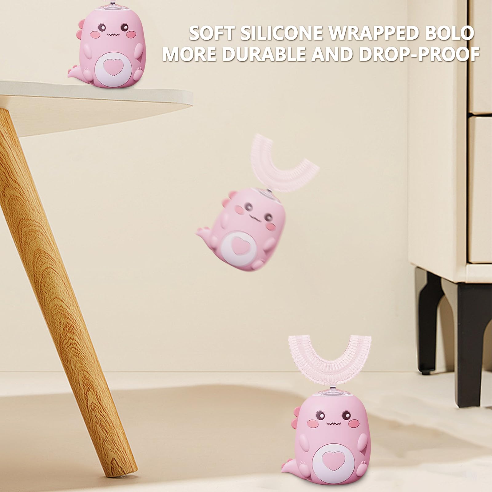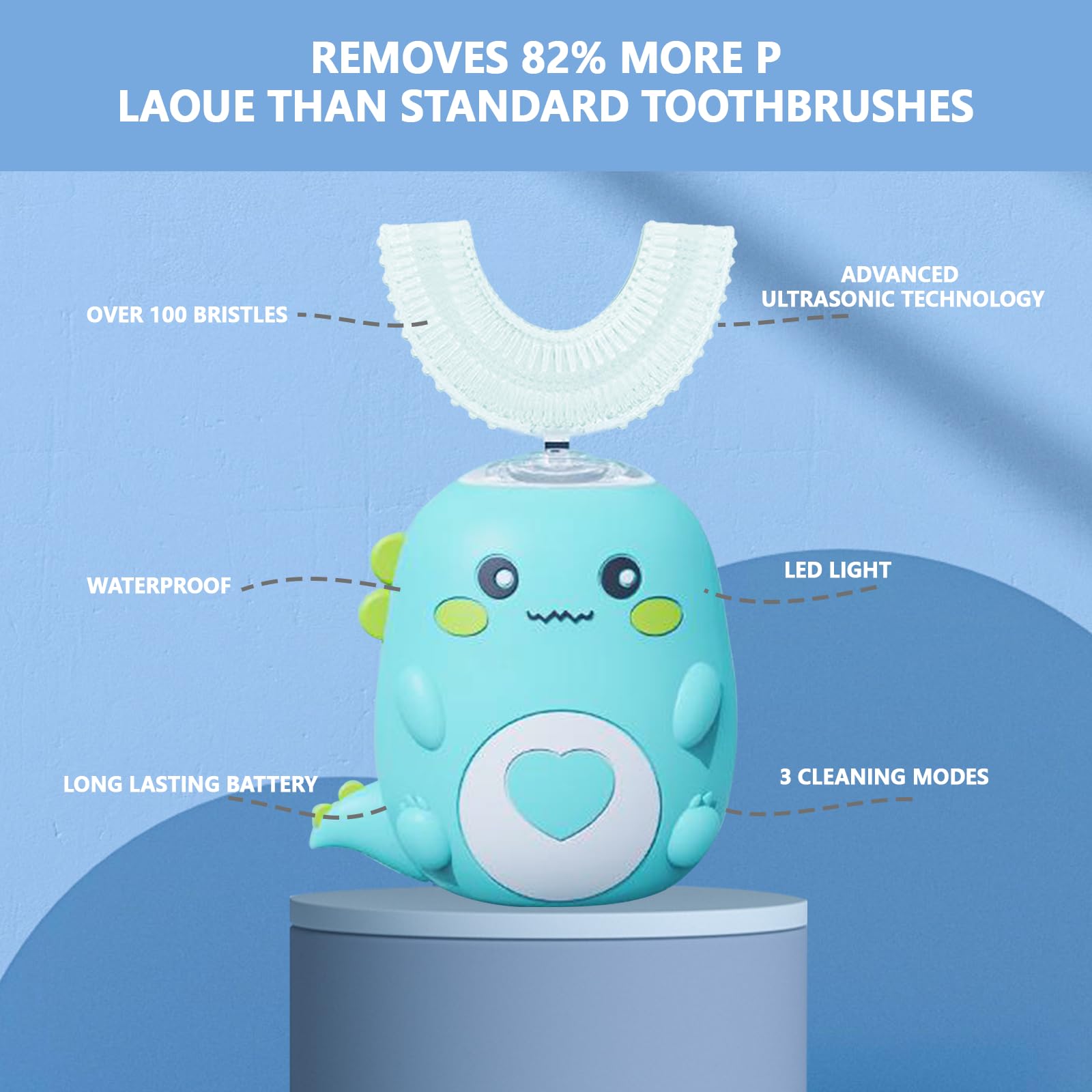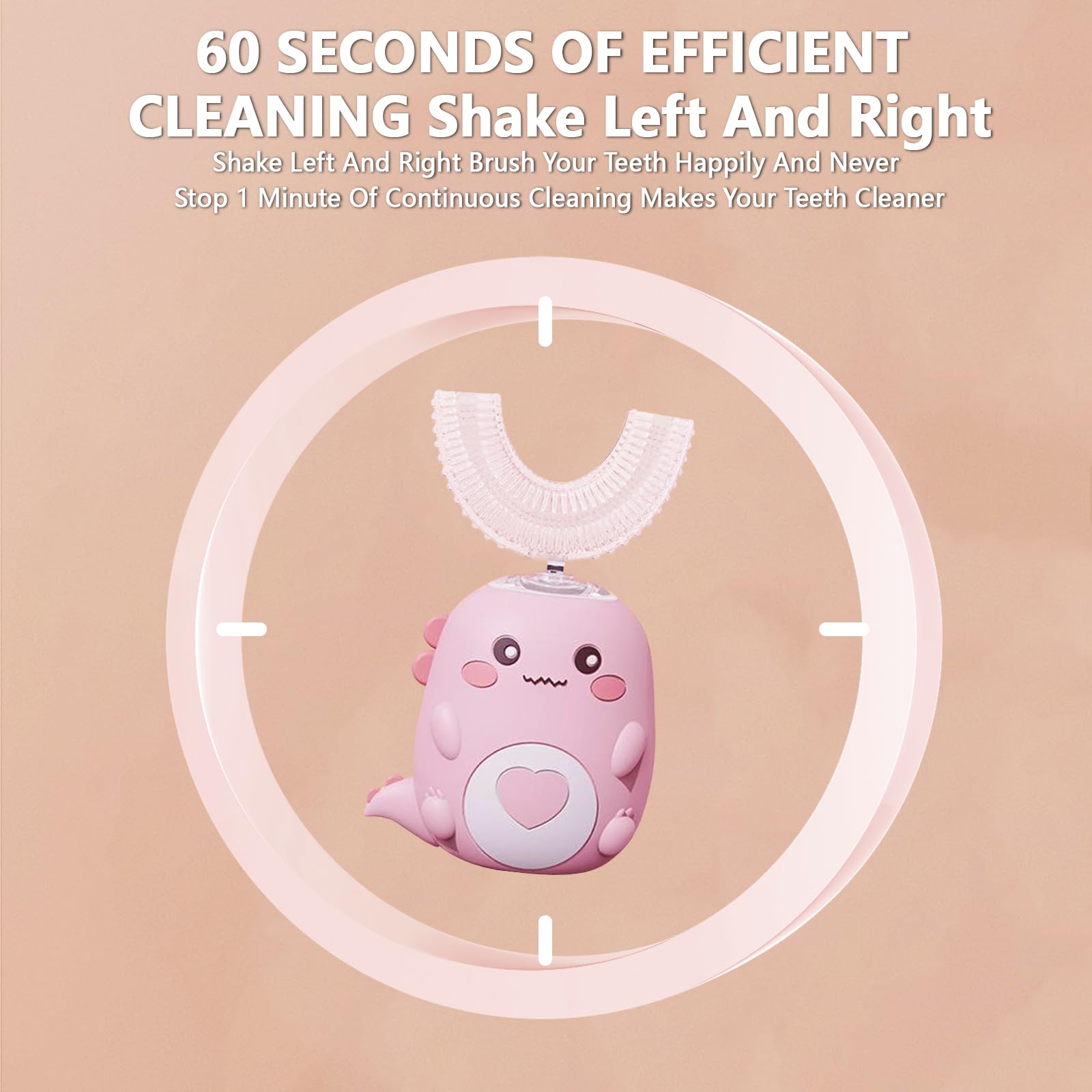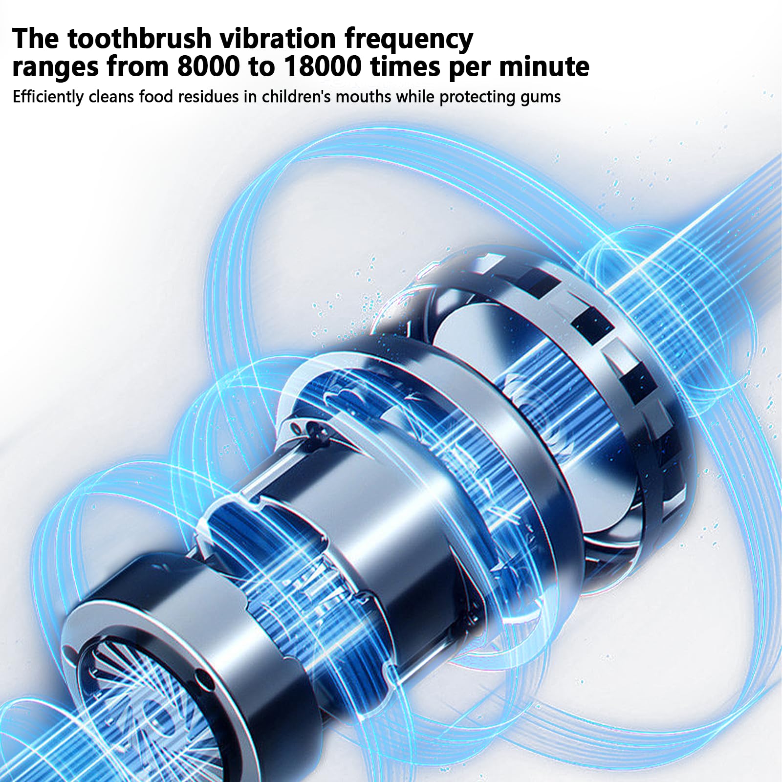 - U-förmige 360°-Reinigung für effektiven Zahnfleischschutz und zahnfreundliche Ergebnisse: Der U-förmige Bürstenkopf aus lebensmittelechtem Silikon passt sich sanft den Rundungen der Milchzähne an und bietet eine 360°-Reinigung der Innen- und Außenflächen. Hochfrequente Vibrationen mit 8.000–18.000 Bewegungen pro Minute reinigen Zahnzwischenräume und blinde Flecken gründlich, ohne das Zahnfleisch zu reizen. Ein einziger Bürstenzug sorgt für eine vollständige Reinigung des gesamten Mundes – das spart Zeit und Mühe und ist somit ideal für Kinder.