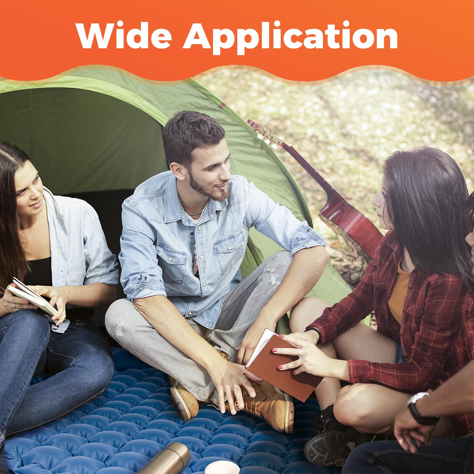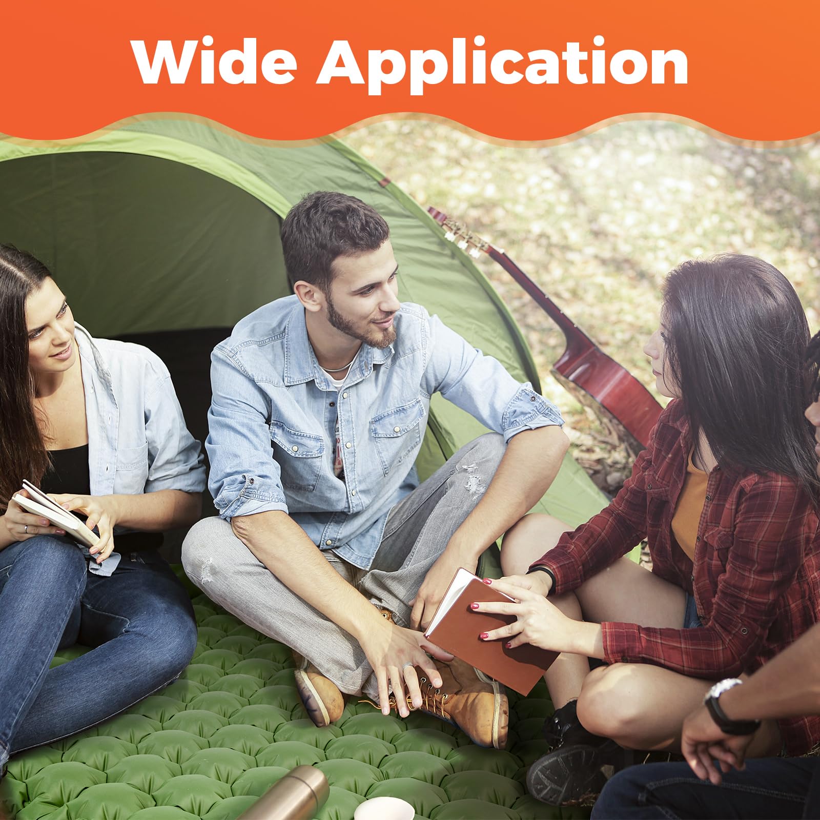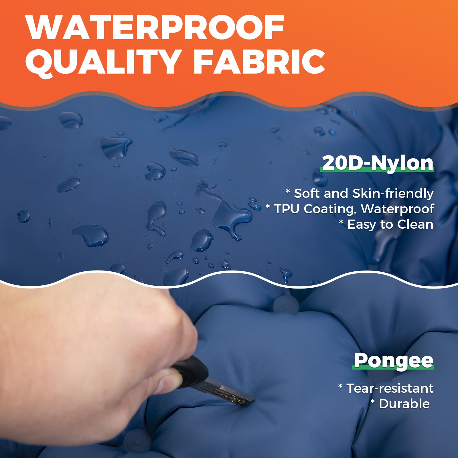 - Gleichmäßige Unterstützung Camping Matratze: Die Isomatte verwendet eine Struktur mit streifenförmigen Luftstützen, gewährleistet gleichmäßige Gewichtsverteilung und stärkt die Unterstützung für ein angenehmes Liegeerlebnis.Wenn Sie mehr als 70 kg wiegen, empfiehlt es sich, eine Decke auf die Matte zu legen, um einen bequemeren Schlaf zu gewährleisten.