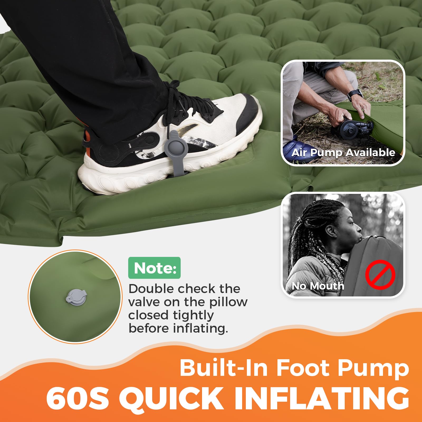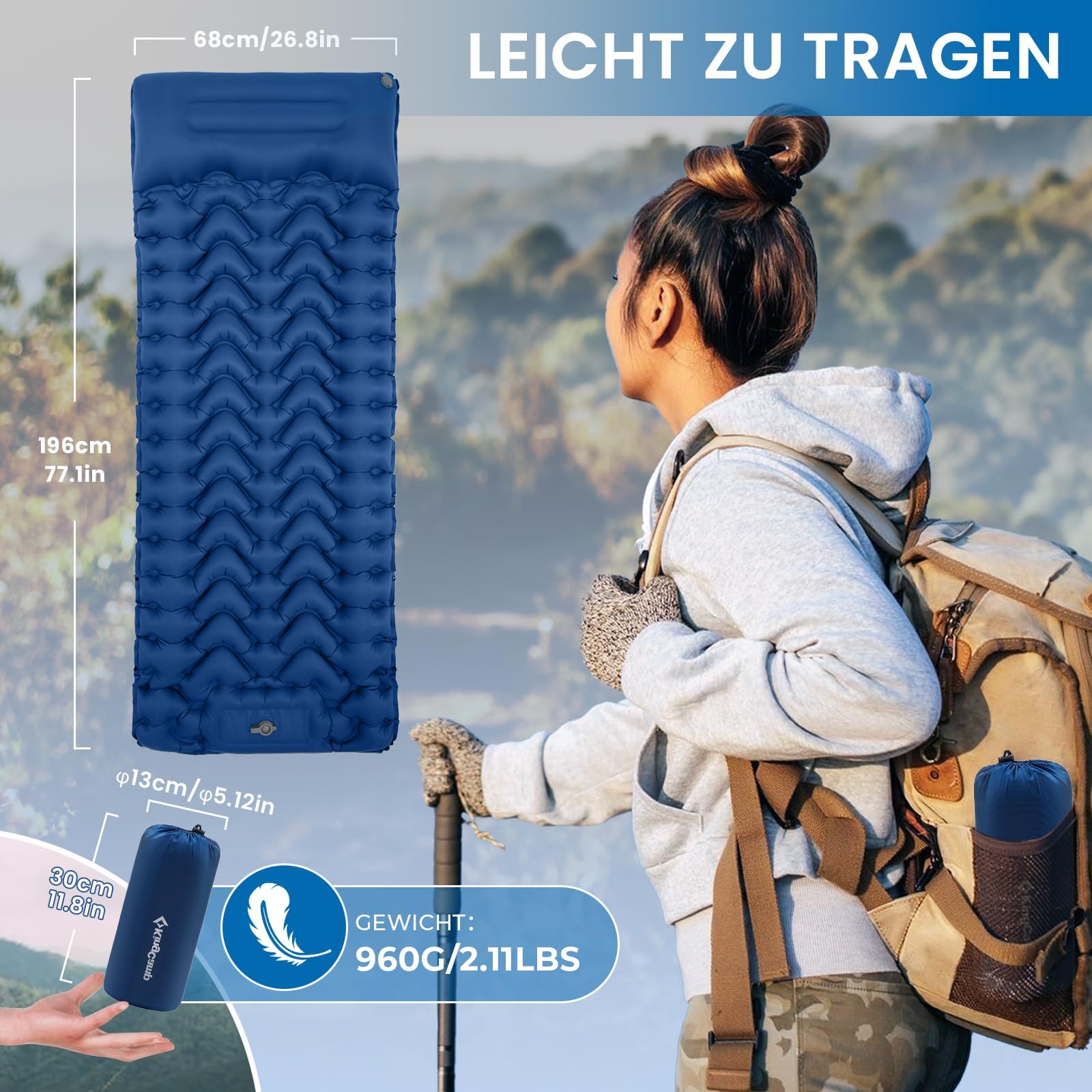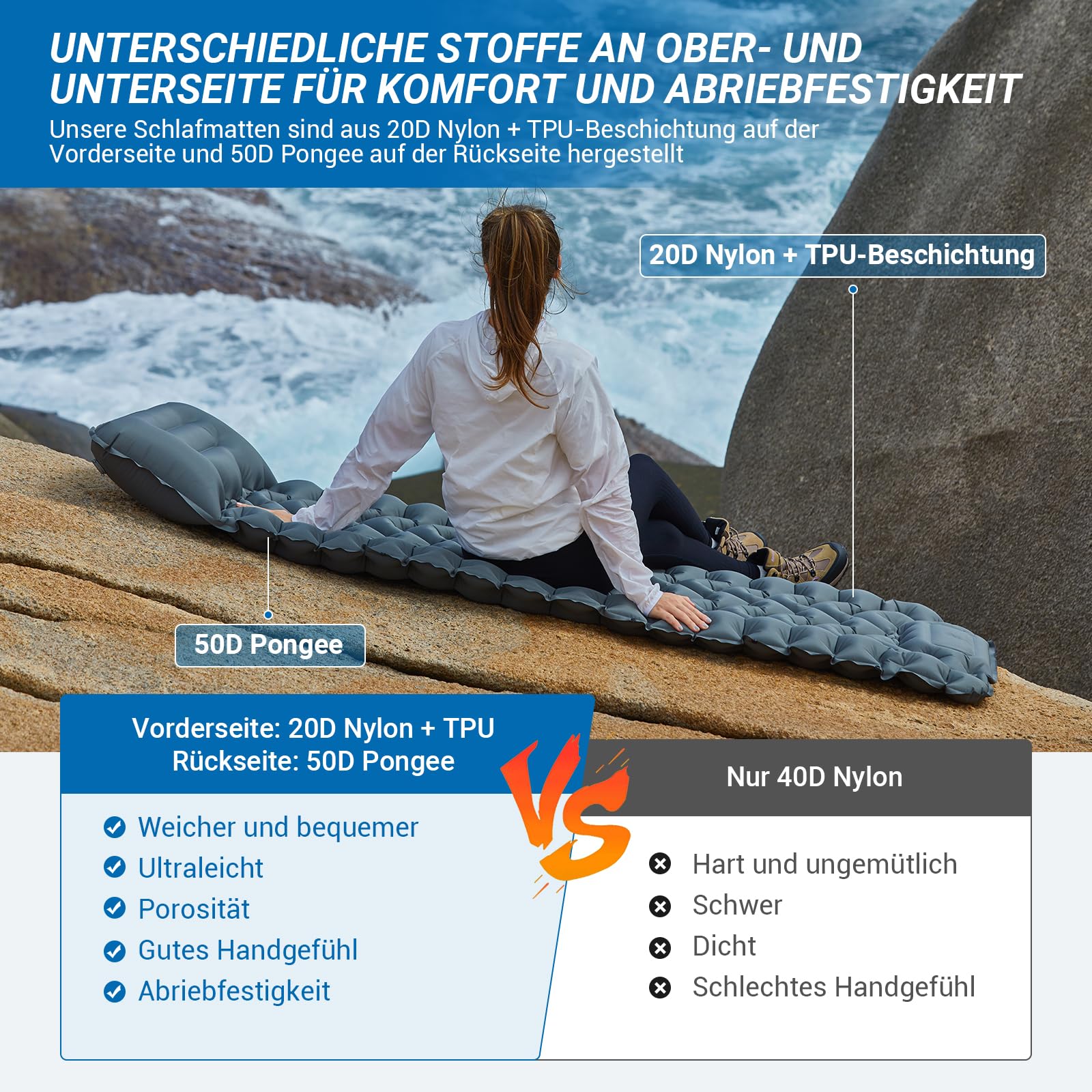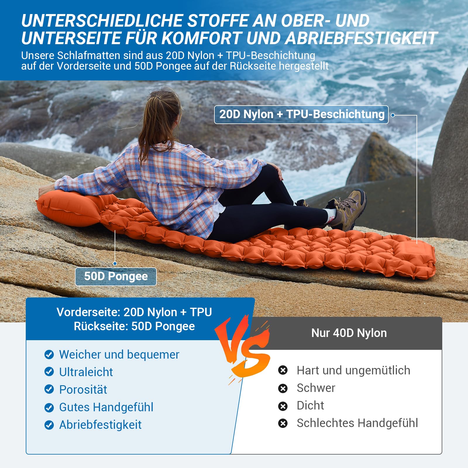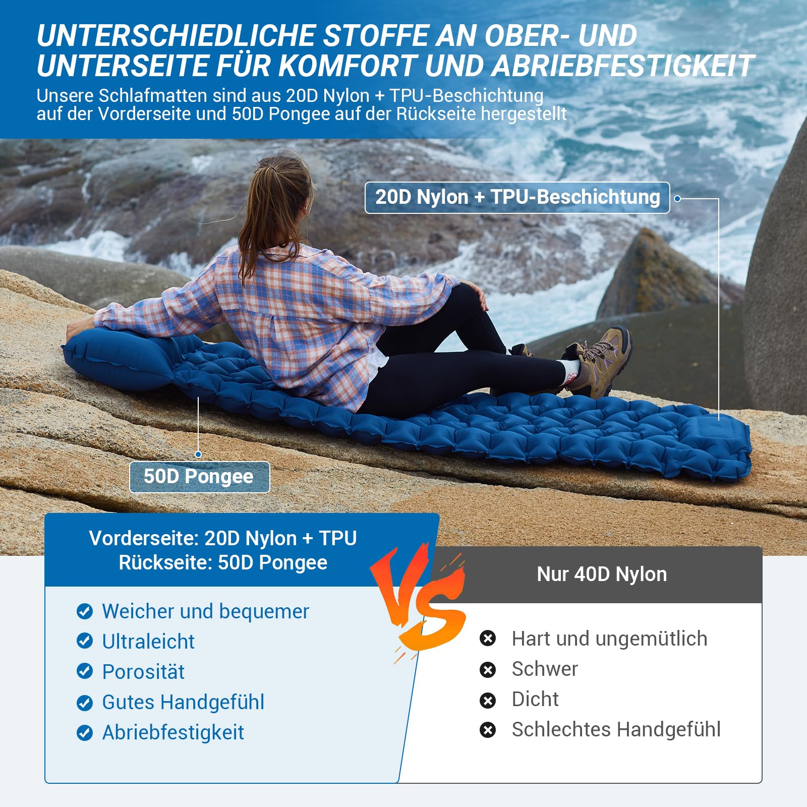 - Isomatte Selbstaufblasend mit Fußpumpe: Die innovative Fußpumpe der Isomatte befreit die Hände, ermöglicht leichtes Aufblasen der ultraleichten und aufblasbaren Isomatte, bietet effizientes Outdoor-Erlebnis mit selbstrückstellender Einwegluftstruktur.