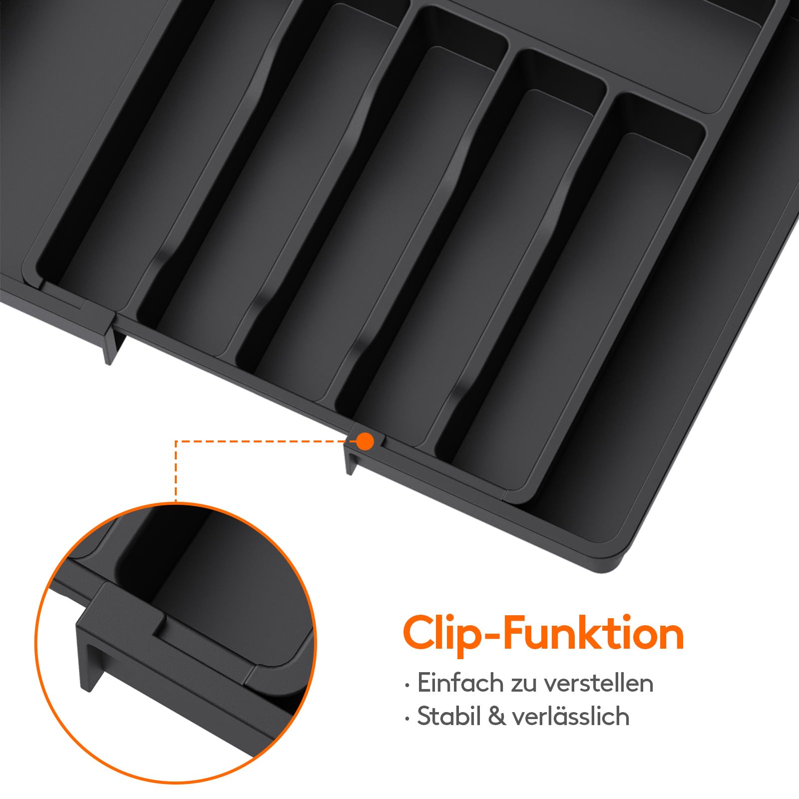 Lifewit Besteckkasten für Schubladen,verstellbarer Besteckhalter Utensilienhalter für Küchenschubladen, Schubladeneinsatz Besteckeinsatz für Küche Organizer aus Kunststoff für Löffel,Gabeln, Schwarz