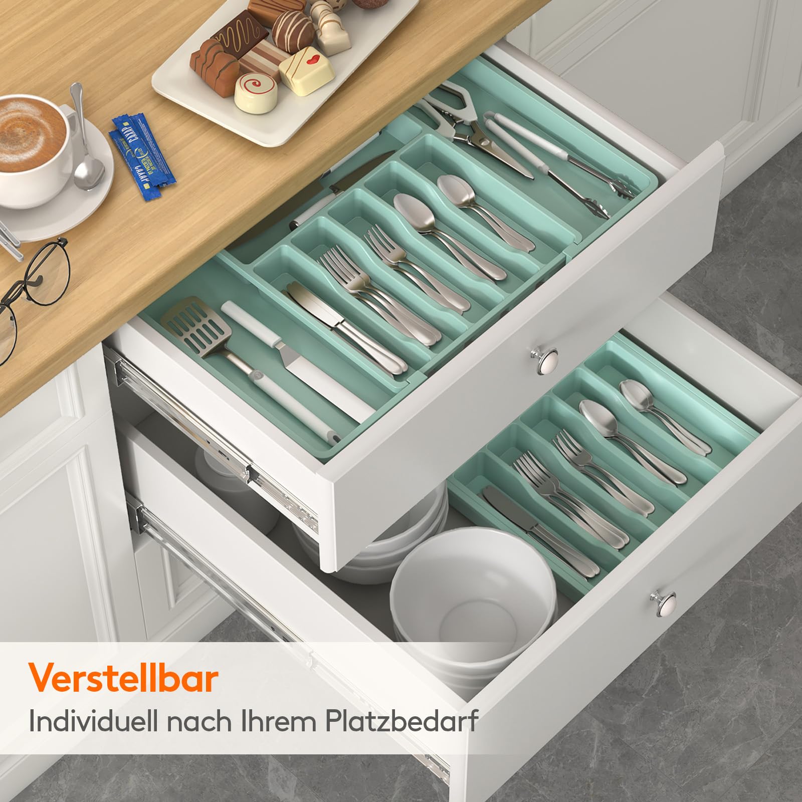 - Hochwertiges Material: Der Organizer besteht aus dickem und robustem hochwertigem PP-Material und ist BPA-frei, sodass sich der Besteckhalter für alle Arten von Geschirr eignet. Dank der robusten Konstruktion ist er für eine lange Lebensdauer ausgelegt.