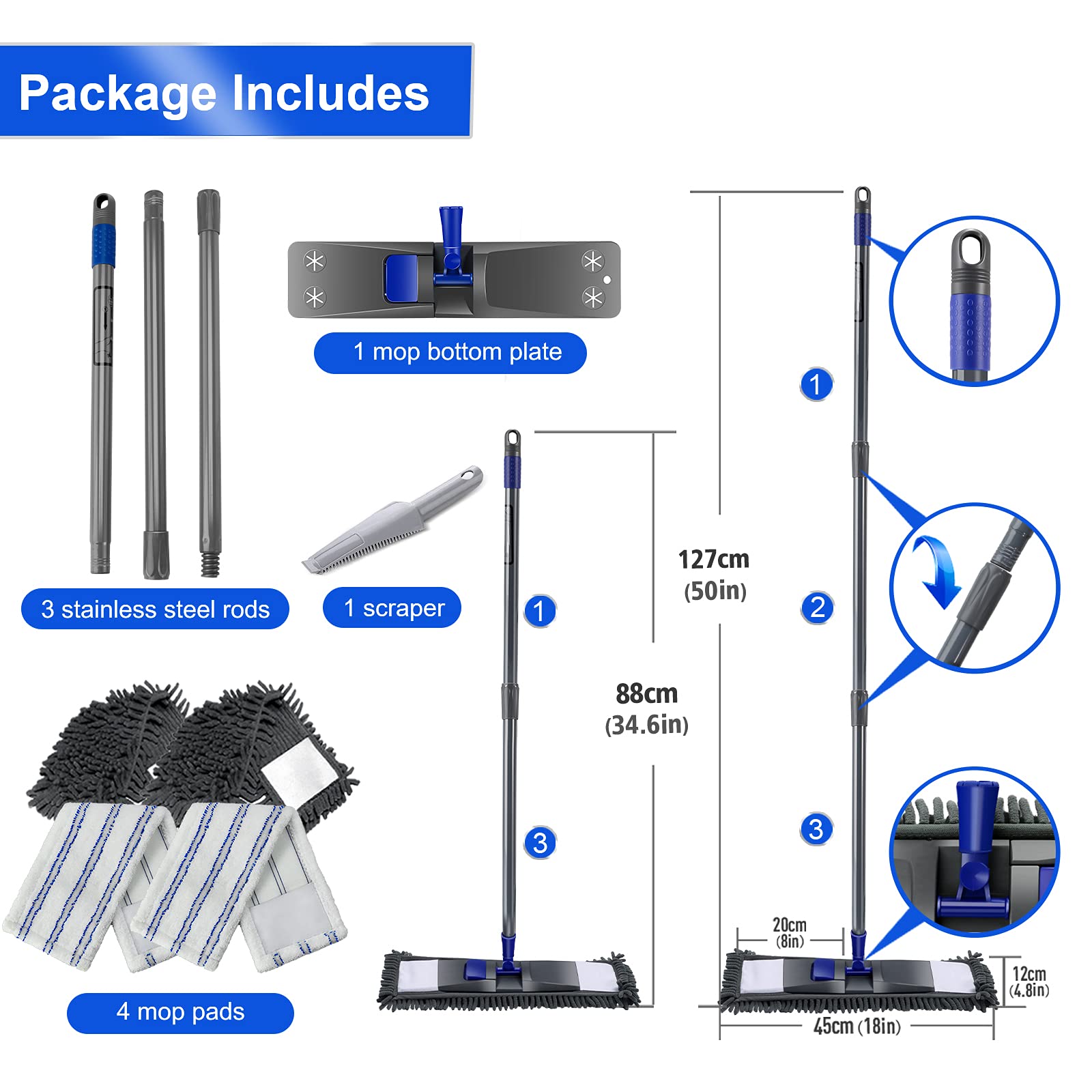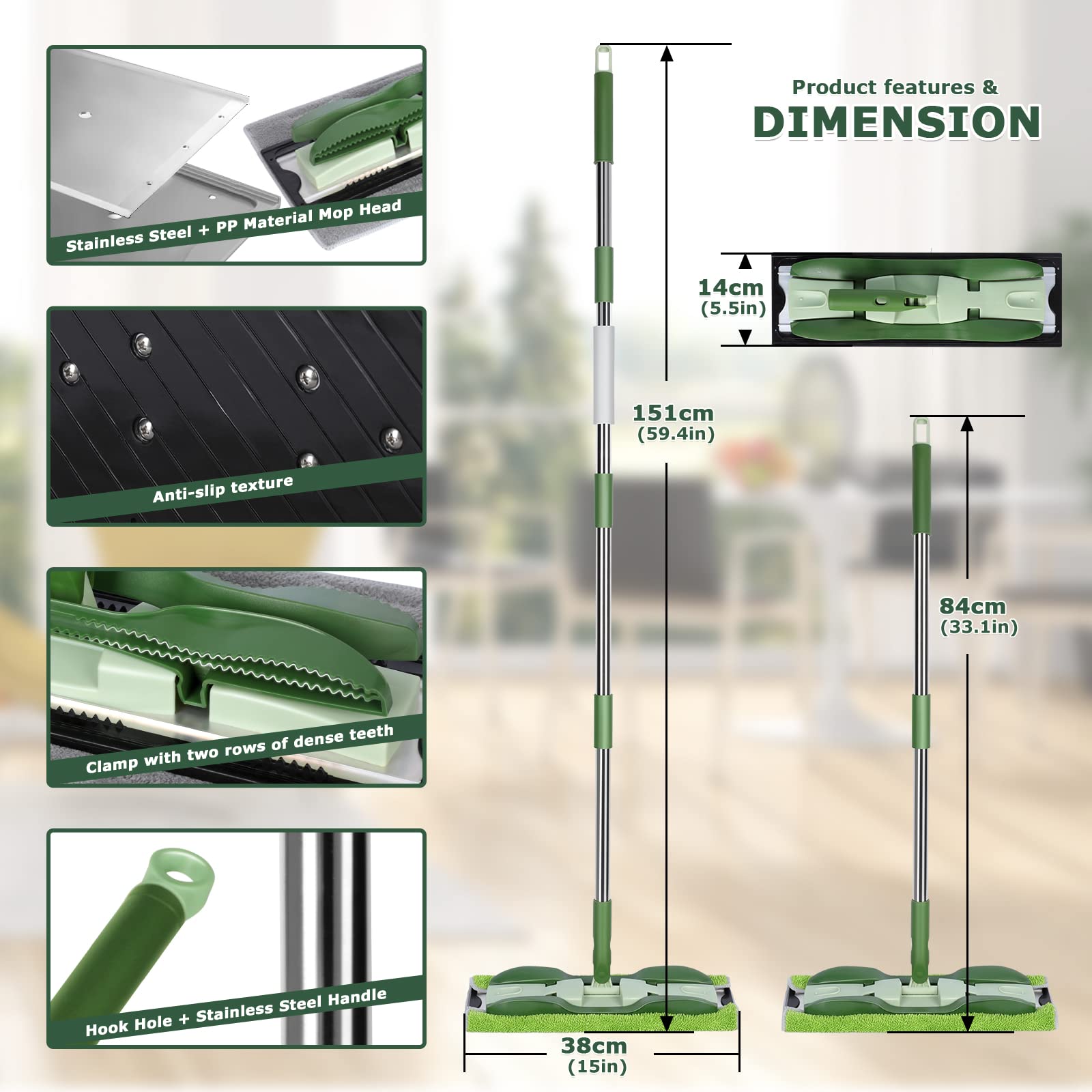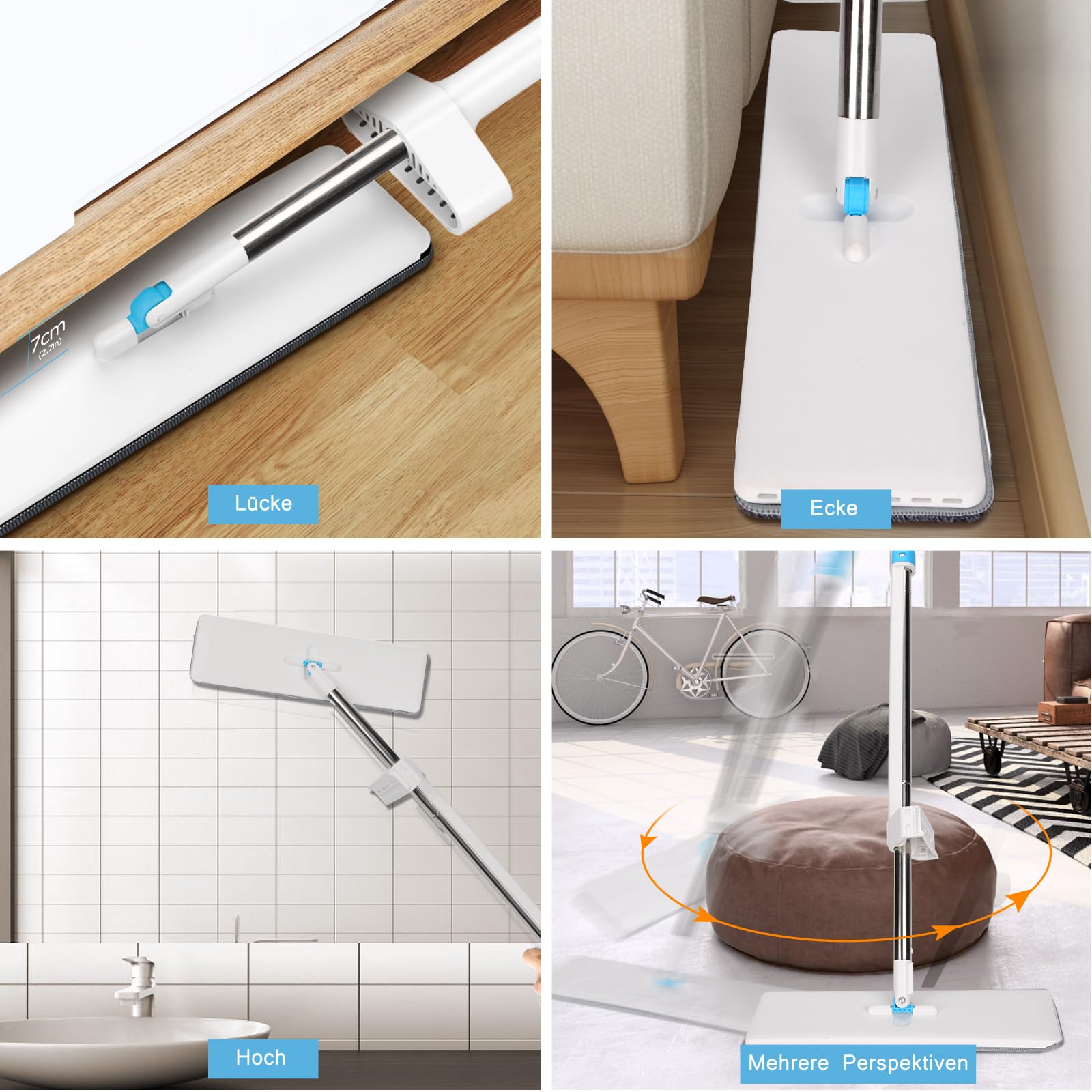 - 💖EINFACHE BEDIENUNG💖Mit einem einfachen Schnappdesign drücken Sie einfach den blauen Knopf am Moppkopf und heben den Mopp an. Die untere Platte lässt sich hochklappen, um schmutzige Mopppads zum Austauschen leicht zu entfernen. Einfach zu bedienen, bequem und schnell.