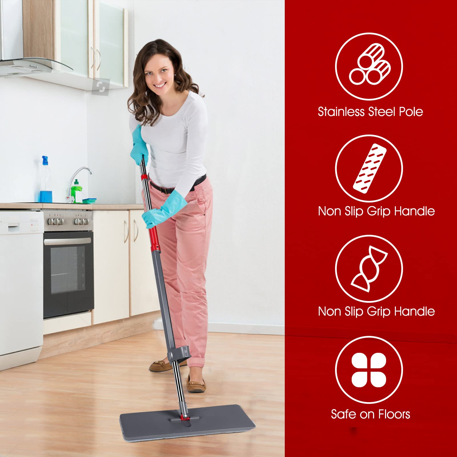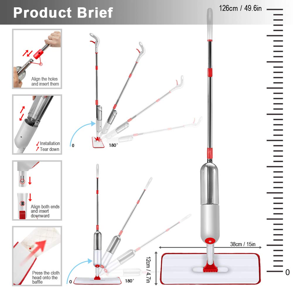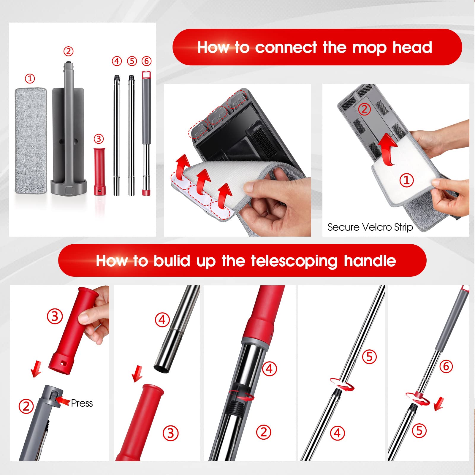 - 💖EINFACHE BEDIENUNG💖Mit einem einfachen Schnappdesign drücken Sie einfach den blauen Knopf am Moppkopf und heben den Mopp an. Die untere Platte lässt sich hochklappen, um schmutzige Mopppads zum Austauschen leicht zu entfernen. Einfach zu bedienen, bequem und schnell.