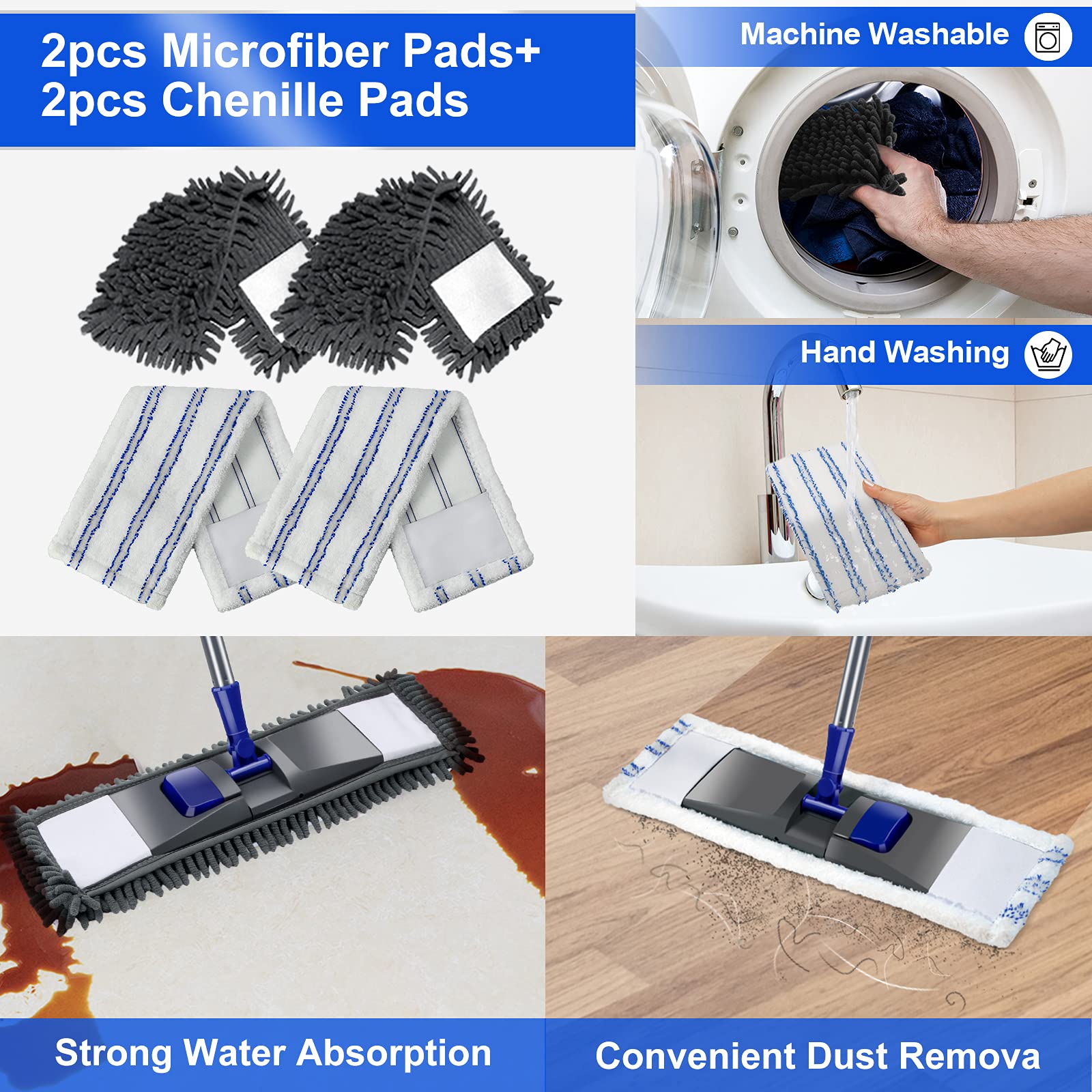- 💖MIKROFASER-MOPP-PADS💖Die Mikrofaser-Mopp-Pads sind sehr saugfähig und können Staub, Schmutz und Ablagerungen reinigen und Haare leicht aufnehmen. Kann Dutzende Male in der Waschmaschine gewaschen werden, wodurch Sie Geld sparen. Insgesamt 2 Chenille-Wischmatten + 2 Mikrofaser-Wischmatten.