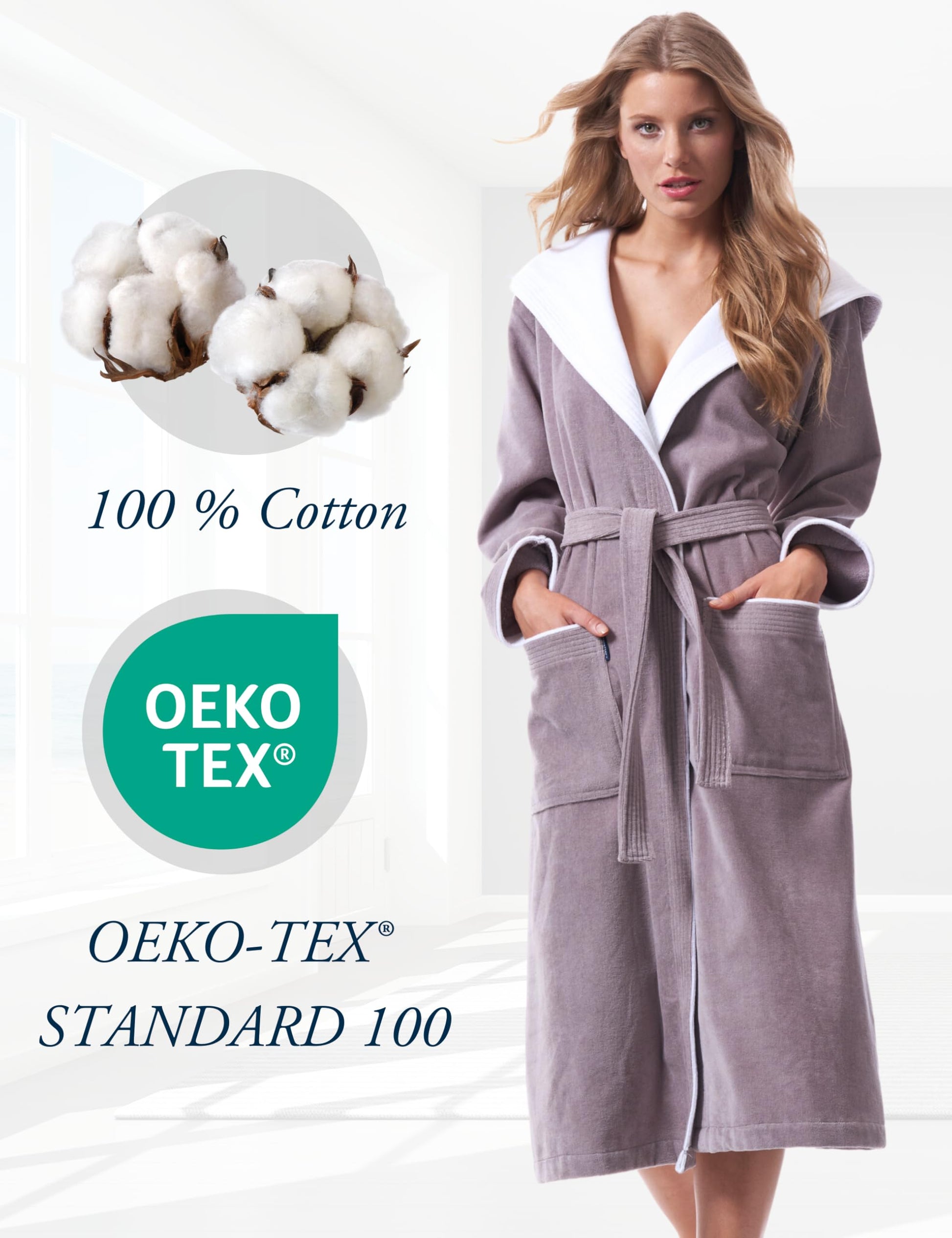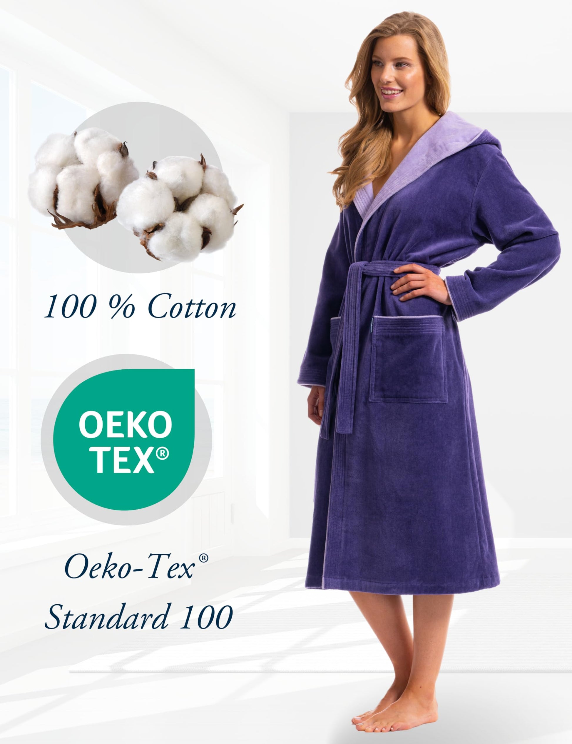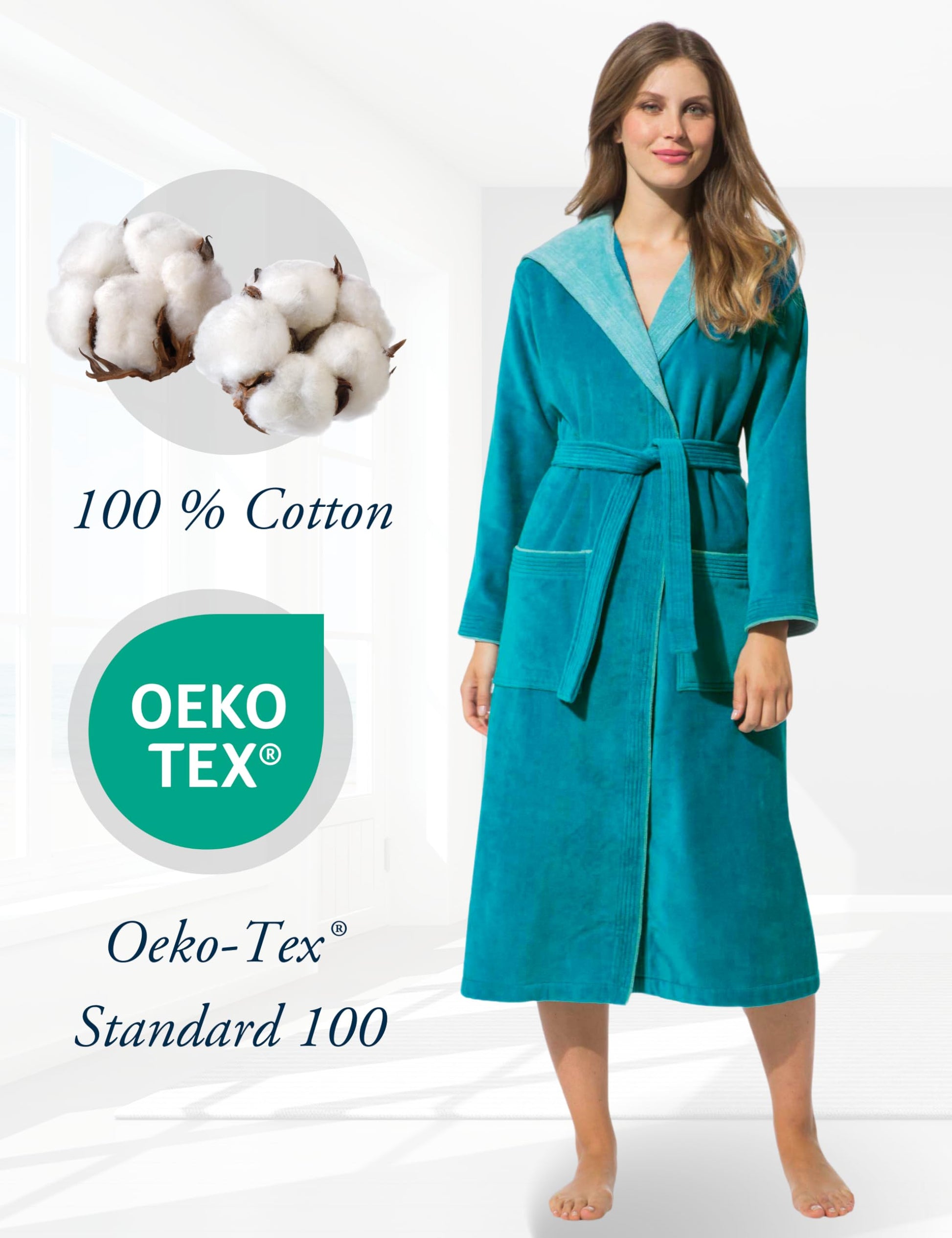 Morgenstern Bademantel Damen 100% Baumwolle mit Kapuze Frottee-Velours OEKO-TEX Leonie