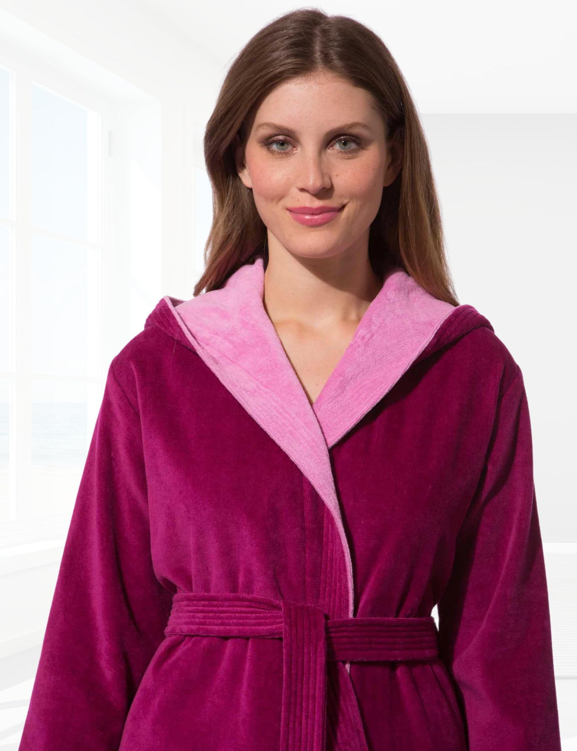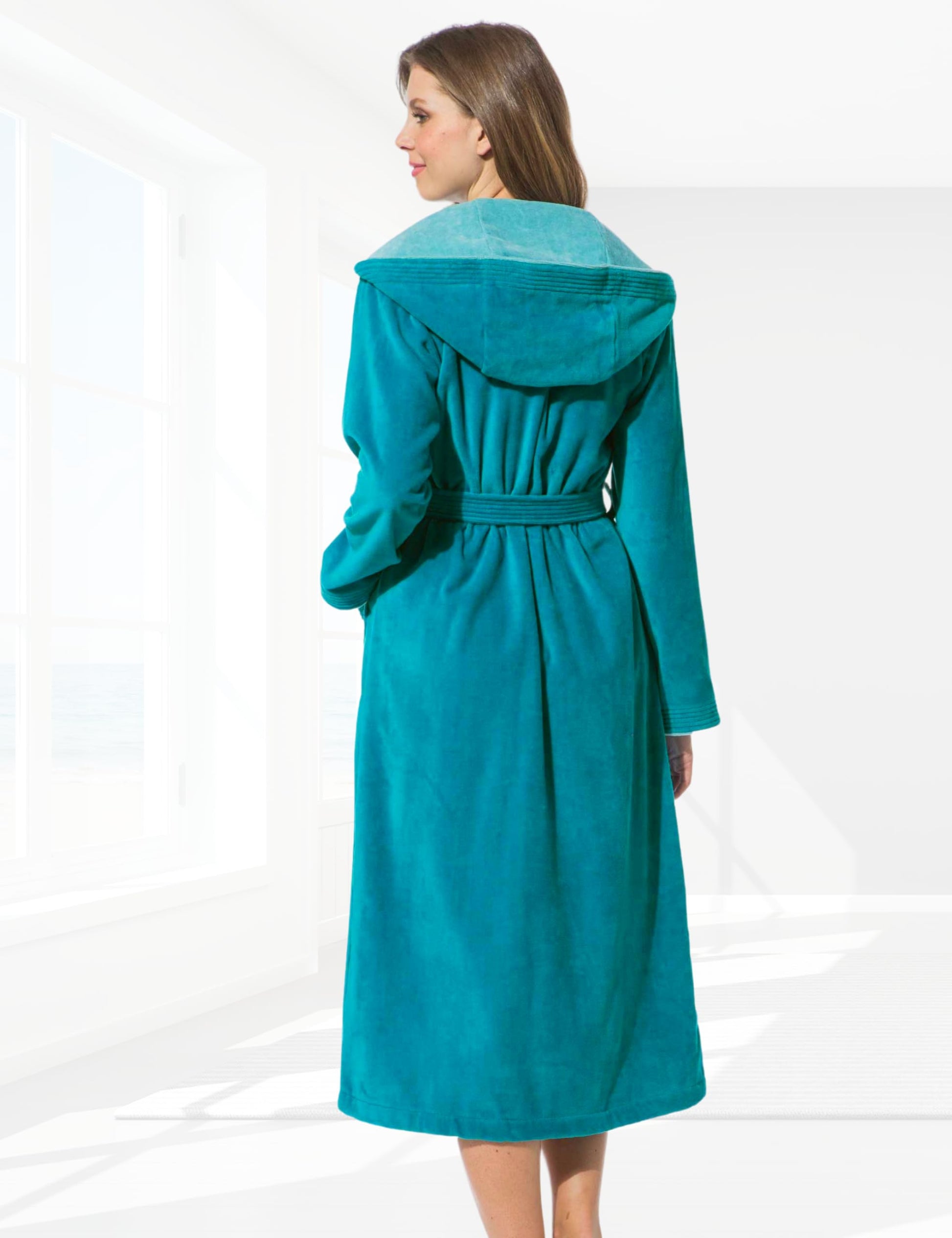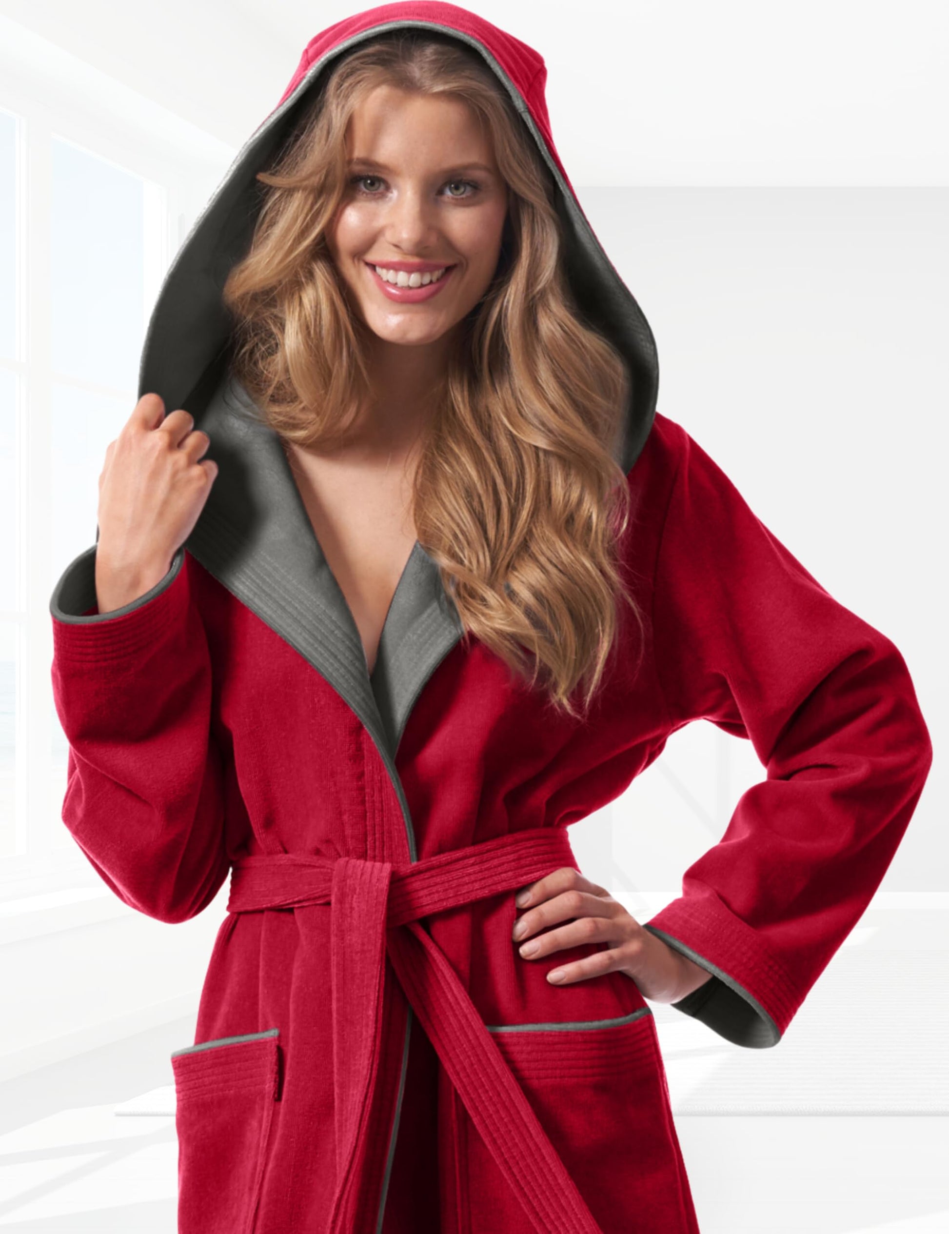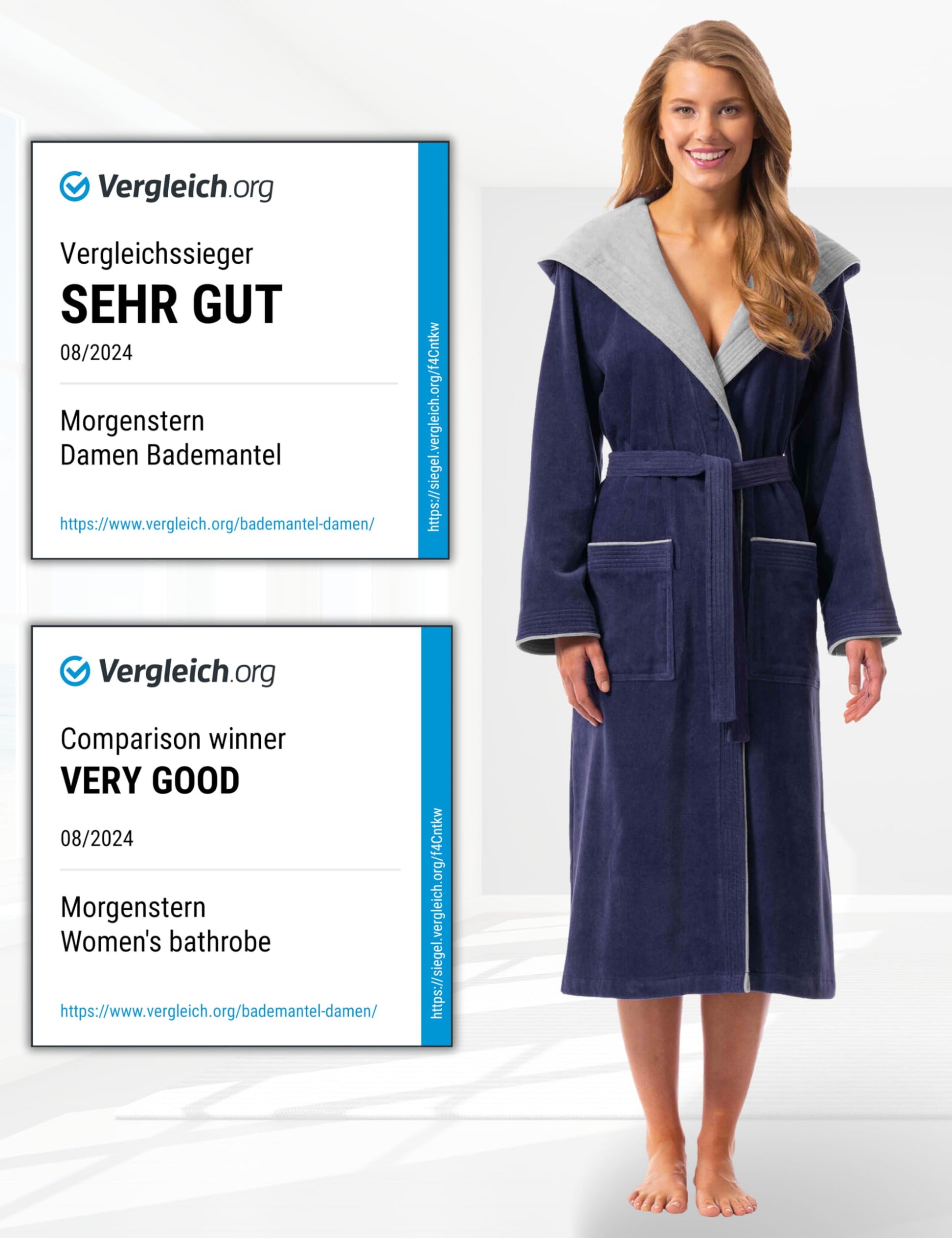 Morgenstern Bademantel Damen 100% Baumwolle mit Kapuze Frottee-Velours OEKO-TEX Leonie