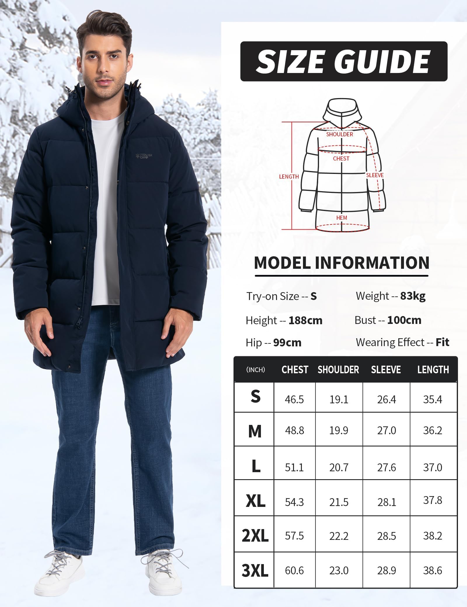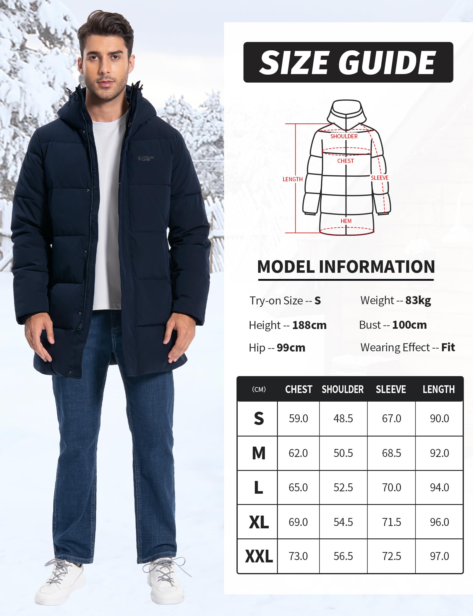 Pioneer Camp Men's Winter Jacket Long Windproof Waterproof Warm Down Jacket Winter Outdoor Parka Jacket with Hood