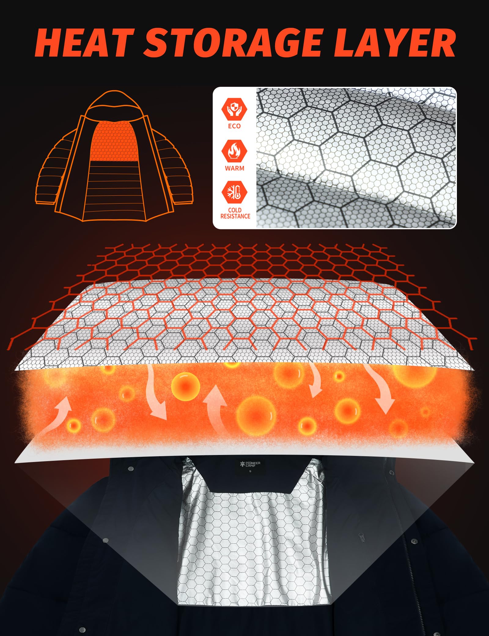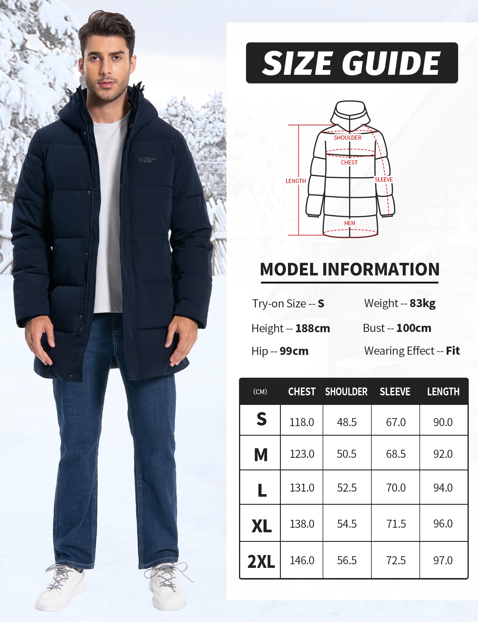 - Waterproof and windproof: the men's warm winter jacket is made of water-repellent coated DWR fabric and keeps you warm and dry in any weather. The warm hood with drawstring, stand-up collar and ribbed cuffs on the hem ensure better wind protection