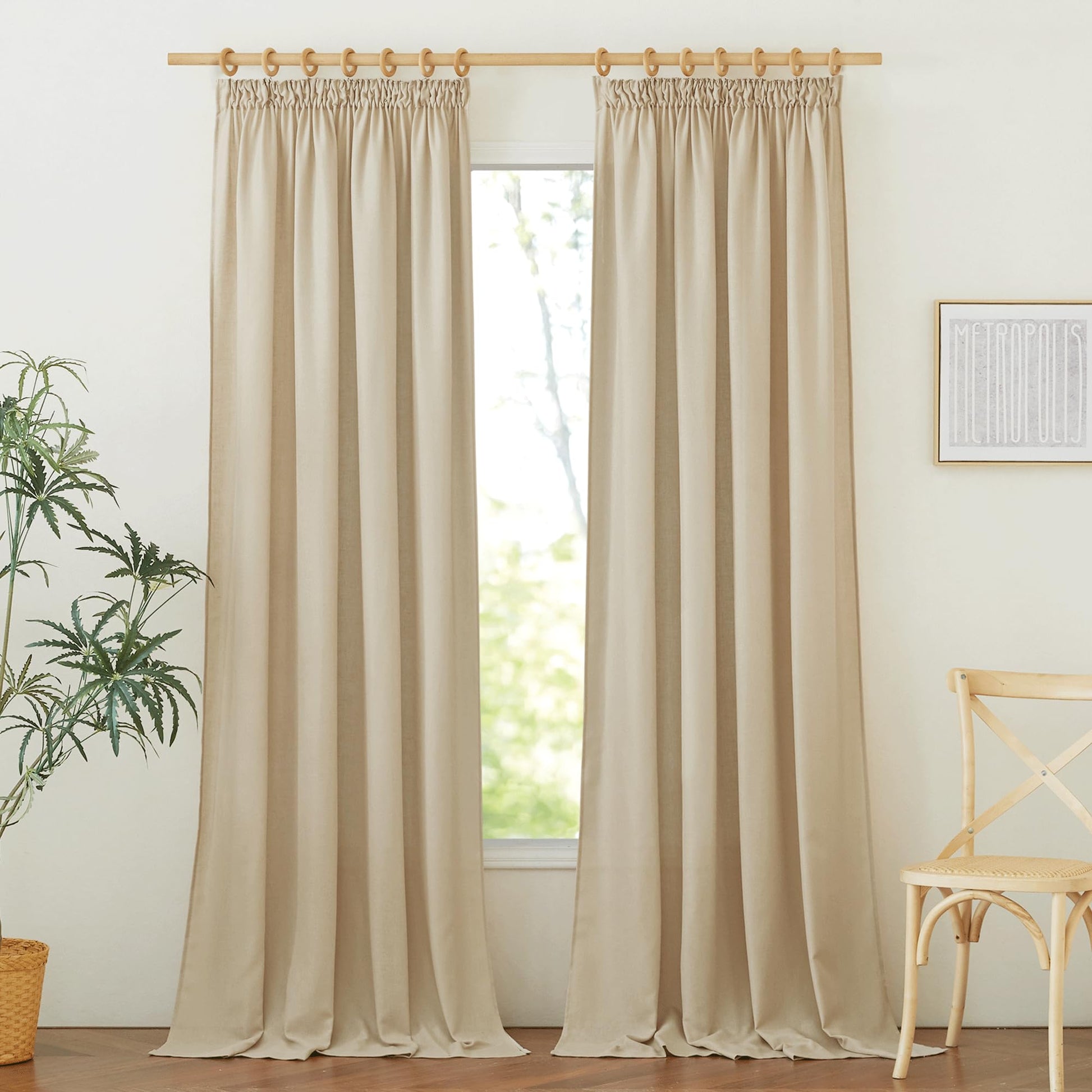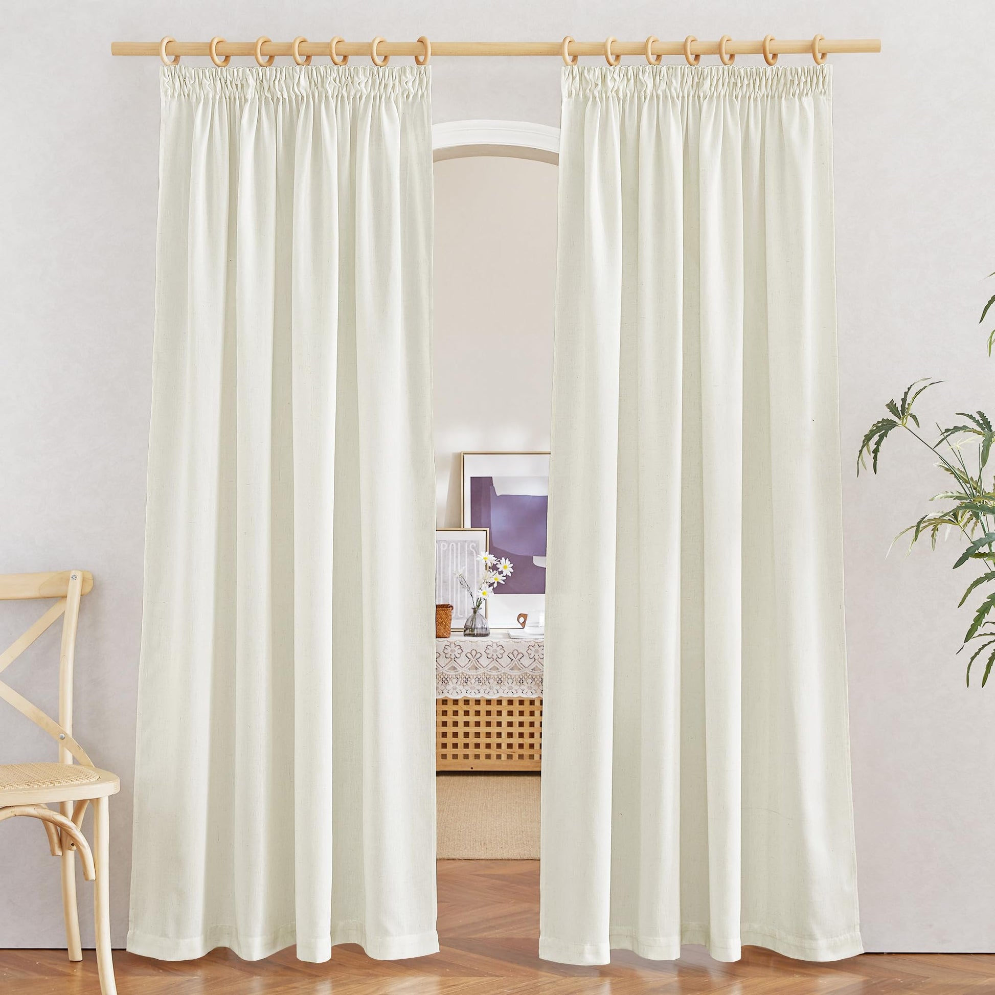 PONY DANCE Leinenvorhang Kräuselband Wohnzimmer Vorhänge Boho 2er Set H 245 x B 140 cm Leinen Gardinen für Schienensystem Leinenoptik Vorhänge Halbtransparent Linen Curtains Living Room, Beige