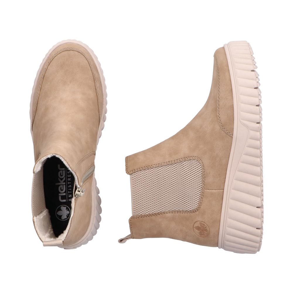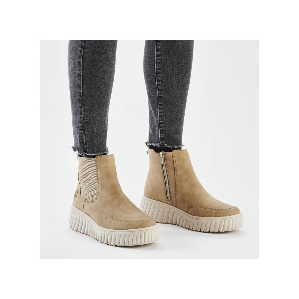 WowFaktor Diese lehmbeigen Rieker Chelsea Boots garantieren ein himmlisches Tragegefühl. The zip in combination with the elastic insert, as is usual with Chelsea boots, makes it easier to put on and take off. The platform sole is grippy and lightweight and provides good grip at all times. The padded and removable insole provides comfort and functionality for every day. These shoes are the perfect symbiosis of style and comfort.