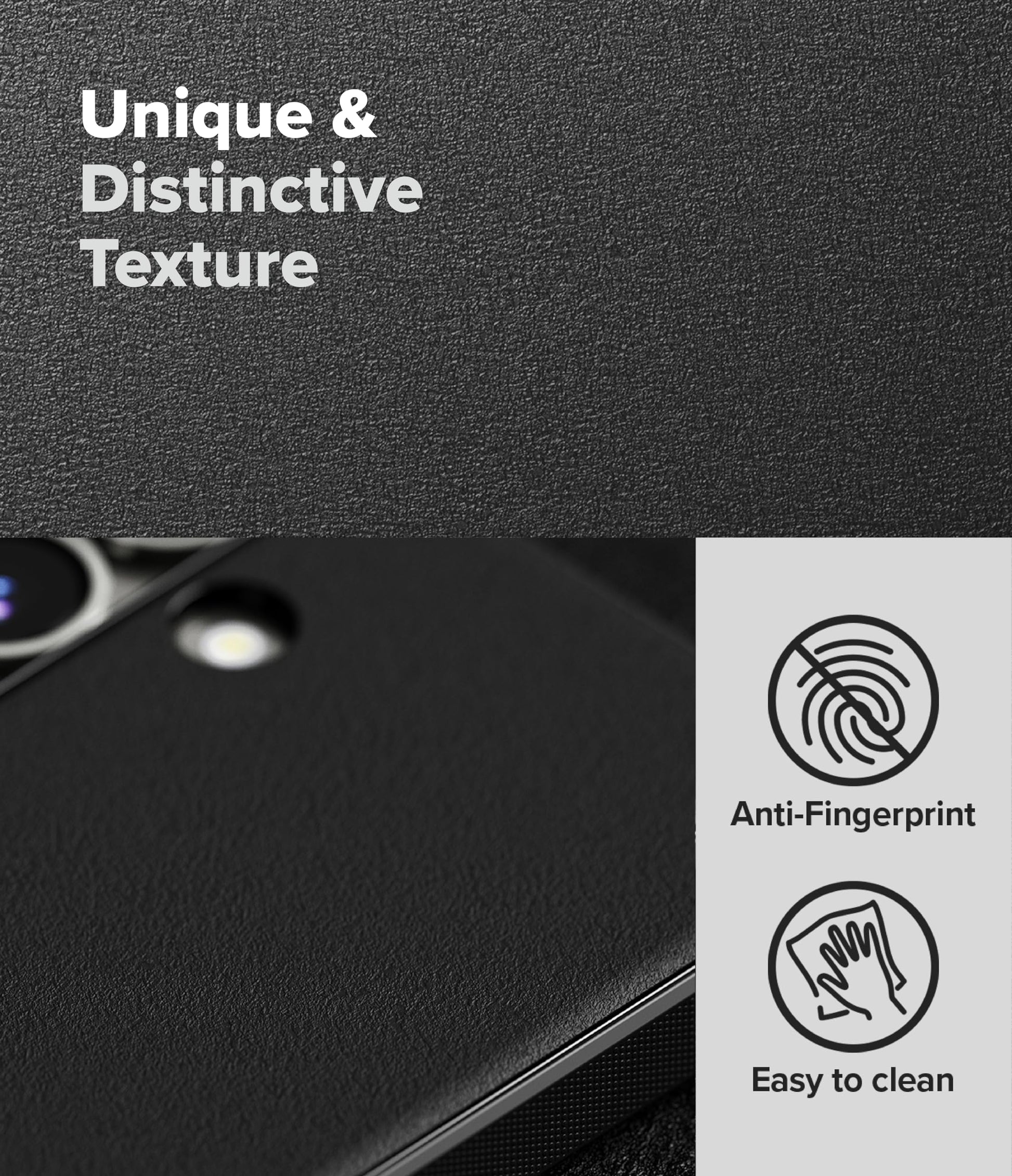 - Anti-fingerprint granulate texture on the back.
