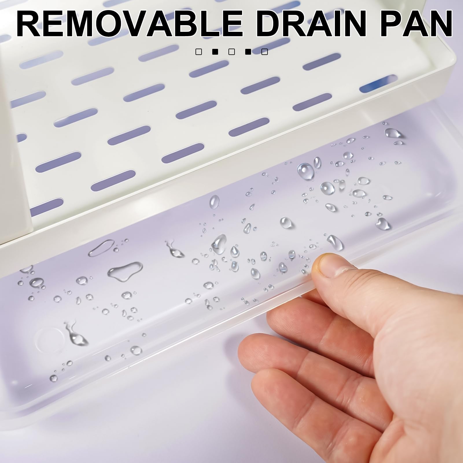 - Spülbecken Organizer mit Innovatives Design: Eine integrierte Schiene bietet Platz zum Aufhängen und Trocknen von Geschirrtüchern. Eine leicht abnehmbare Auffangschale verhindert das durchlaufen von Wassertropfen und erleichtert die Reinigung.