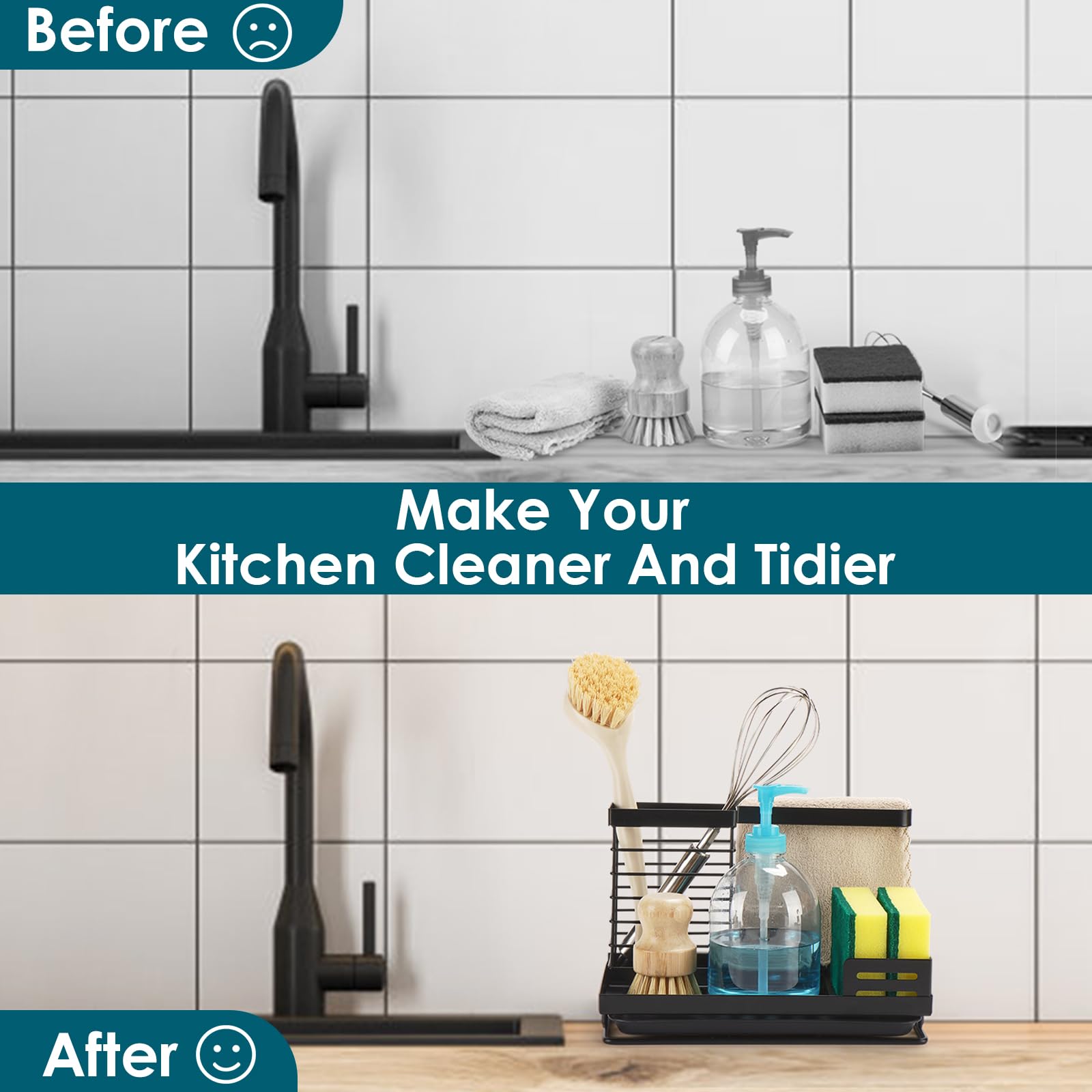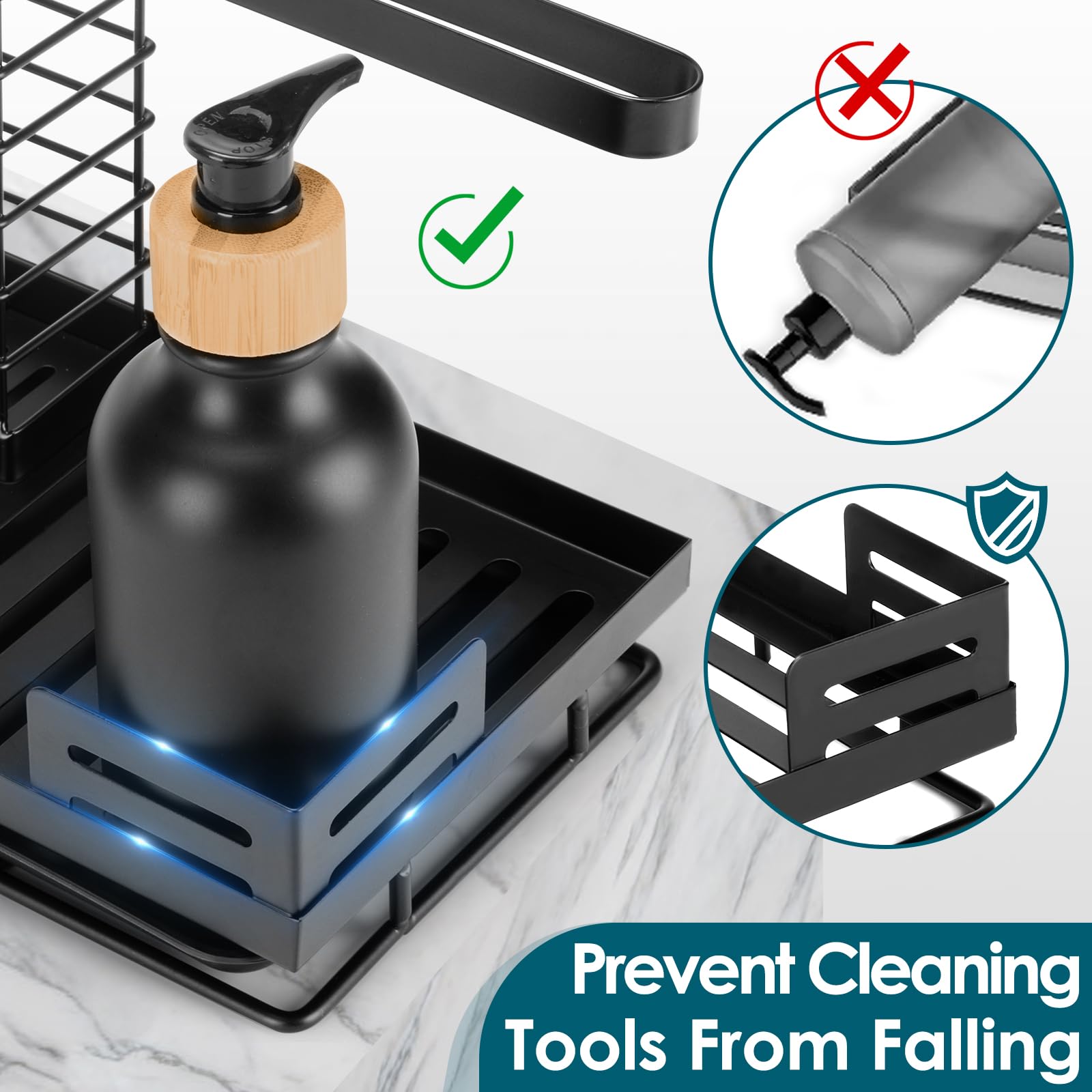 - ✅【𝐒𝐮𝐩𝐞𝐫 𝐊𝐚𝐩𝐚𝐳𝐢𝐭ä𝐭 𝐋𝐚𝐠𝐞𝐫𝐮𝐧𝐠】Unser spülbecken organizer schwarz bietet leistungsstarken stauraum für ihr küchenreinigungszubehör.Die spüle caddy organizer größe ist 24.5*14.7*16.5cm,es kann spülbürsten,seifenflaschen,schwämmen,spülenstöpseln,geschirrtücher,etc,die horizontale stange kann ihr nasses geschirrtuch schnell trocknen.Helfen sie effizient dabei unordentliche küchenspülen loszuwerden,während platz auf dem desktop gespart wird!