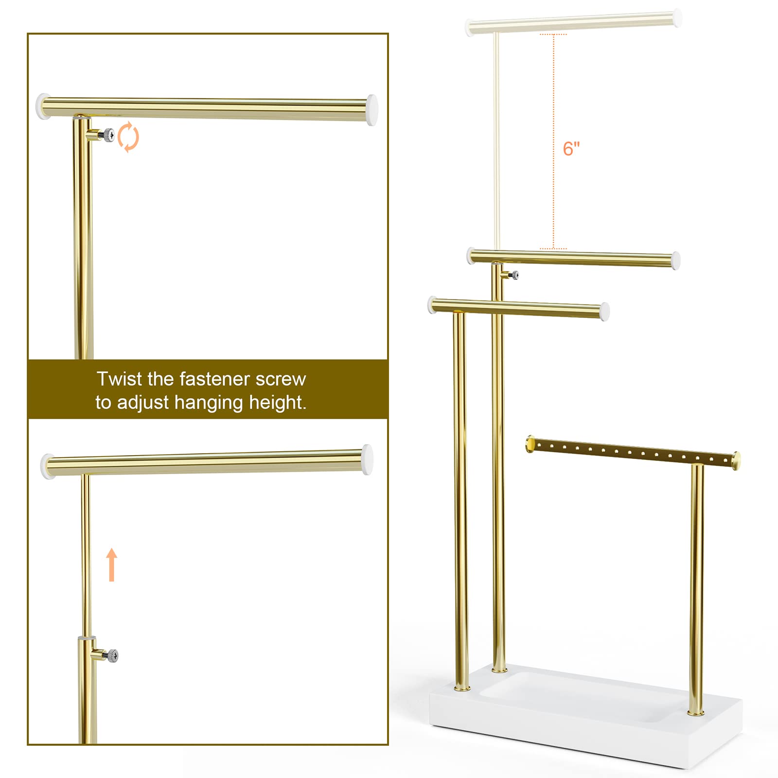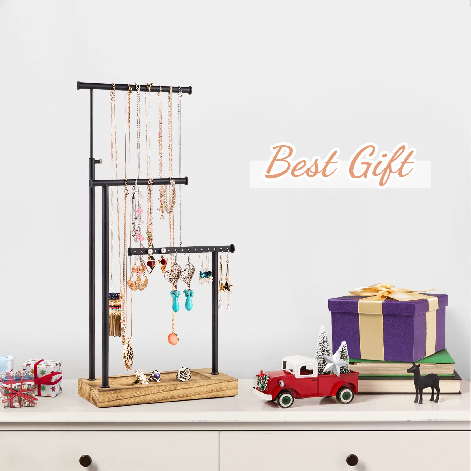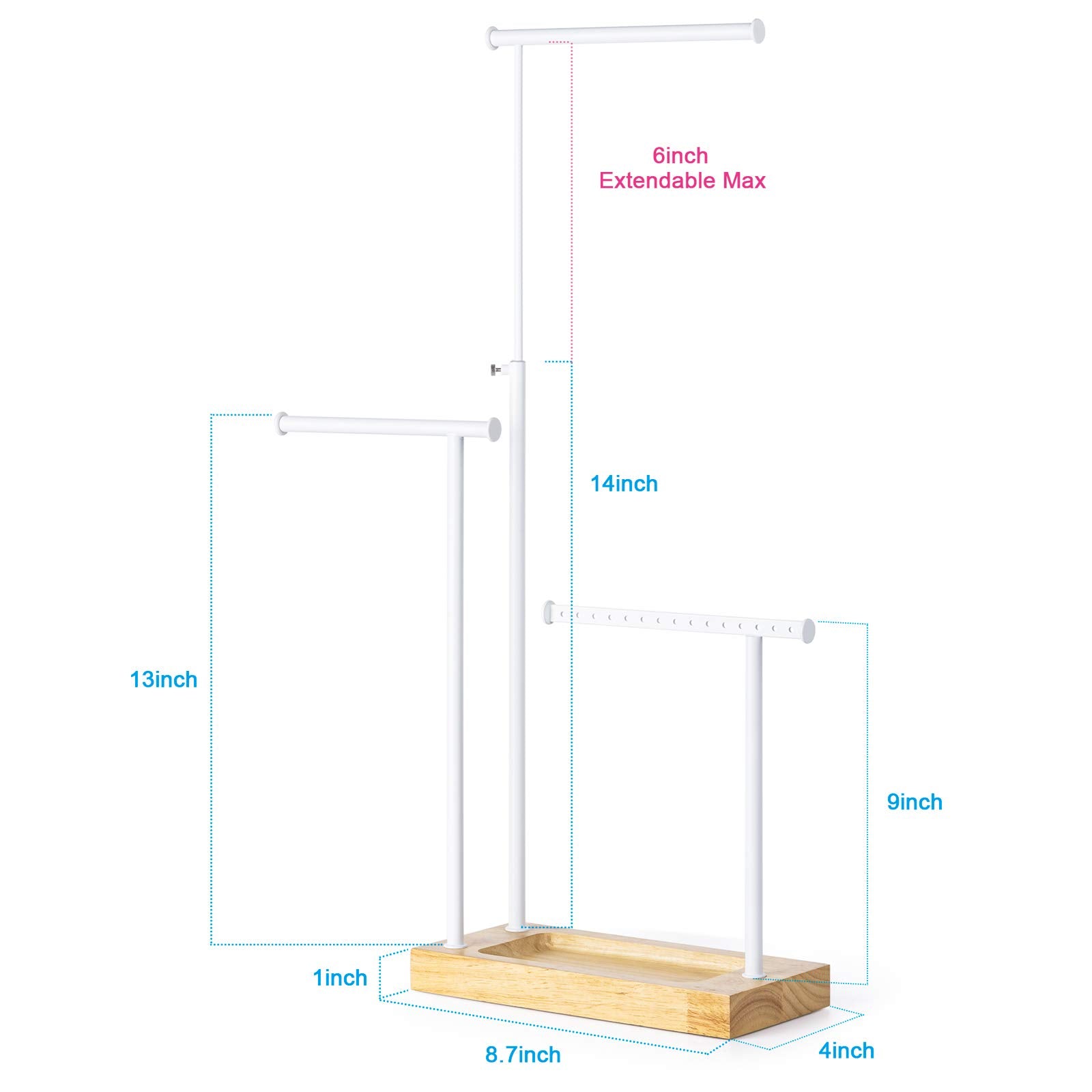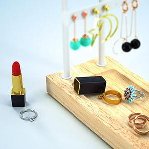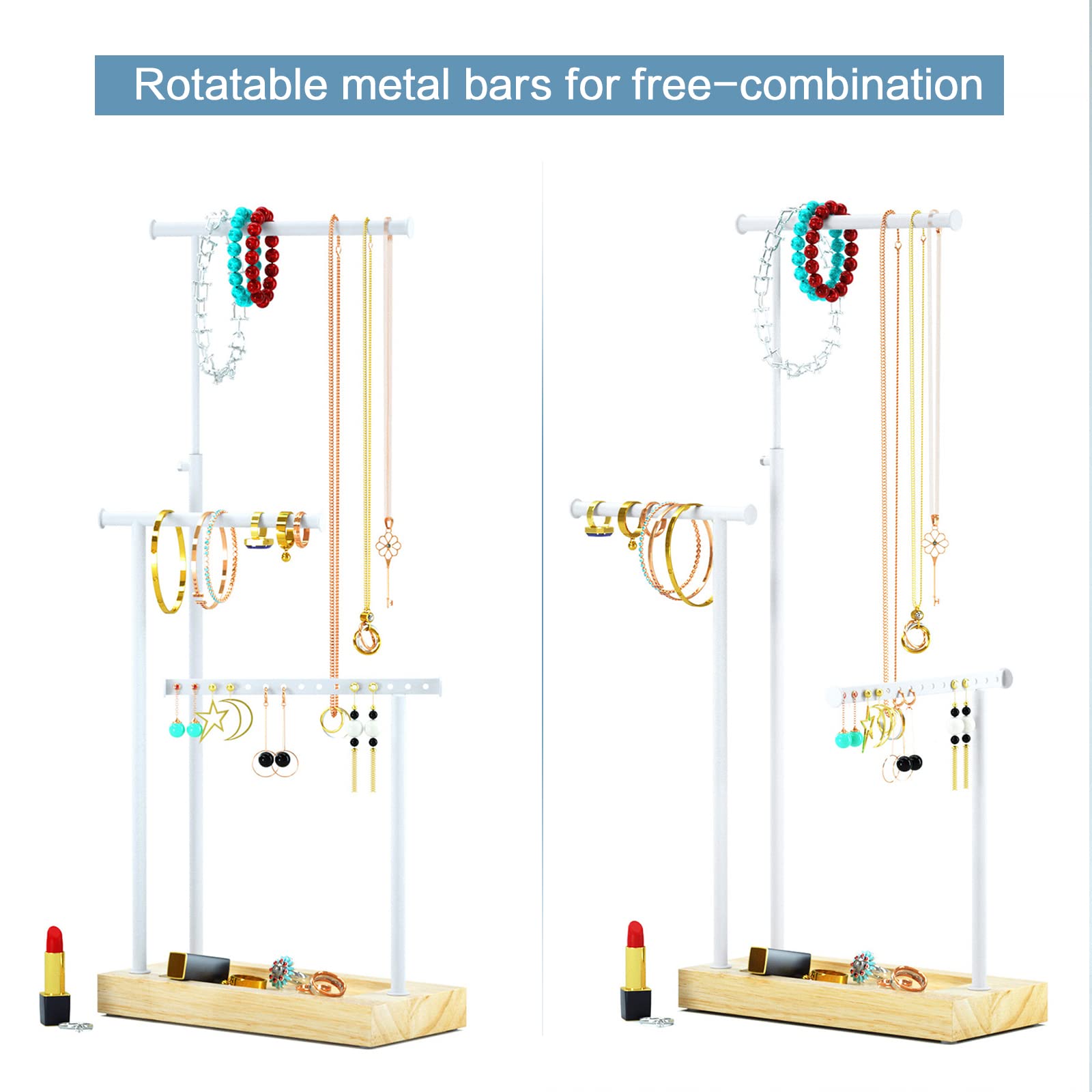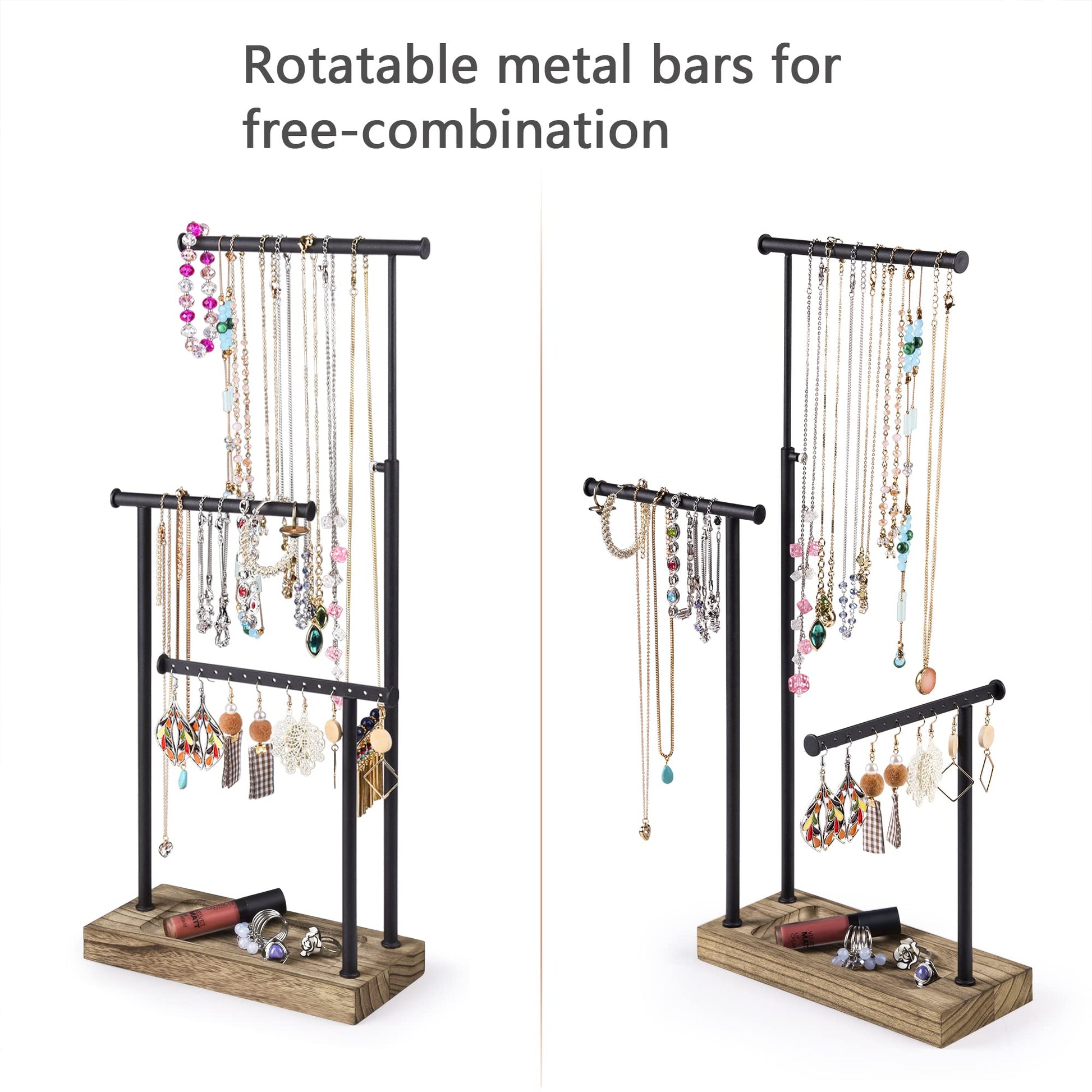 - Für Jede Art Schmuck: Die höchste verstellbare Querstange (Max Höhe 51 cm) kann Ihre längste Kette perfekt halten. Die Niedrige mit Ohrringsteckern hilft Ihnen beim Organisieren die Ohrringe. Es gibt eine kleine Kante ringsum, lagern wie Ringen, Lippenstifte oder Haarband sowie andere Schmuckstücke