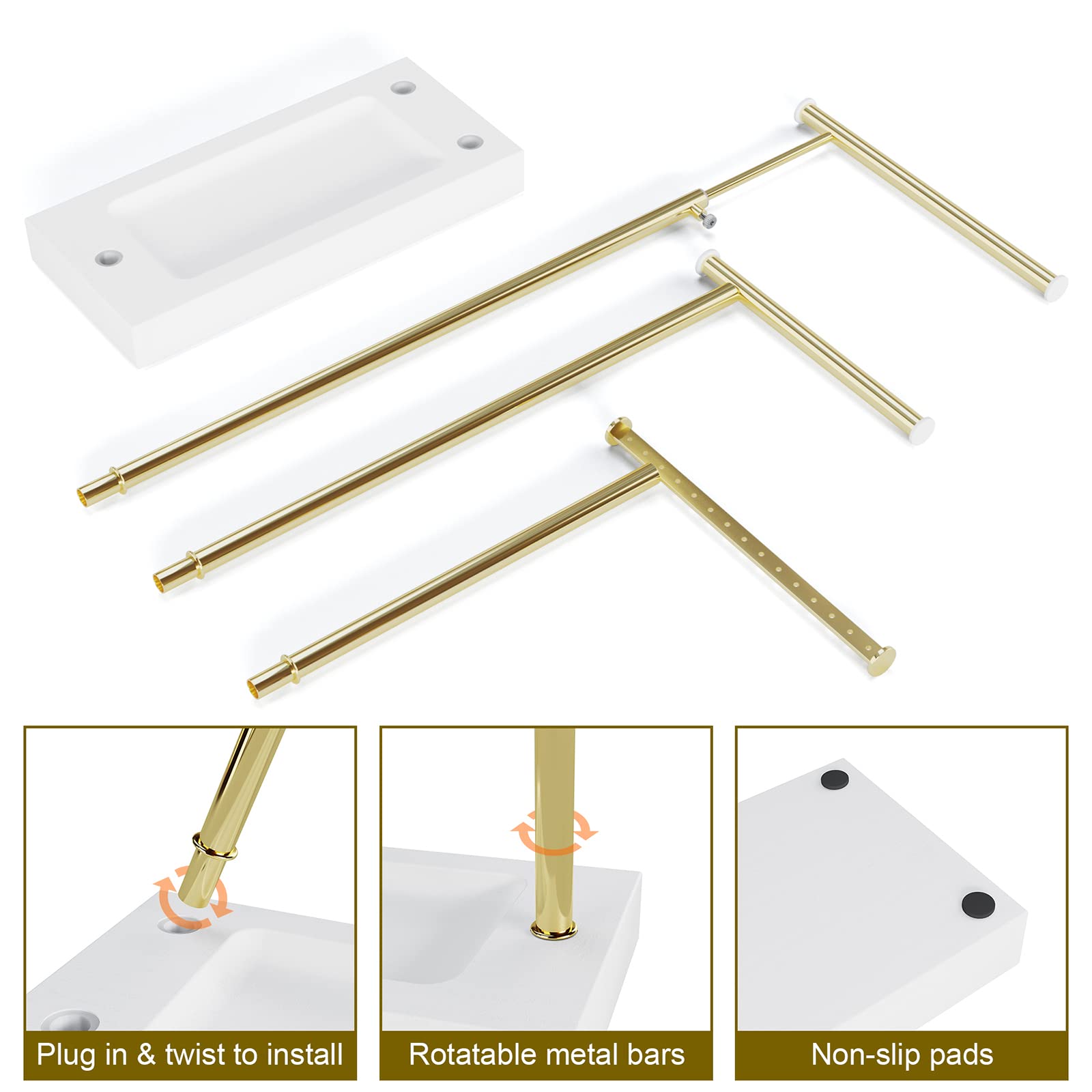 - Drehbare Drei Stäbe: Dank des drehbaren Designs macht das Unterbringen und Herausnehmen einfacher, freie Kombination, mehr Räume für die Handhabung. (Drehen Sie einfach die Metallstangen in verschiedene Richtungen.)