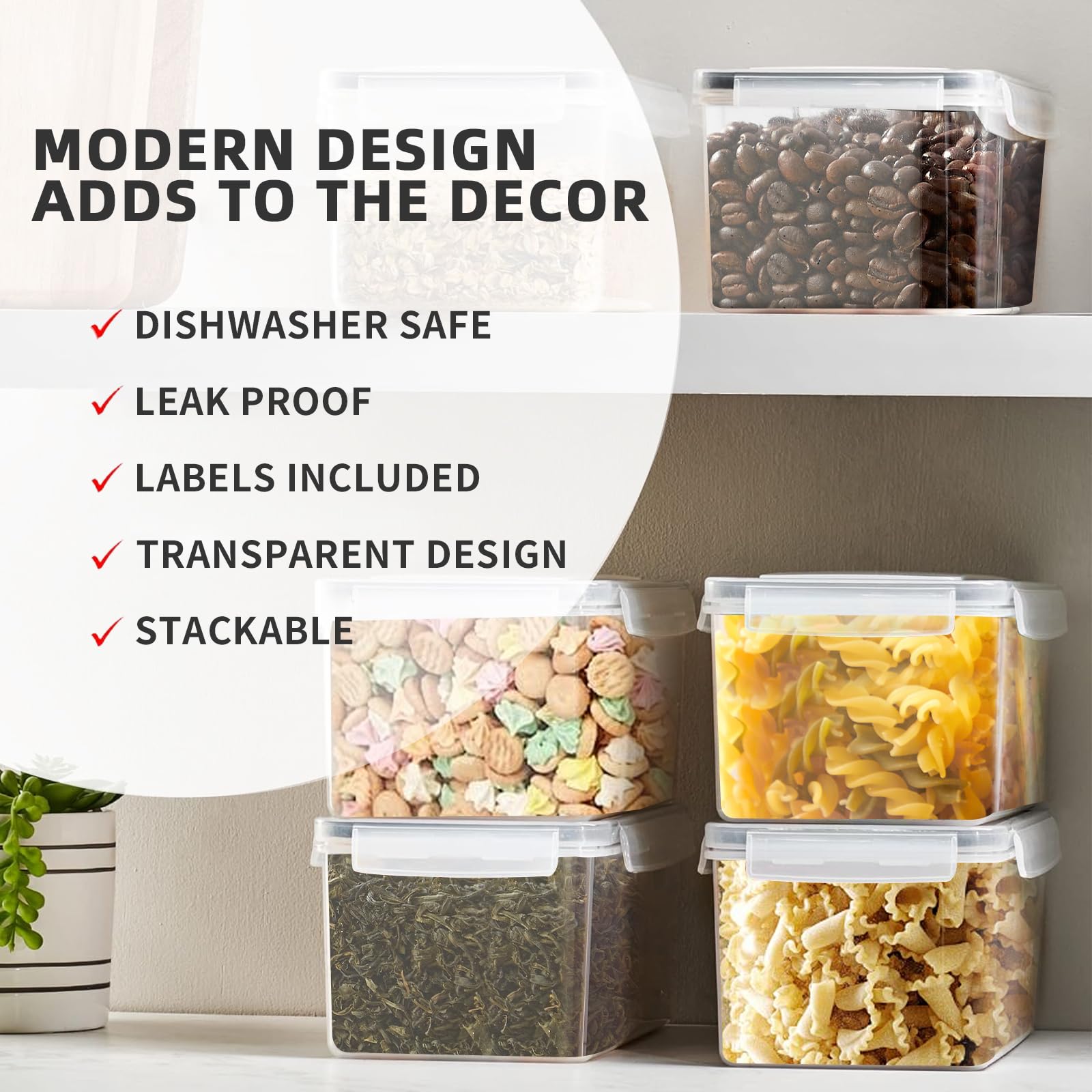 Pantry containers clear design allows you to easily identify the contents inside, making it easier to find what you need and helping to reduce food waste.