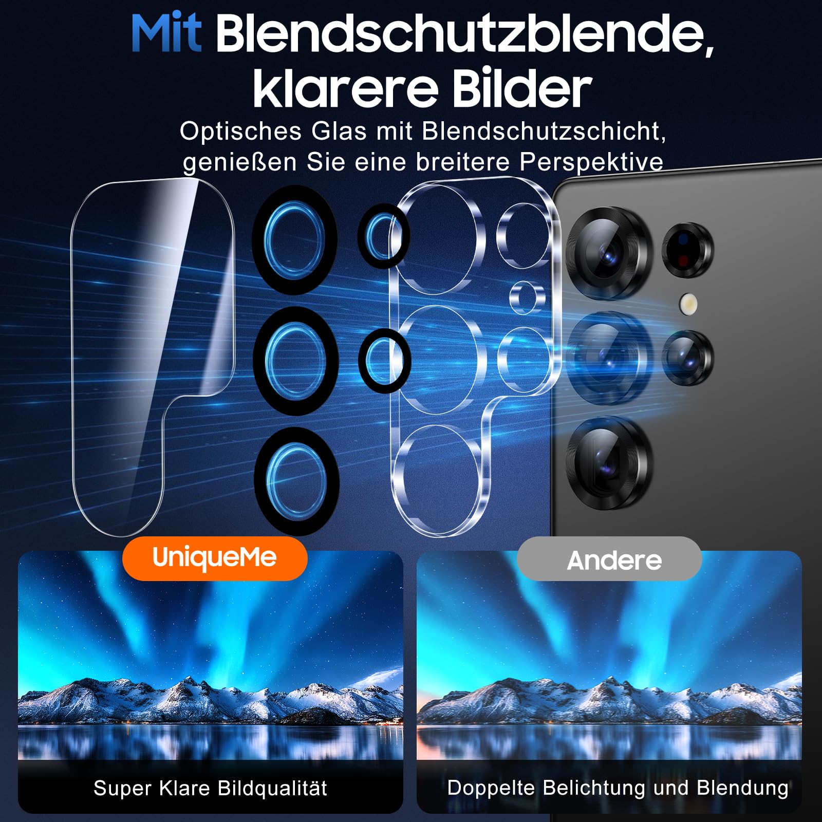 - Upgraded anti-exposure ring, 1:1 restoration of mobile phone photo quality: ultra high definition material to ensure that your Samsung Galaxy S25 Ultra lens high-definition transparent, the photos as if taken the original colour. Upgraded anti-exposure ring design, with the flash you can also record the beautiful moments of life at any time