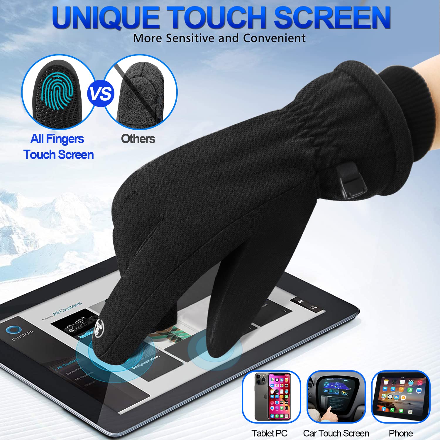 - Sensitive touchscreen: Five fingertips with touchscreen sensitivity. The touchscreen gloves are coated with conductive material, maximise dexterity and thermal performance. You can operate your iPhone, smartphone, smart watch and send messages and type flexibly without having to take off the warm gloves.