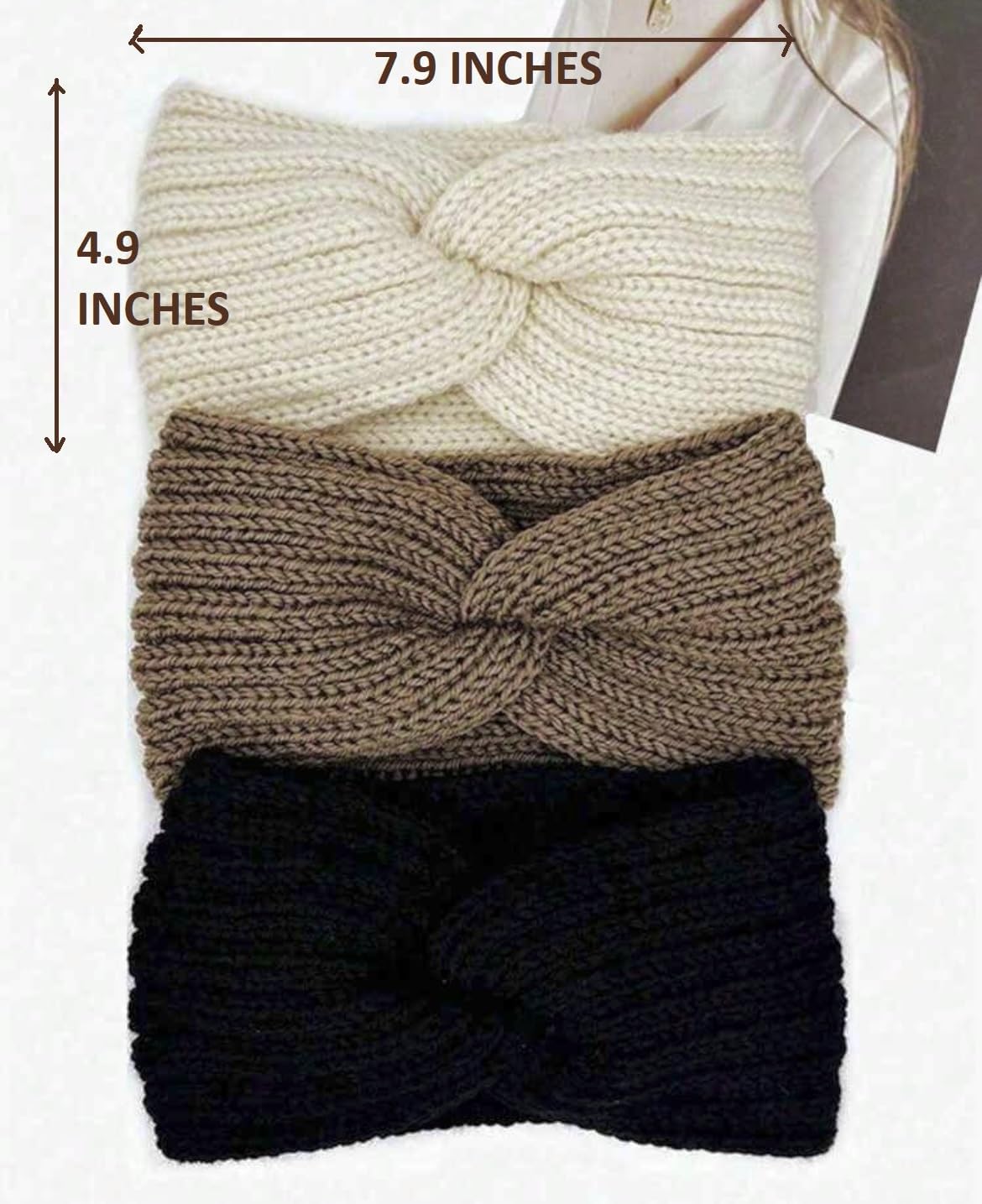 Women's Winter Headband, Women's Knitted Headband Wide, Ear Warmers, Thick Headbands, Girls, Knitted Headwrap Headband, Elastic, Pack of 3