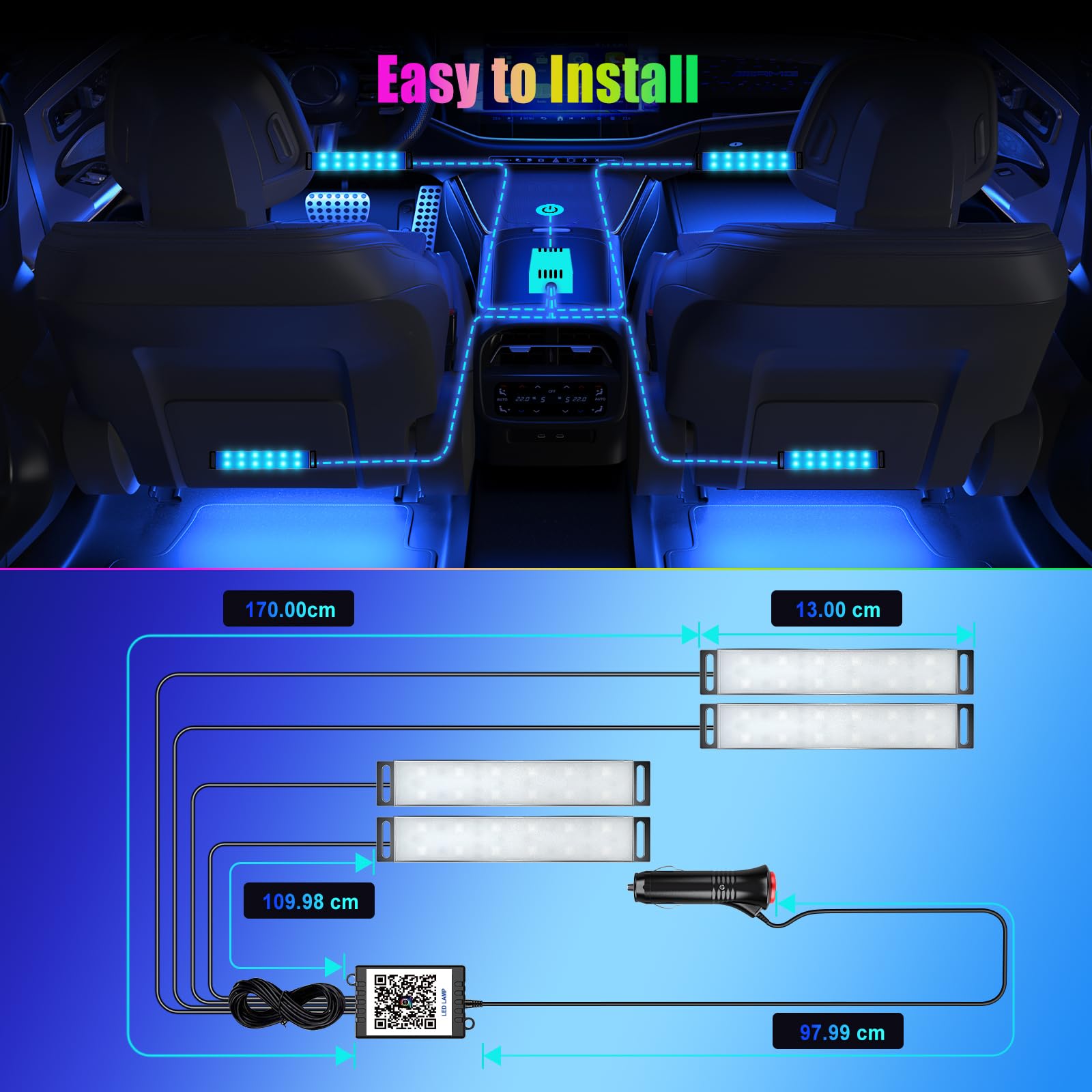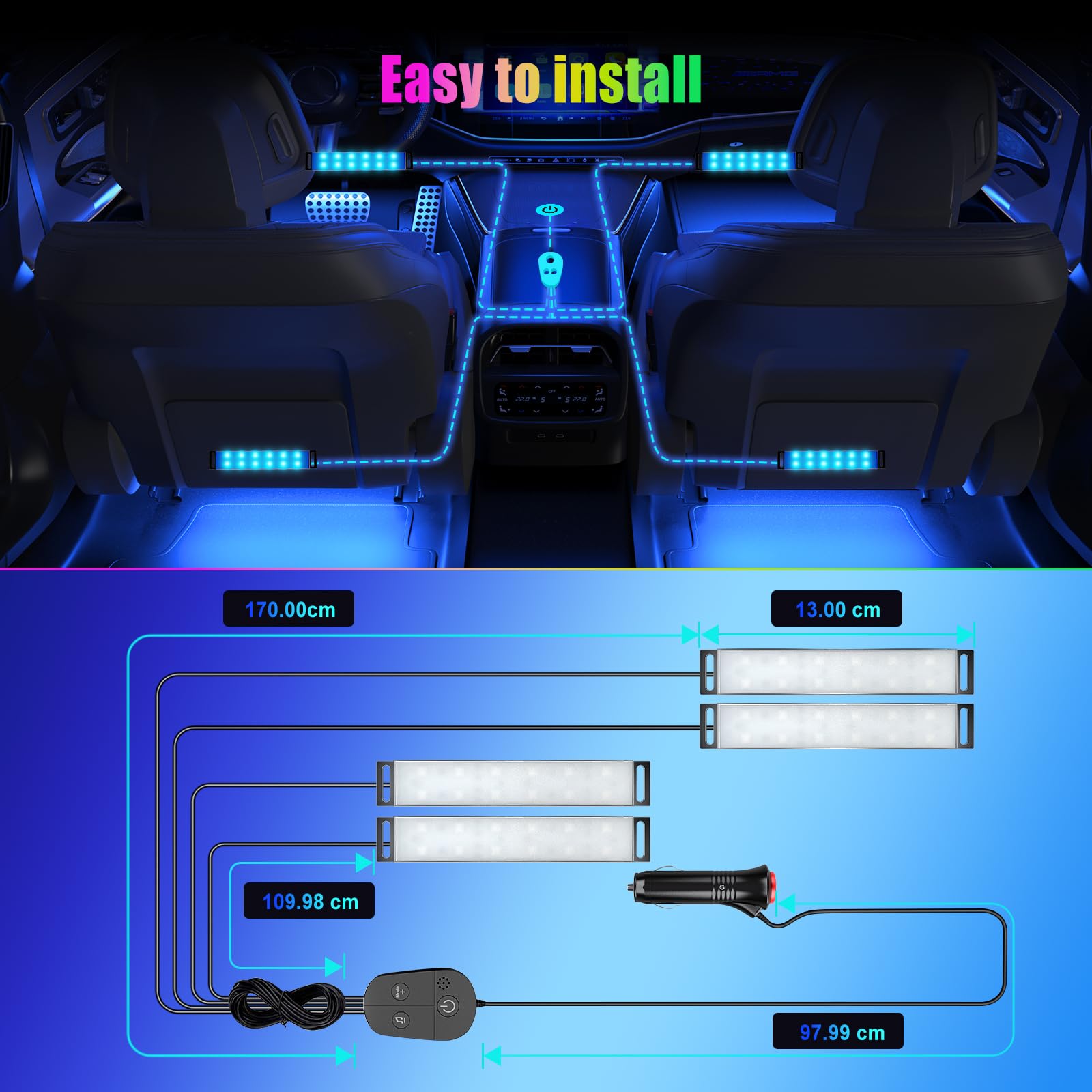 - Easy to install and hide: the YiLaie car LED interior lighting is equipped with strong 3M adhesive and extra long cable. You can easily hide the cable in the gaps of your car floor mats without worrying about exposed wires or a messy appearance. The operating voltage of car ambient lighting is DC 12 V, with short circuit protection function, suitable for 99% of all car models, making your driving experience safer