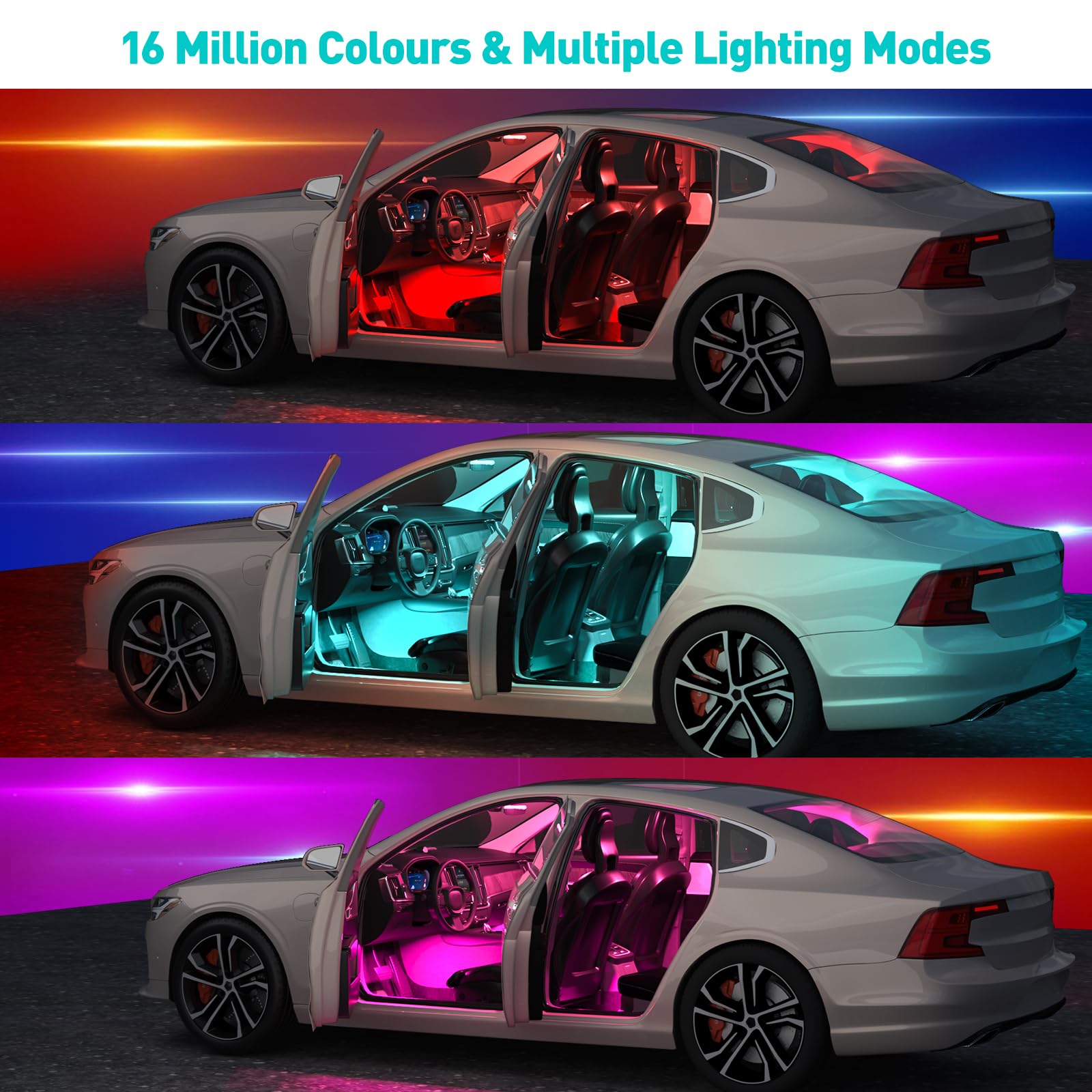 - 16 million colours to choose from: The YiLaie interior lighting car LED offers over 16 million colours. You can create your preferred lighting effects with the three-button control or the LED lamp app. Whether it's a relaxed family outing or a passionate race on the racetrack, there is always a colour that suits your mood. Let LED car lighting give your car a unique shine and enjoy driving.