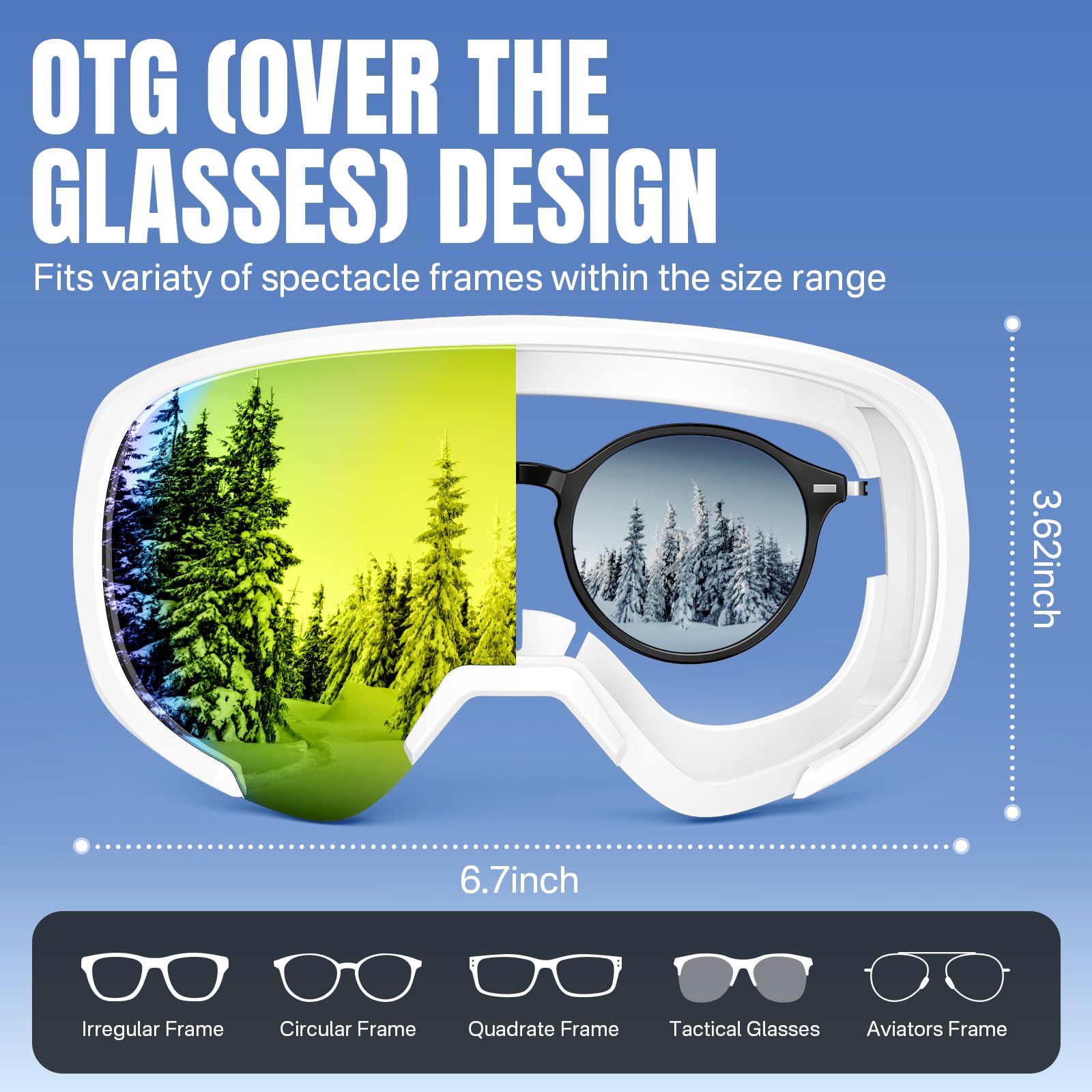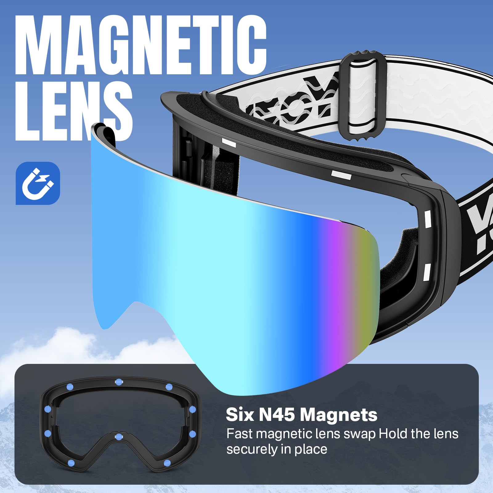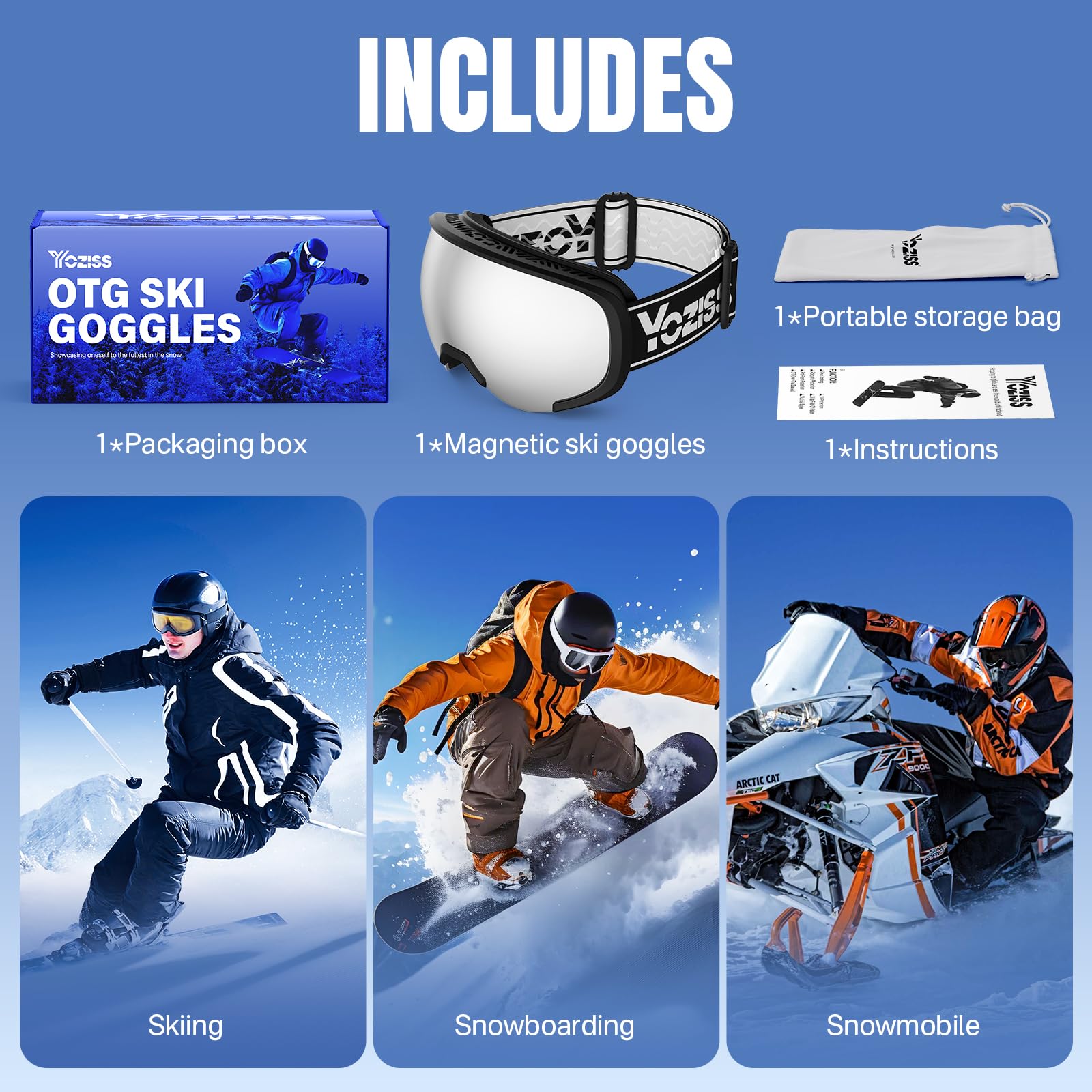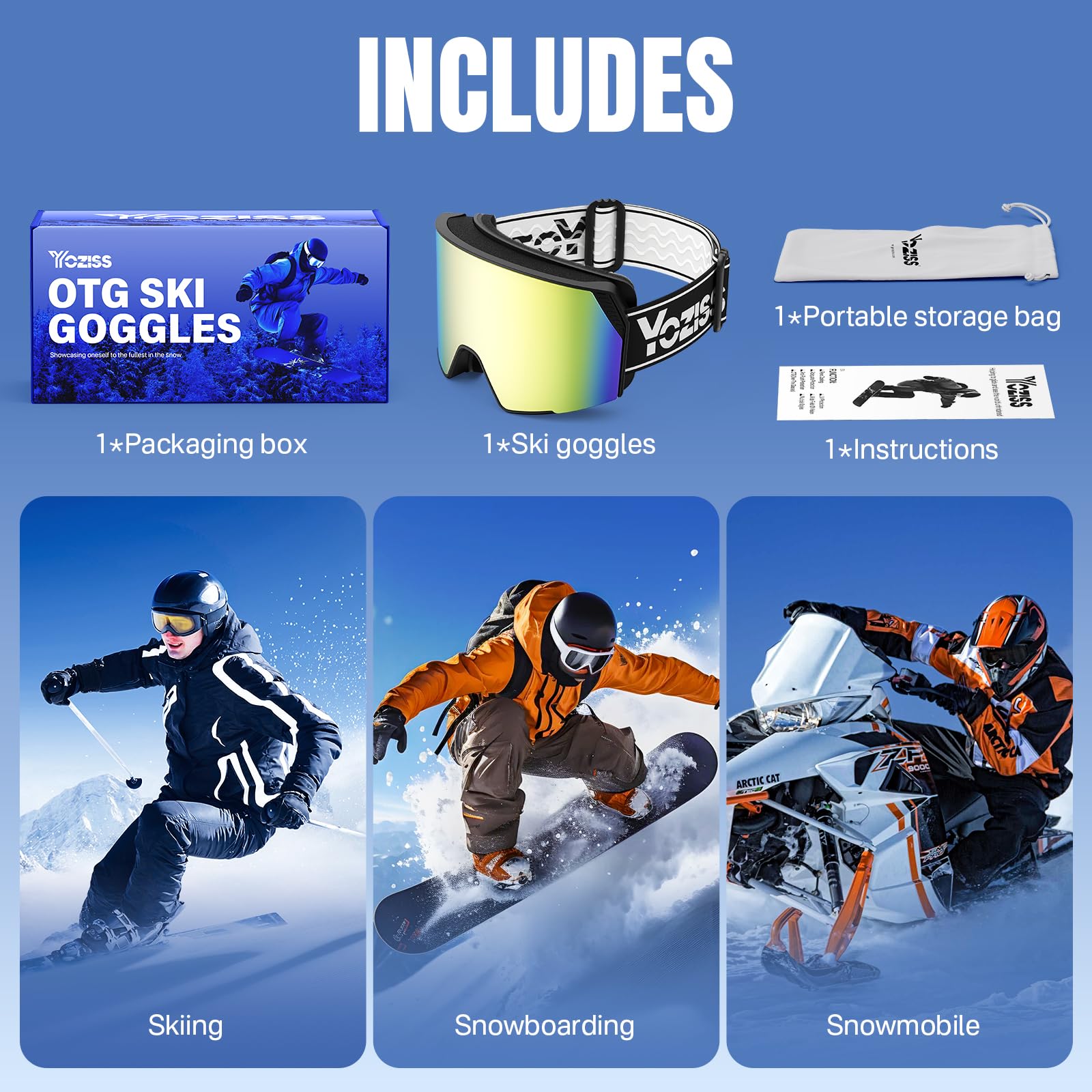 YOZISS OTG Ski Goggles for Men and Women, Magnetic Snowboard Goggles Anti-Fog & 100% UV Protection, OTG Ski Goggles Snow Goggles for Skiing & Winter Sports