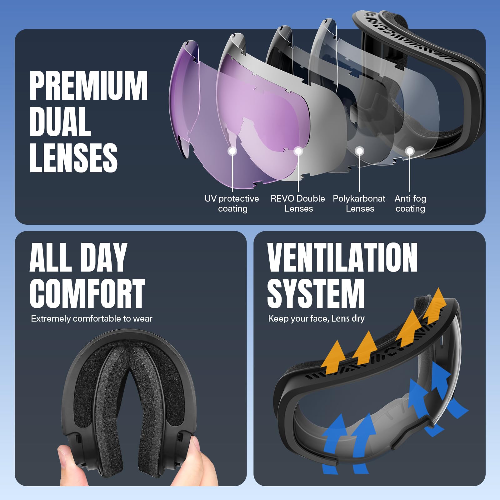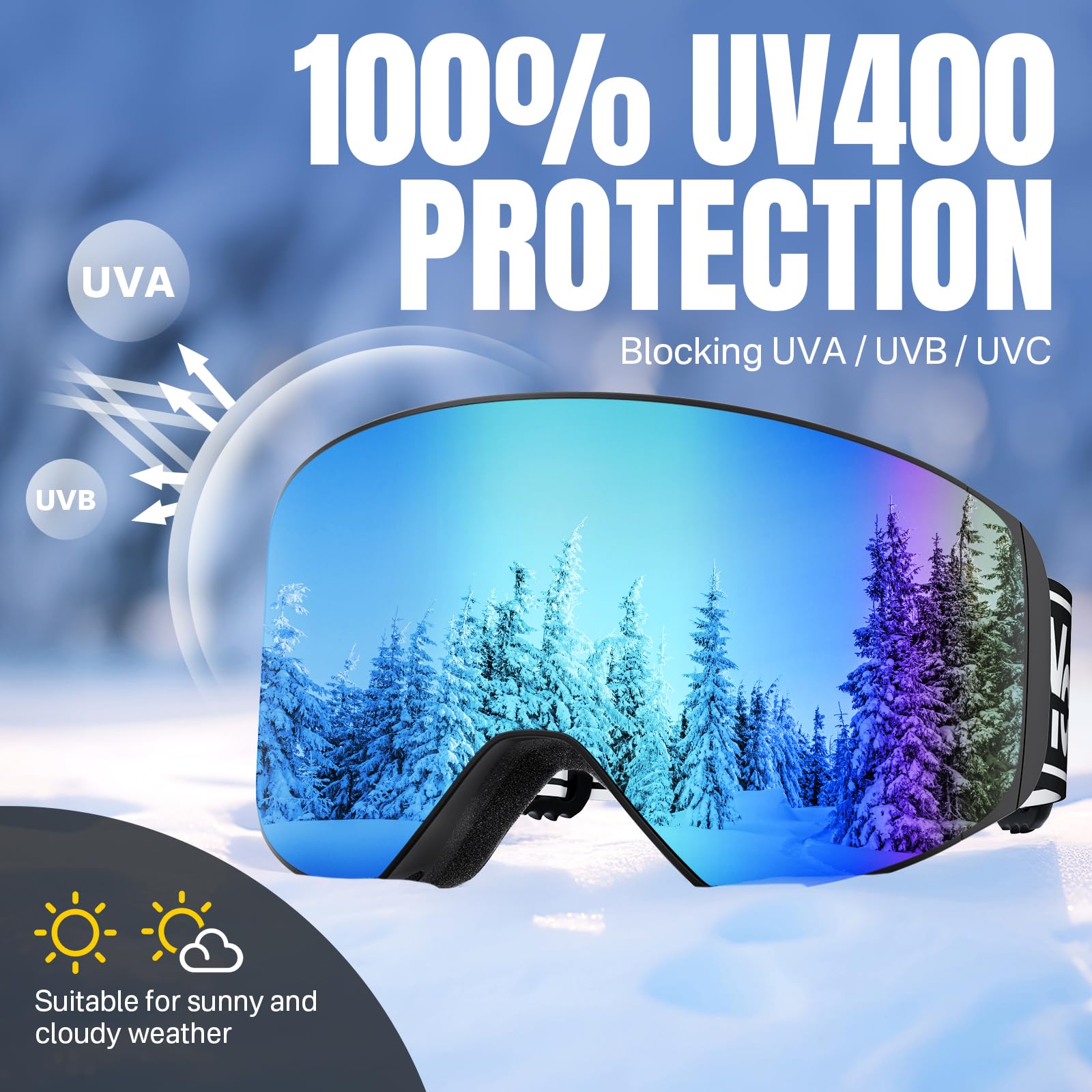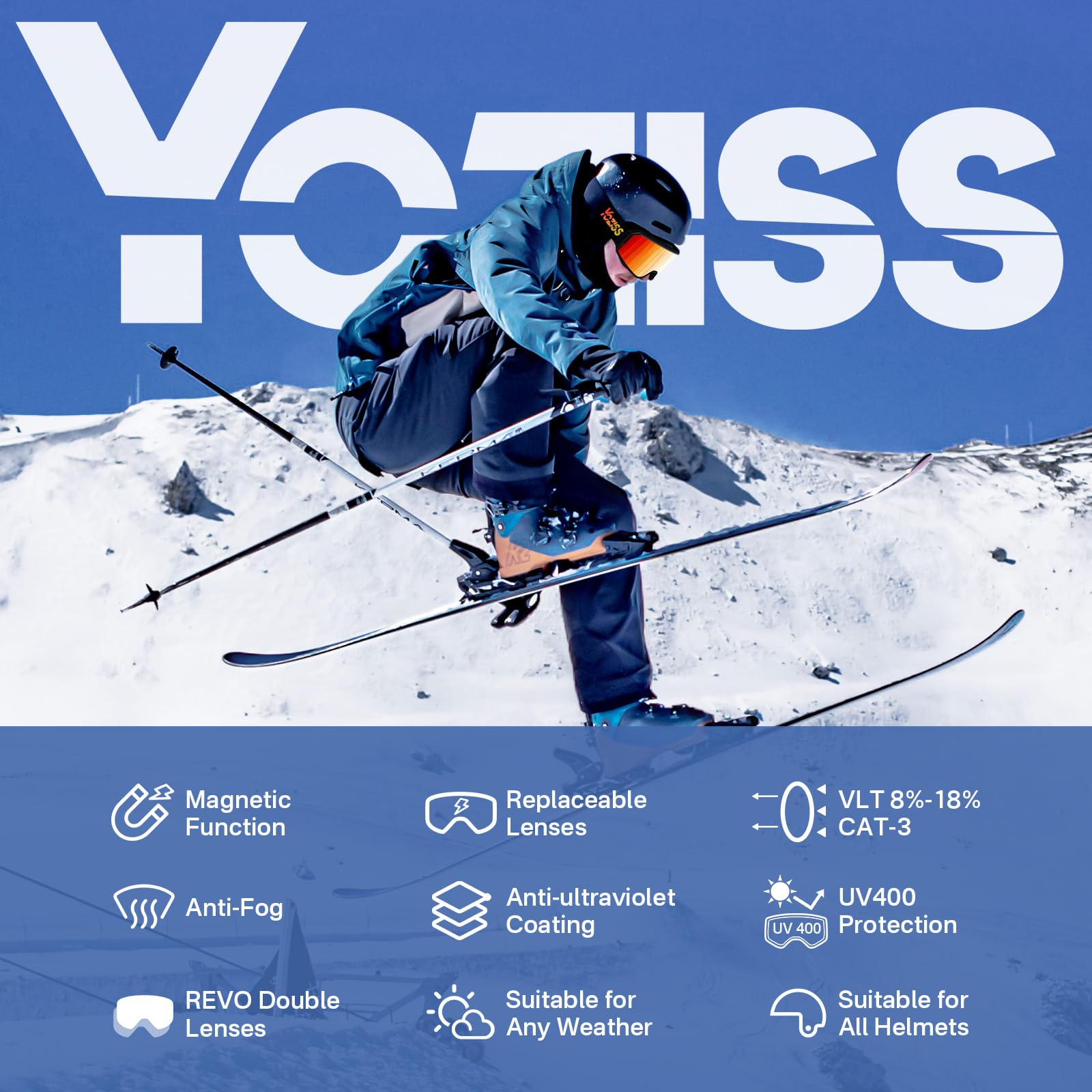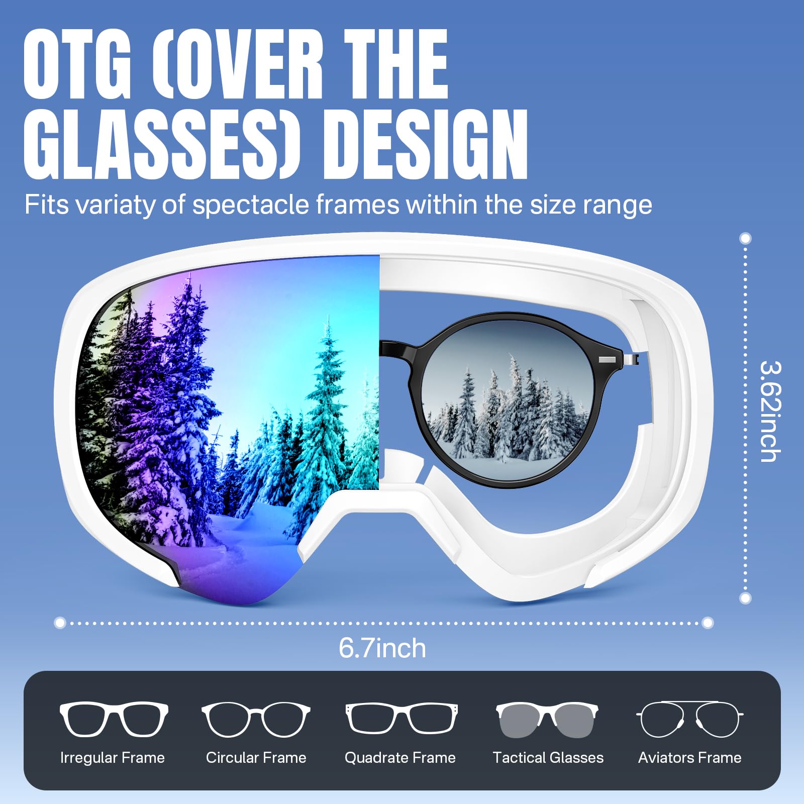 YOZISS OTG Ski Goggles for Men and Women, Magnetic Snowboard Goggles Anti-Fog & 100% UV Protection, OTG Ski Goggles Snow Goggles for Skiing & Winter Sports