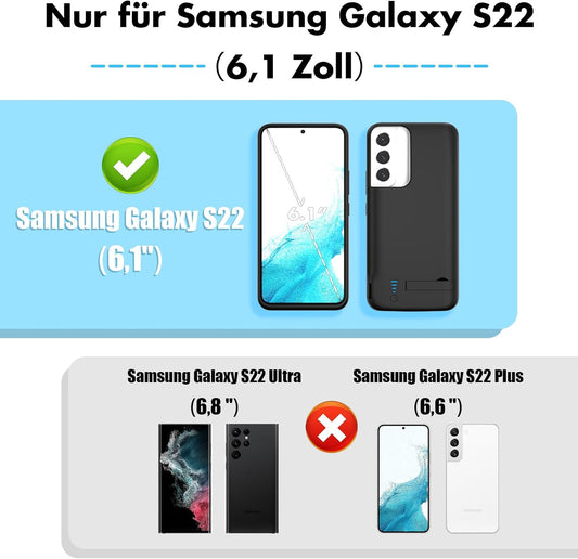 (Kopie) Akkuhülle für Samsung Galaxy S22, 7000 mAh, schlanke wiederaufladbare Ladehülle, erweiterte Ladehülle, Backup-Akkuladegerät, tragbare Powerbank für Samsung Galaxy S22 (6,1 Zoll) – Schwarz